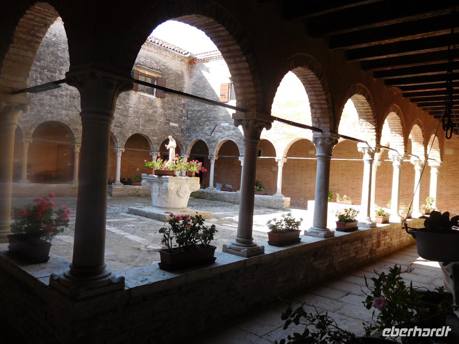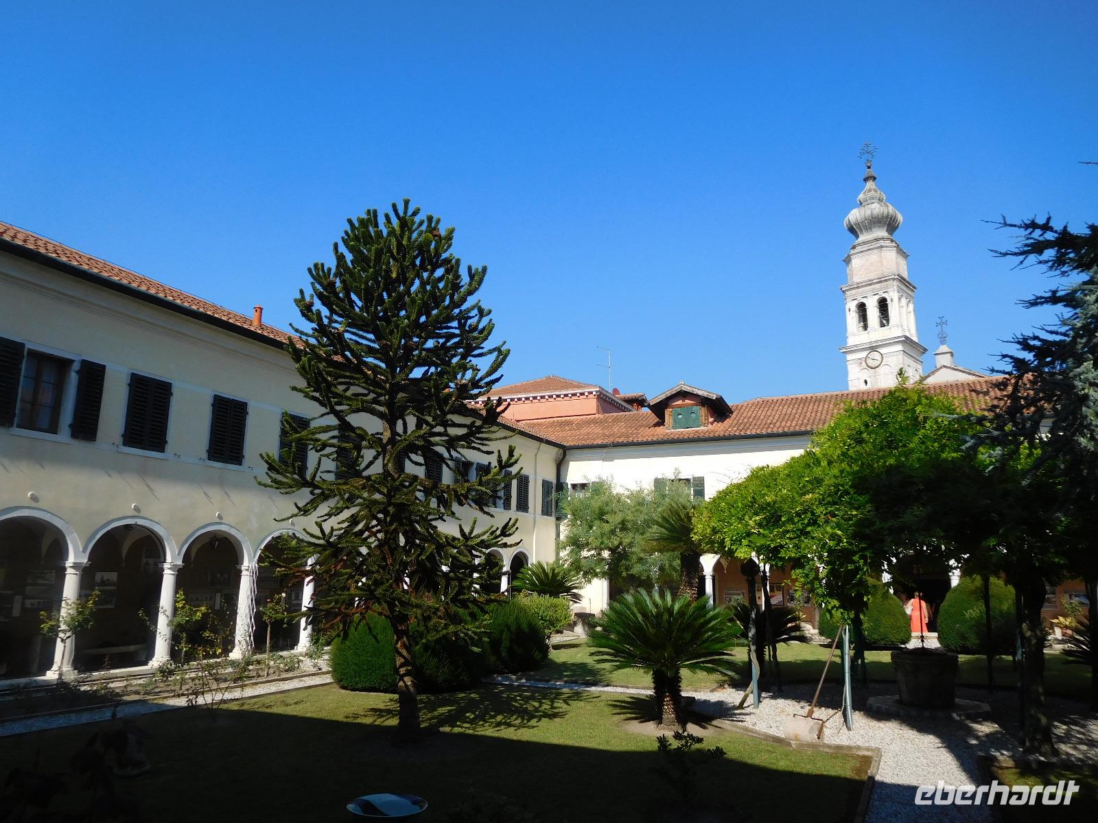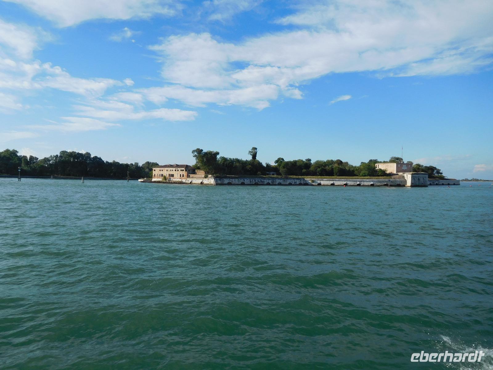 Erstes Ziel war San Francesco del Deserto, eine knapp 3,7 ha große Insel zwischen Burano und Sant'Erasmo in der Lagune von Venedig. Sie war in römischer Zeit bis etwa 650 bewohnt, musste dann aufgegeben werden, um im 13. Jahrhundert neubesiedelt zu werden. Das dortige Kloster geht auf einen legendenhaften Besuch des heiligen Franz von Assisi zurück. Die Insel ist 300 Meter lang und bis zu knapp 170 Meter breit, sowie bis zu einem Meter hoch. Die Flächenausdehnung beträgt 3,68 Hektar (36.832 Quadratmeter). Die Insel wies zur Volkszählung 2001 neun Bewohner auf, davon waren acht Männer. Uns führte ein freundlich agiler Mönch von achtzig Jahren, dessen Händen man ansah, dass sie auch körperliche Arbeit gewöhnt waren.