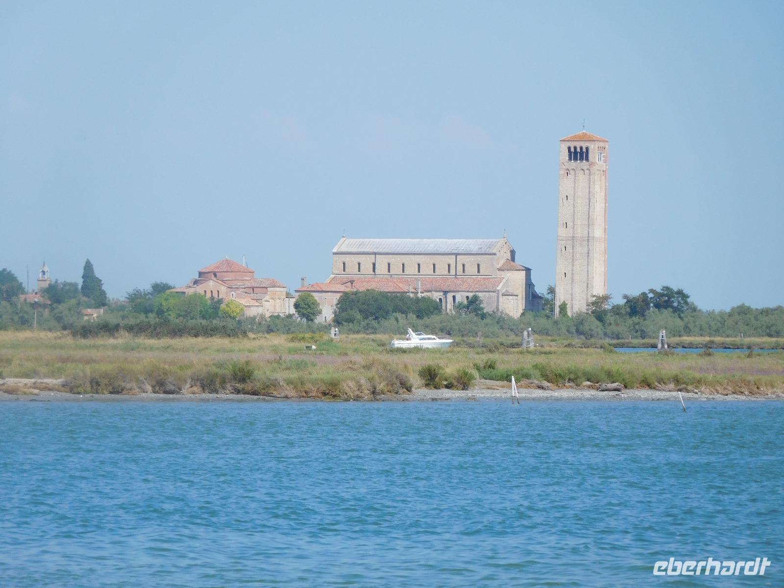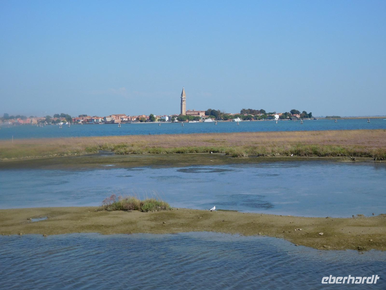 Zu diesem fakultativen Ausflug fuhren wir per Bus nach Punta Sabbioni, wo Alessia und Sergio, der Kapitän eines kleinen schnittigen Privatbootes, auf uns warteten. Wir hatten nicht nur das grandiose Panorama Venedigs und seiner Inseln um uns, sondern im Hintergrund, was durchaus selten zu sehen ist, die Alpen samt den schneebedeckten Dolomiten als Kontrast zu der von hellem Licht durchfluteten Lagune. Das Boot fuhr auch an der riesigen Baustelle des Schleusendamms vorbei, der Venedig bald vor Hochwasser schützen soll. Leider, so mussten wir erfahren, konnte man sich bisher aus Geldgier einflussreicher Kreise und Lobbyisten doch nicht zum bereits mehrfach beschlossenen Einfahrverbot der Kreuzfahrtschiffe in die Lagune durchringen. Damit bleibt die Hauptursache der Hochwasser, der Umweltverschmutzungen und der Algenplage erhalten.