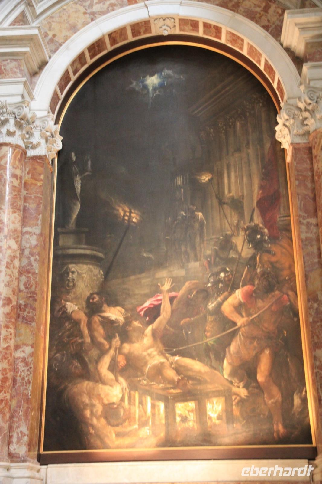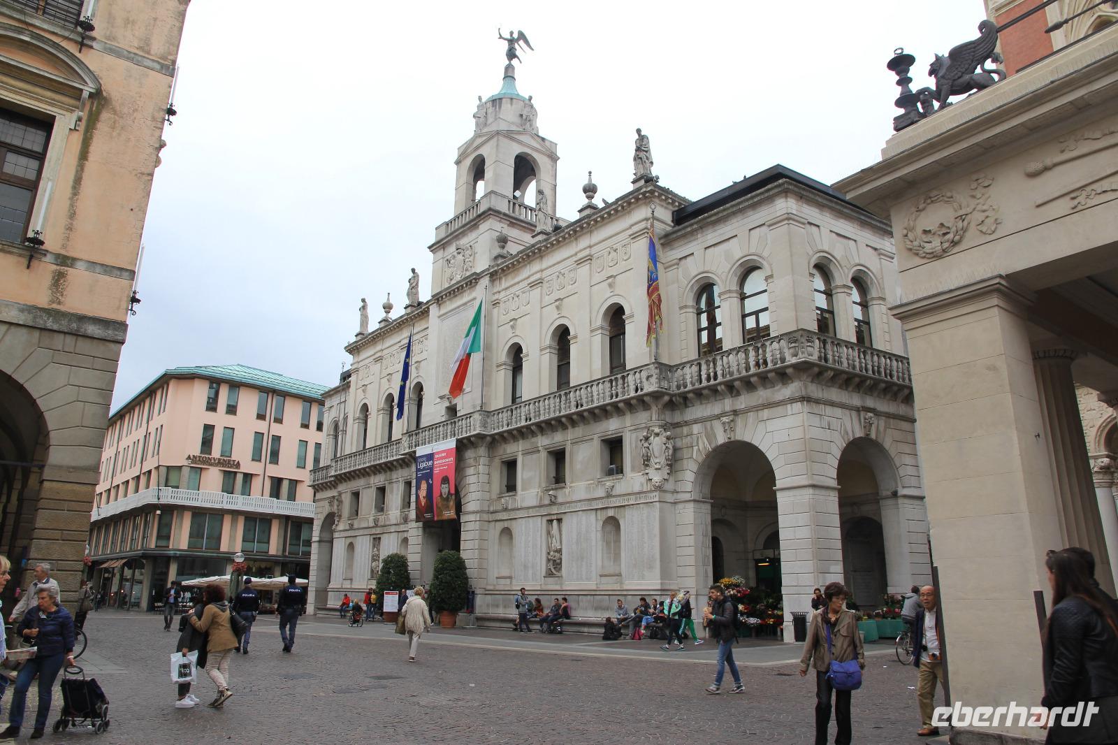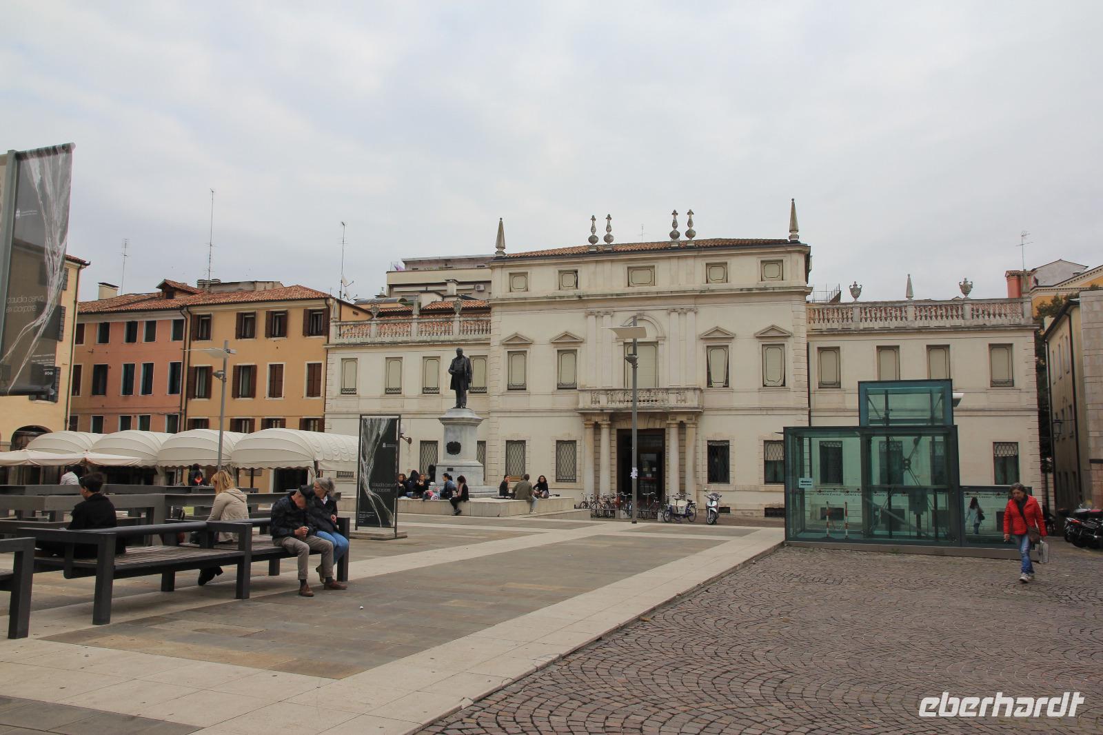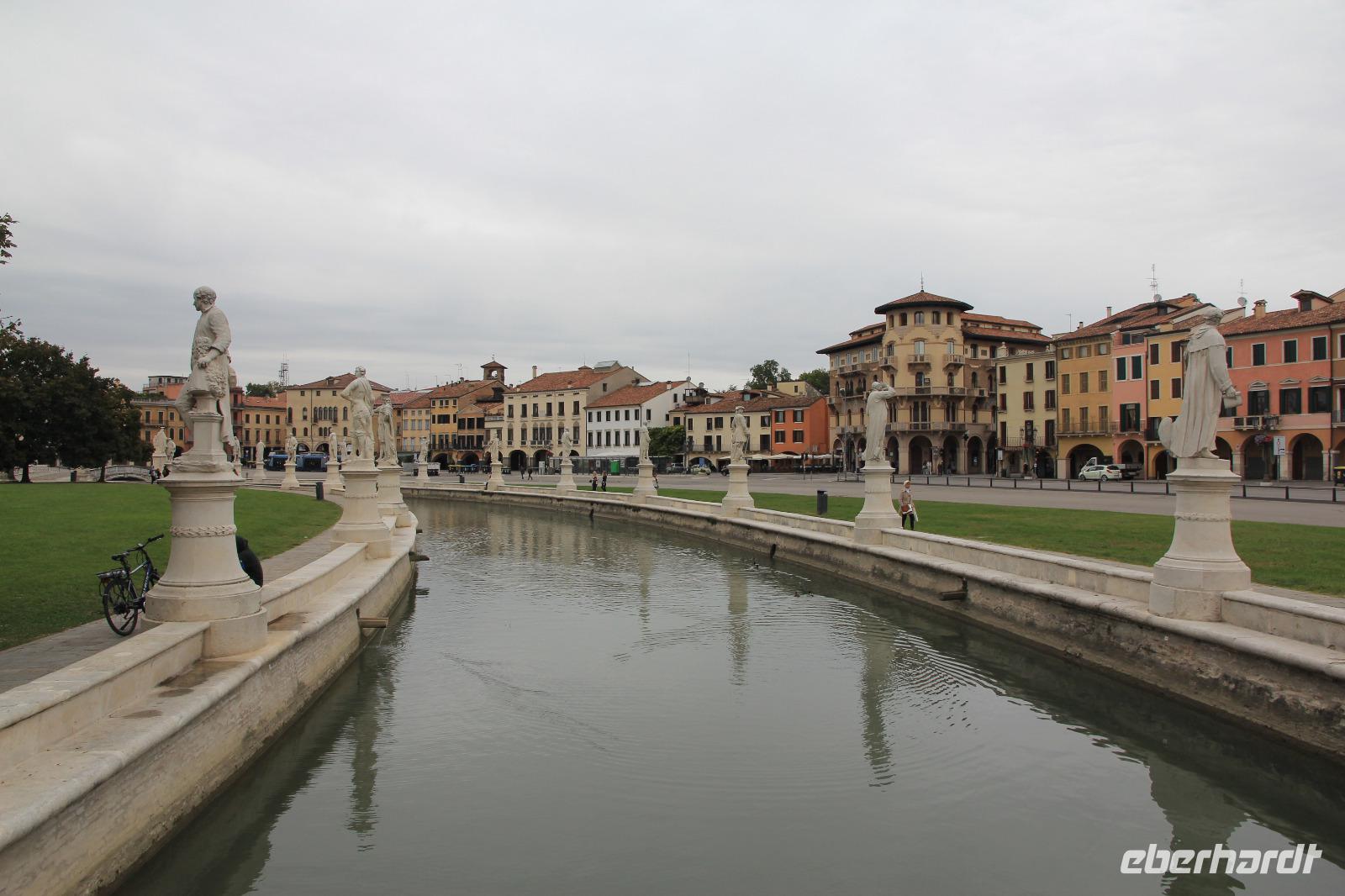 Heute steht die eine halbe Stunde Busfahrt entfernte Universitätsstadt Padua auf unserem Programm, leider ist es Montag und damit der Schließtag vieler Museen in Italien. Aber die bedeutendste Sehenswürdigkeit in Padua, die Scrovegni-Kapelle, ist geöffnet. Wir sind für den Besuch angemeldet, aber es gibt keine Audioguides in deutscher Sprache. Auch der obligatorische Film im Vorraum der Kapelle ist auf Italienisch mit englischen Untertiteln. Trotzdem gelingt es der Reisebegleitung, die kunsthistorische Bedeutung des Werkes von Giotto di Bondone als richtungsweisendes Werk der frühen Renaissance deutlich zu machen. Unser anschließender Spaziergang durch die Stadt führt uns am Café Pedrocchi, am Rathaus, der Universität und dem Palazzo della Ragione vorbei - und wird durch eine Mittagspause in einem urigen Lokal unterbrochen. Unsere Stadtführerin macht uns mit der Baugeschichte wichtiger Gebäude und der Stadtanlage vertraut. Danach geht es zum ellipsenförmigen Platz Prato della Valle: wir sehen von außen die Amulea-Loggia und Basilika Sante Giustina. Anschließend treten wir in die St.-Antonius-Basilika ein. Wir bewundern im Innern der Grabeskirche für den Heiligen Antonius u.a. Donatellos Jungfrau auf dem Throne mit dem Kind und den kunstvollen Reliquienschrein. Den Rückweg zu einer Stelle, an der uns der Transfer zum Hotel wieder aufnehmen kann, müssen wir unter Arkaden nehmen, weil es in Strömen regnet. Es ist gut, dass wir am Abend gleich in der Nachbarschaft des Hotels unser Abendessenrestaurant haben und damit nur wenige Schritte durch den Regen haben.