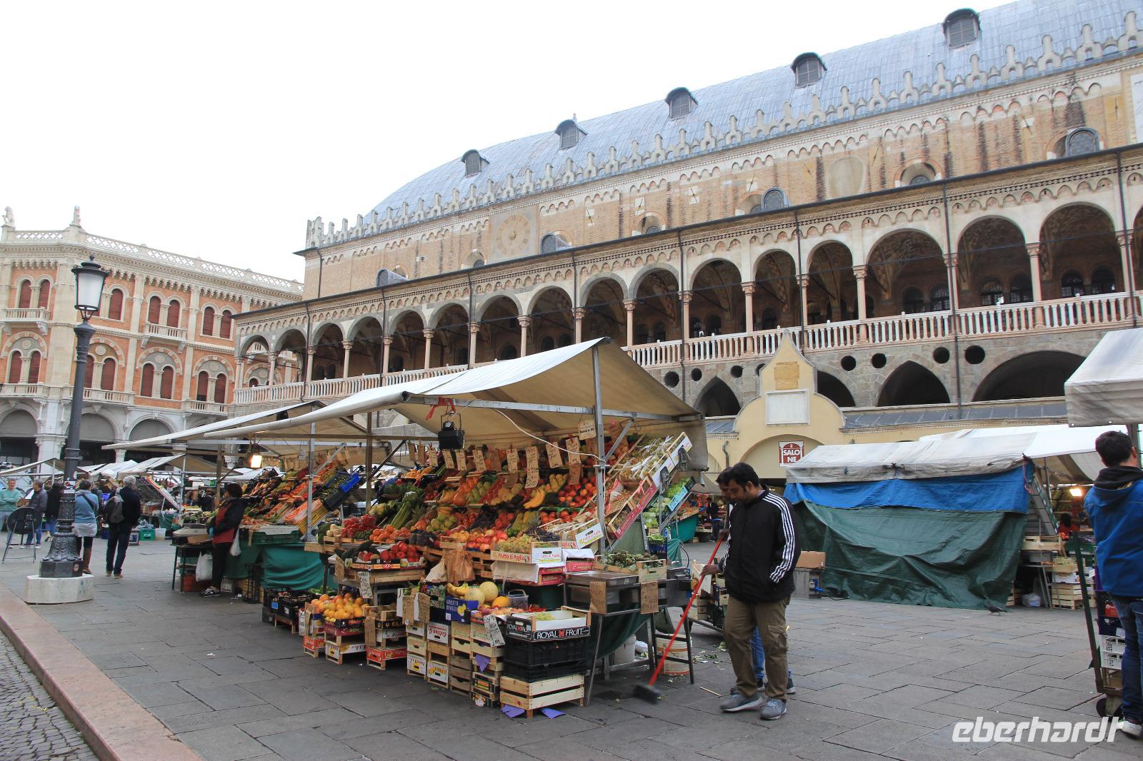 Wir nutzen heute unsere Freizeit und das sonnige Wetter für einen Spaziergang ins Zentrum von Dolo. Unterwegs machen wir eine Stippvisite in einer Agrargenossenschaft, die uns eine kleine Kostprobe des regionalen Weines kredenzt. In Dolo schlendern wir über den Wochenmarkt, der für uns überraschend groß ist und mit einer reichen Auswahl frischer Fisch-, Fleisch- und Gemüseprodukte aufwartet. Er ist von den Einheimischen gut besucht, offensichtlich werden hier die Wochenendeinkäufe getätigt.