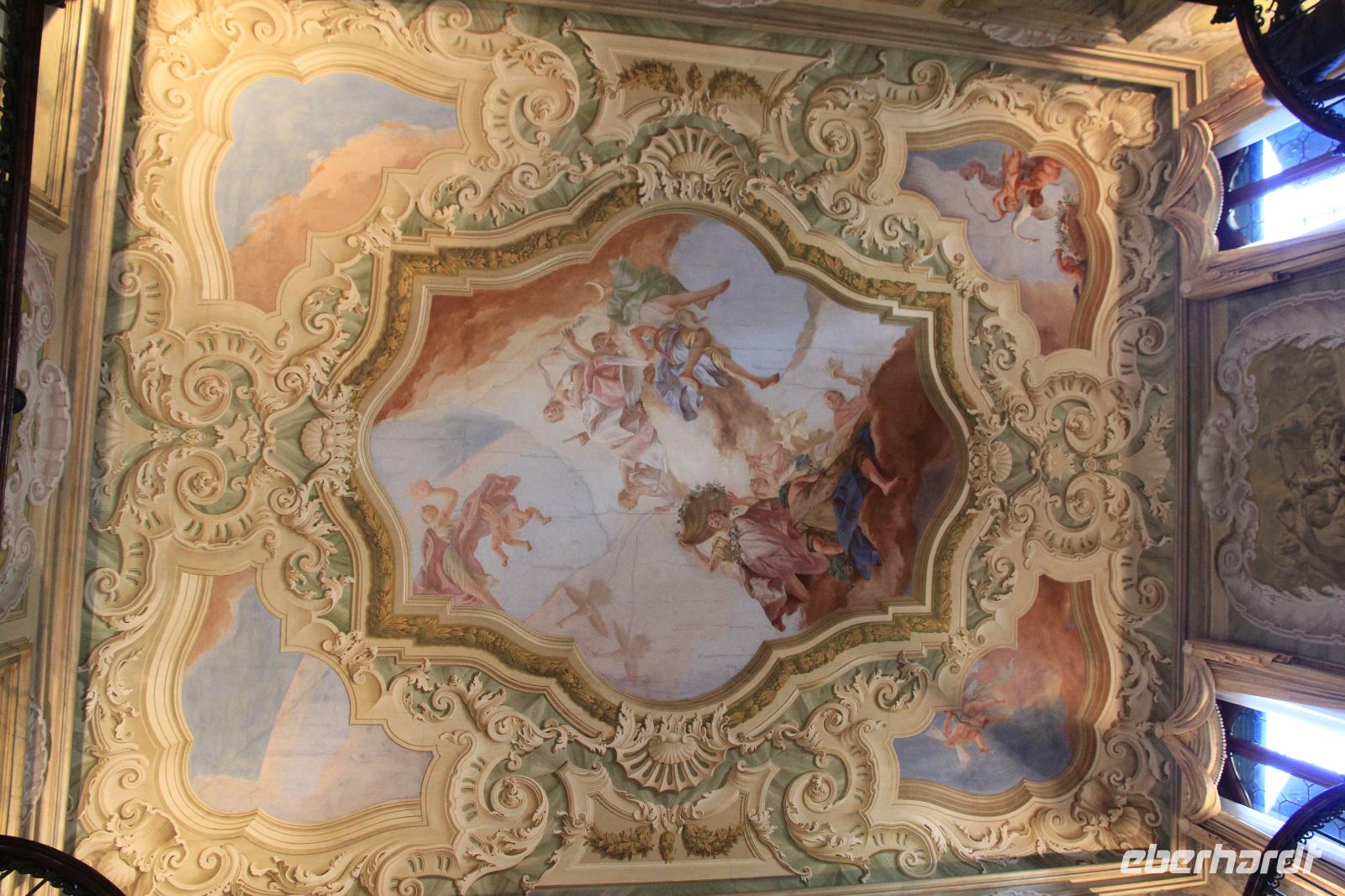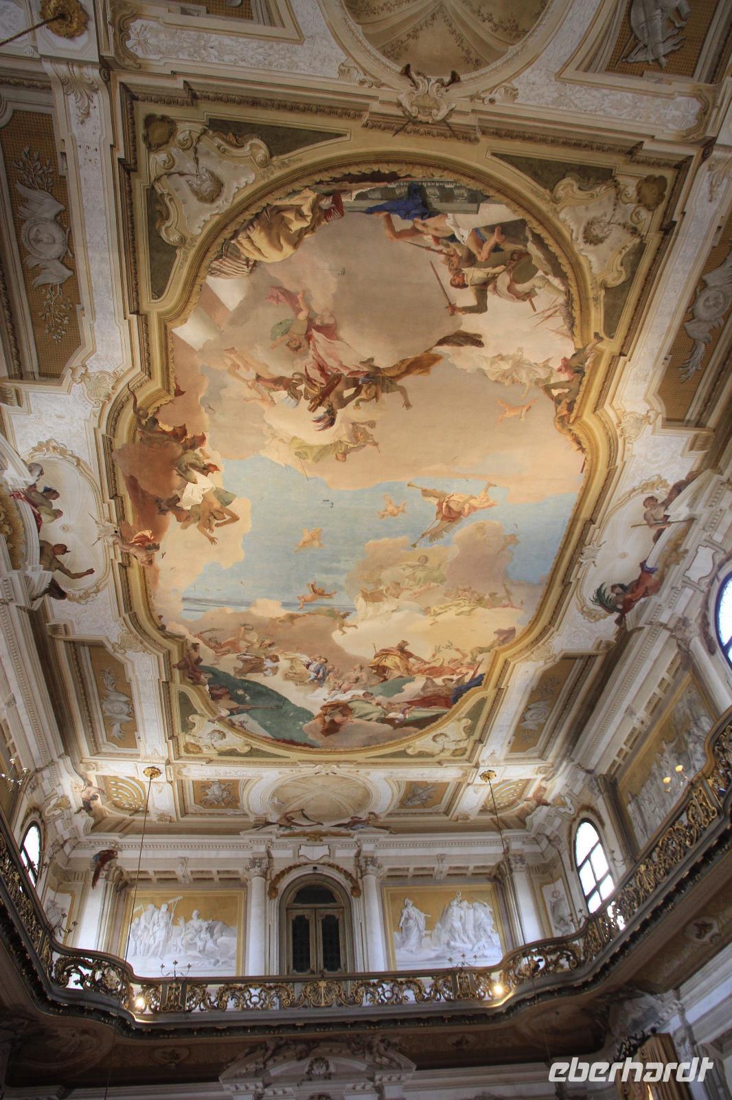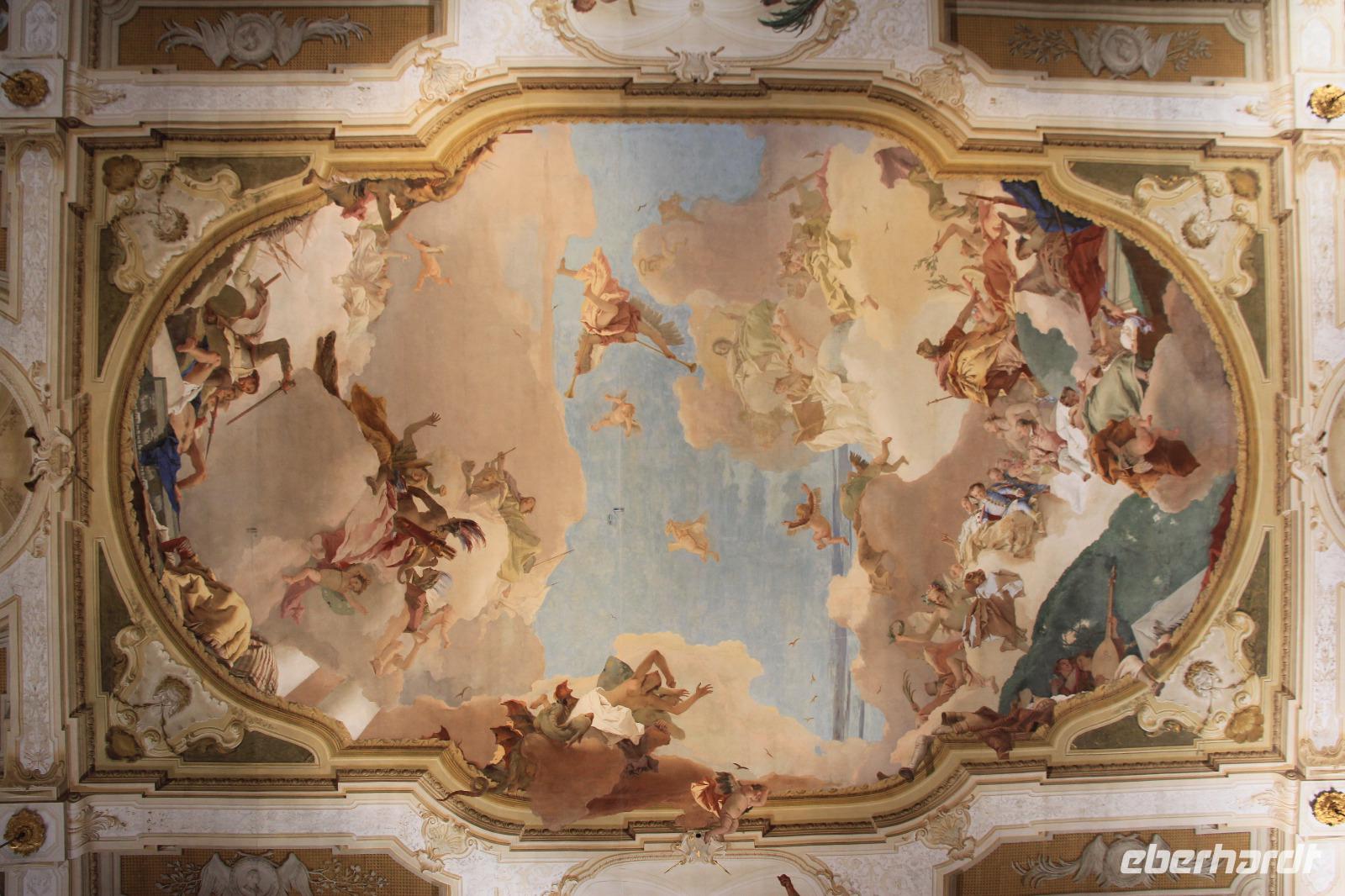 Heute lacht uns wieder die Sonne: Es stehen drei sehr unterschiedliche und doch beeindruckende Villen auf unserem Besuchsplan. Zuerst besichtigen wir die Villa Pisani, deren Erbauer bei der Planung nicht so sehr an eine Villa, sondern an das Schloss von Versailles dachte. Der 114. Doge von Venedig, Alvise Pisani, lebte viele Jahre in Paris und konnte sich nur vorstellen, mit demonstrativ zur Schau gestelltem Reichtum regieren zu können. Im Jahre 1934 wählte der dem Dogen wahrscheinlich charakterlich ähnliche Mussolini genau diesen Prunkbau für sein erstes Zusammentreffen mit Hitler. Trotzdem genießen wir die Schönheit und die Verspieltheit des Parkes. Weiter geht es auf dem Brenta-Kanal, unser Burchiello wird von Kapitän Alessandro gesteuert, der unverhohlen mit unserer Reiseführerin Irene schäkert. Wahrscheinlich brennt bei ihm "Das Feuer" von D'Annunzio. Wir passieren zwei Schleusen und mehrere Brücken werden für uns, die Durchfahrt ermöglichend, verdreht. Die Villa Widmann gefällt uns aufgrund ihrer Zartheit und Kunst. Wir erfahren viel über die Geschichte der Familie der Besitzer. Jetzt wechseln wir noch einmal auf ein schnelleres Schiff, mit dem wir Malcontenta nahe der Lagune von Venedig erreichen. Nach artigem Klingeln am Eingangstor betreten wir das Grundstück der Familie Foscari, die ihren alten Besitz, die von Andrea Palladio entworfene Villa Foscari, wieder erhalten und restauriert hat und jetzt noch bewohnt. Irene schildert uns das wechselvolle Schicksal des Gebäudes und erklärt die künstlerische Botschaft der Architektur und der Fresken in den Innenräumen. Zufrieden mit dem Erlebten und dem Erfahrenen kehren wir ins Hotel zurück und genießen dann ein Abendessen in einem benachbarten Restaurant.