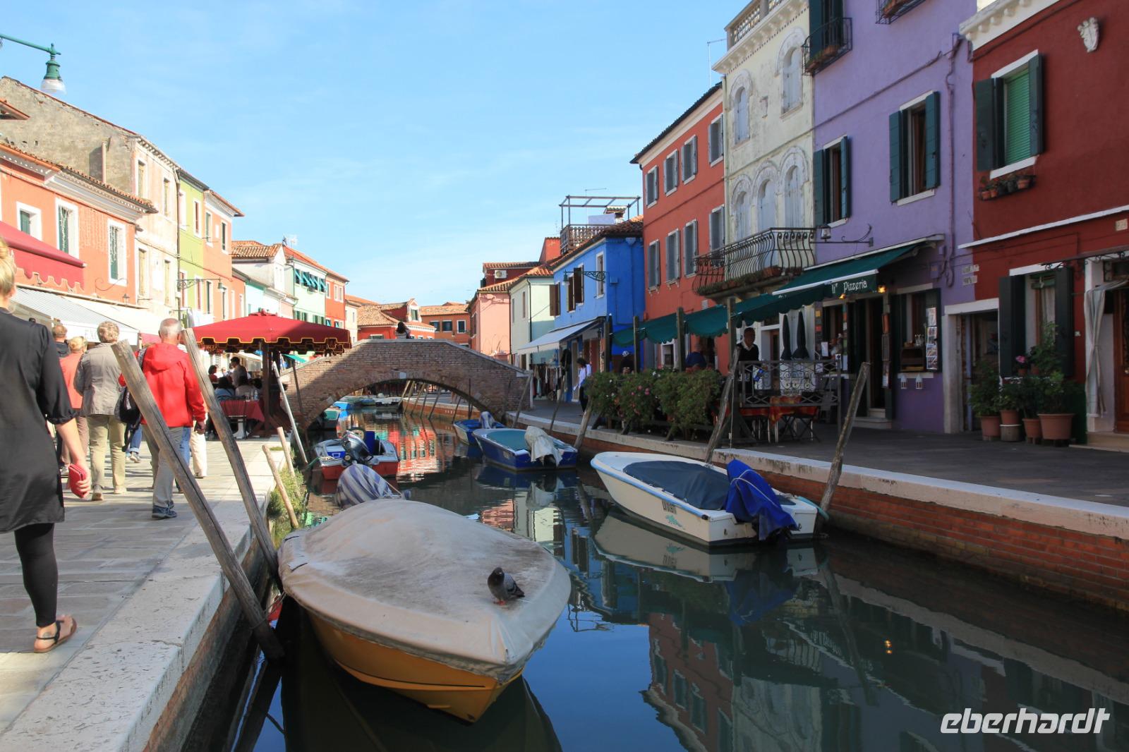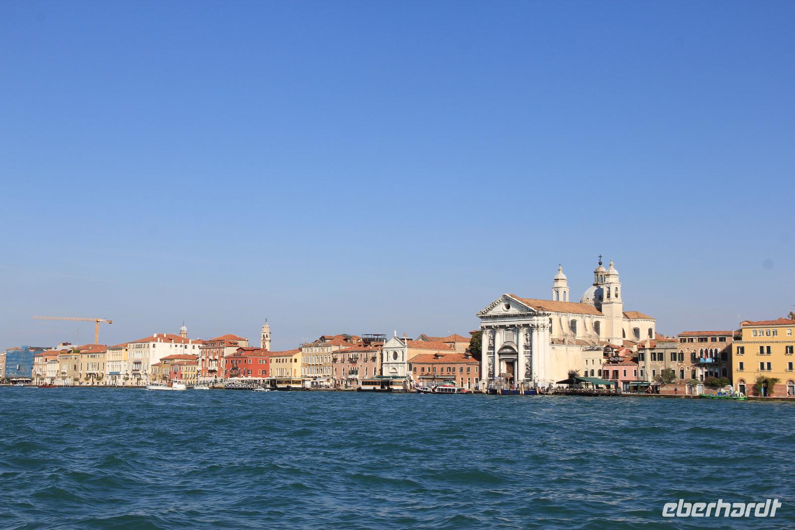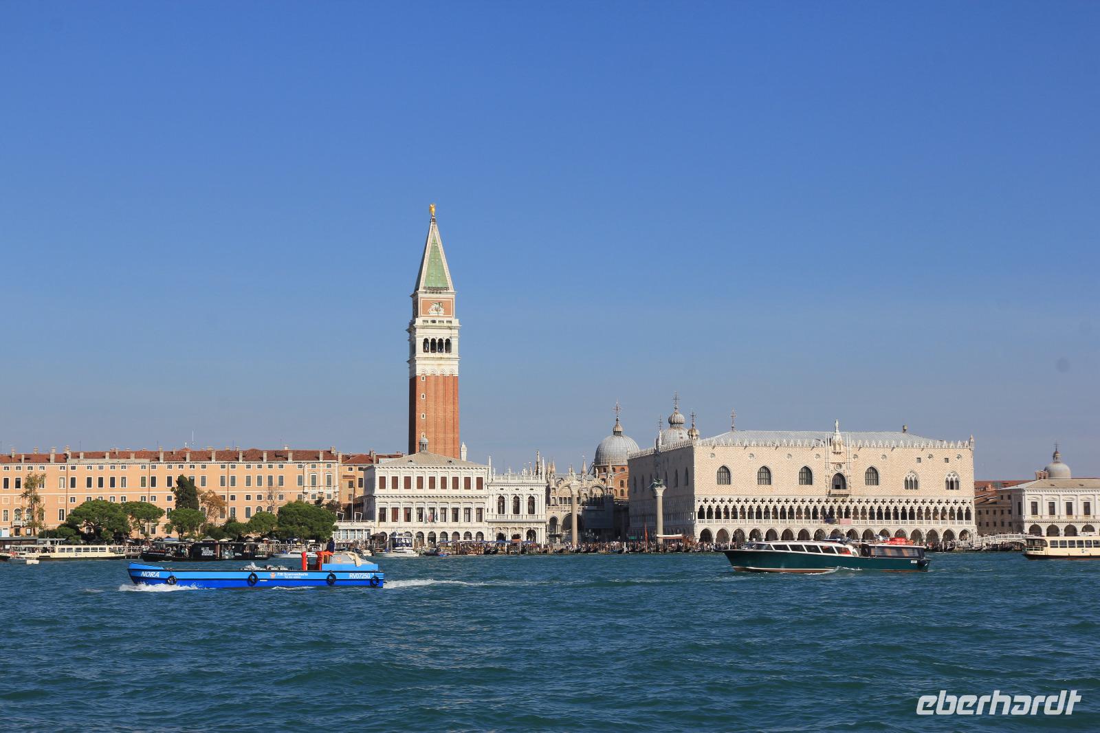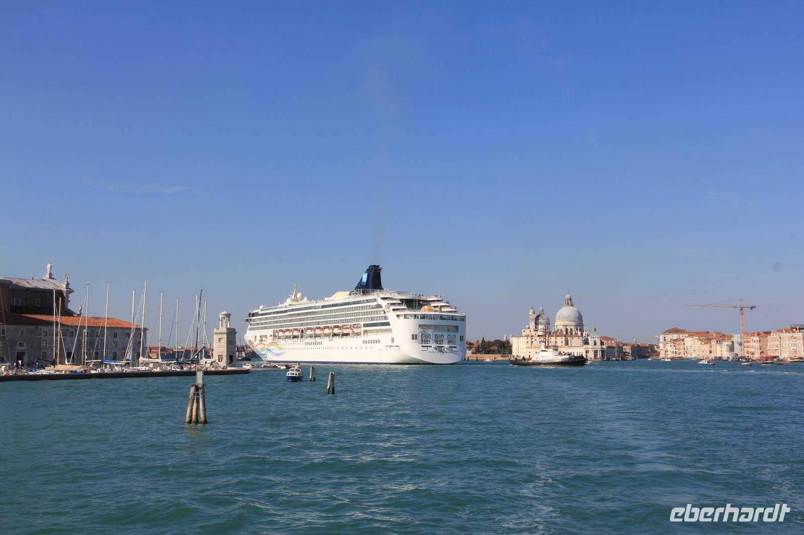 An der Schiffsanlegestelle von Fusina besteigen wir wieder das Boot von Kapitän Alessandro. Heute macht uns die quirlige und gestenreiche Barbara mit der Wasser- und Landschaft der Lagune bekannt. Wir durchfahren den Giudecca-Kanal, konzentrieren uns ganz auf die von ihr erklärten Gebäude beiderseits des Kanals, da schiebt sich plötzlich ein Riesen-Kreuzfahrtschiff vor die Augen- und Kamera-Linsen. Als der Blick wieder befreit ist, bewundern wir die Szenerie am Canale di San Marco. Weiter geht es um die Hauptinsel herum in den Norden der Lagune nach Murano, die Insel der Glasmacher und -bläser. Wir überzeugen uns bei einer Vorführung des Glasblasens von dieser handwerklichen Kunst und entrichten an diese unseren Tribut, indem wir im Werkverkauf gegen Geld zerbrechliche Geschenke für unsere Lieben zu Hause eintauschen. Wir schiffen dann an der langgestreckten Insel St. Erasmo vorbei, dabei genießen wir ein von Smutje Michele gezaubertes 3-Gänge-Mittagsmahl mit Wein und Prosecco. Die Insel Torcello hat nur noch wenige Einwohner, macht aber einen charmanten Eindruck und besticht durch die tausendjährige Kirche Santa Maria Assunta, die u.a. mit byzantinischen Mosaiken die Kirchenkunst des frühen Mittelalters bewahrt. Es ist heute kaum vorstellbar, dass diese Insel vor hunderten Jahren von tausenden Menschen bewohnt und Bischofssitz war. Weiter geht es zur Nachbarinsel Burano, welche aufgrund seiner farbigen Häuschen ein begehrtes Foto- und Selfi-Motiv und damit Ziel des Massentourismus ist. Während die Herren der Schöpfung fotografieren, werden die Frauen in zahllosen Geschäften zum Kauf schöner Dinge zum Schmücken und Bekleiden verführt. Wir genießen hier noch einmal einen Spaziergang in der Sonne und treiben mit dem Strom der Touristen. Auf dem Rückweg bewundern wir vom Schiff aus das in der Abendsonne erstrahlende Venedig. Wir danken Barbara für die lebendigen Erklärungen und freuen uns auf den morgigen Landgang in Venedig.
