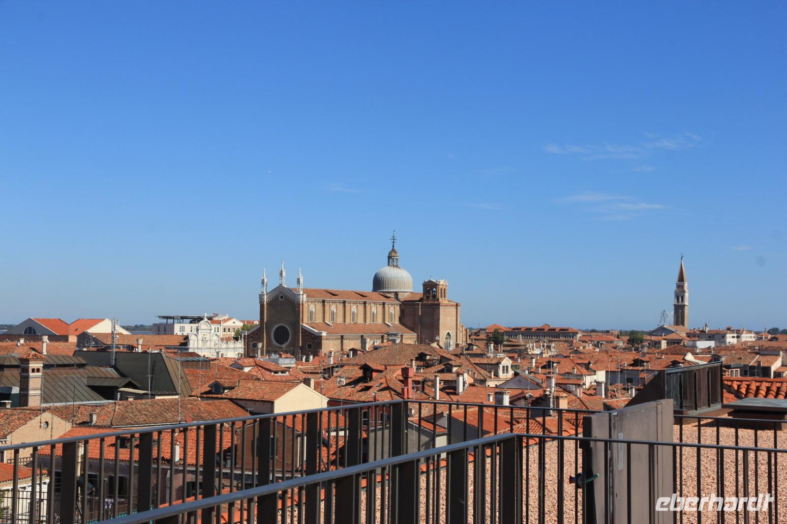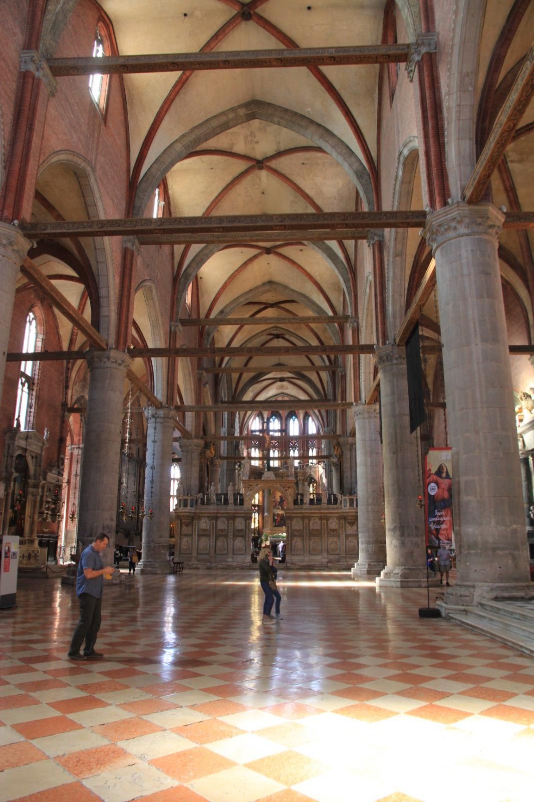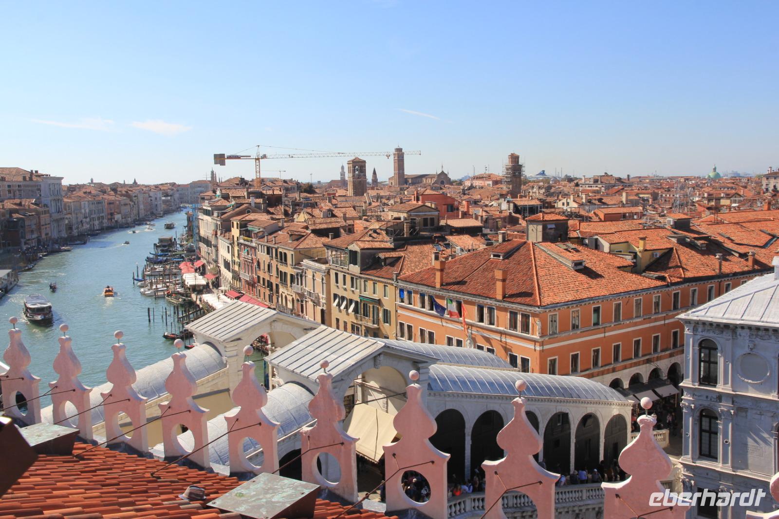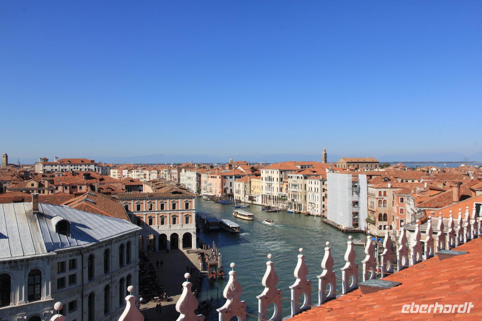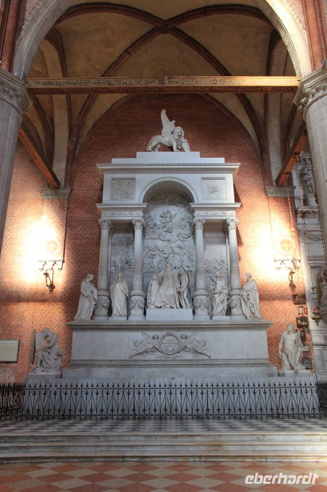 An der Piazzale Roma erwartet uns unsere charmante Stadtführerin Alessia zum Stadtrundgang. Dieser führt uns zuerst durch die Gassen des Stadtteils Santa Groce zur Innenbesichtigung der Kirche Santa Maria Glorioso dei Frari. Wir bewundern u.a. Tizians Assunta über dem Altar, sein von seinen Schülern geschaffenes pyramidenförmiges Grabmahl und das Pesaro-Tryptichon von Giovanni Bellini. Alessia zeigt uns abseits des Touristenstromes noch von den Venezianern bewohnte Gassen, eine Schule und romantische Plätze. Kurz vor der Rialto-Brücke machen wir Halt für einen Mittagsimbiss. Danach geht es über die Rialtobrücke zum Fondaco dei Tedeschi, dem ehemmaligen Handels- und Wohnhaus deutscher Händler im mittelalterlichen Venedig, auf dessen Dachterasse wir wunderbare Ausblicke auf den Canal Grande und die gesamte Stadt genießen und mit unseren Kameras festhalten. Den Abschluss unseres Rundganges bildet die Piazza San Marco. Wir besichtigen die Privatkapelle der Dogen, die Basilica di San Marco, von innen. Am Dogenpalast trennen wir uns, um allen noch etwas Zeit für private Entdeckungen zu geben. Dann geht es gemeinsam über die Ponte dell' Accademia auf die andere Seite des Canal Grande zu unserem Lokal, in dem wir ein Fischmenü zu uns nehmen. Von hier aus ist es nicht mehr weit zum Ausgangspunkt unseres heutigen Rundgangs, an dem uns unsere Transfer-Autos zum Hotel erwarten.
