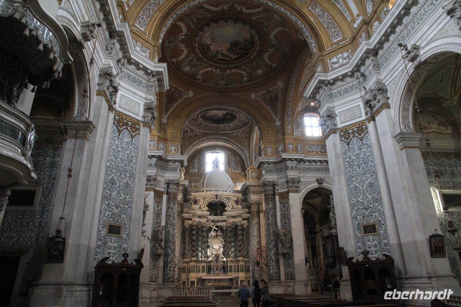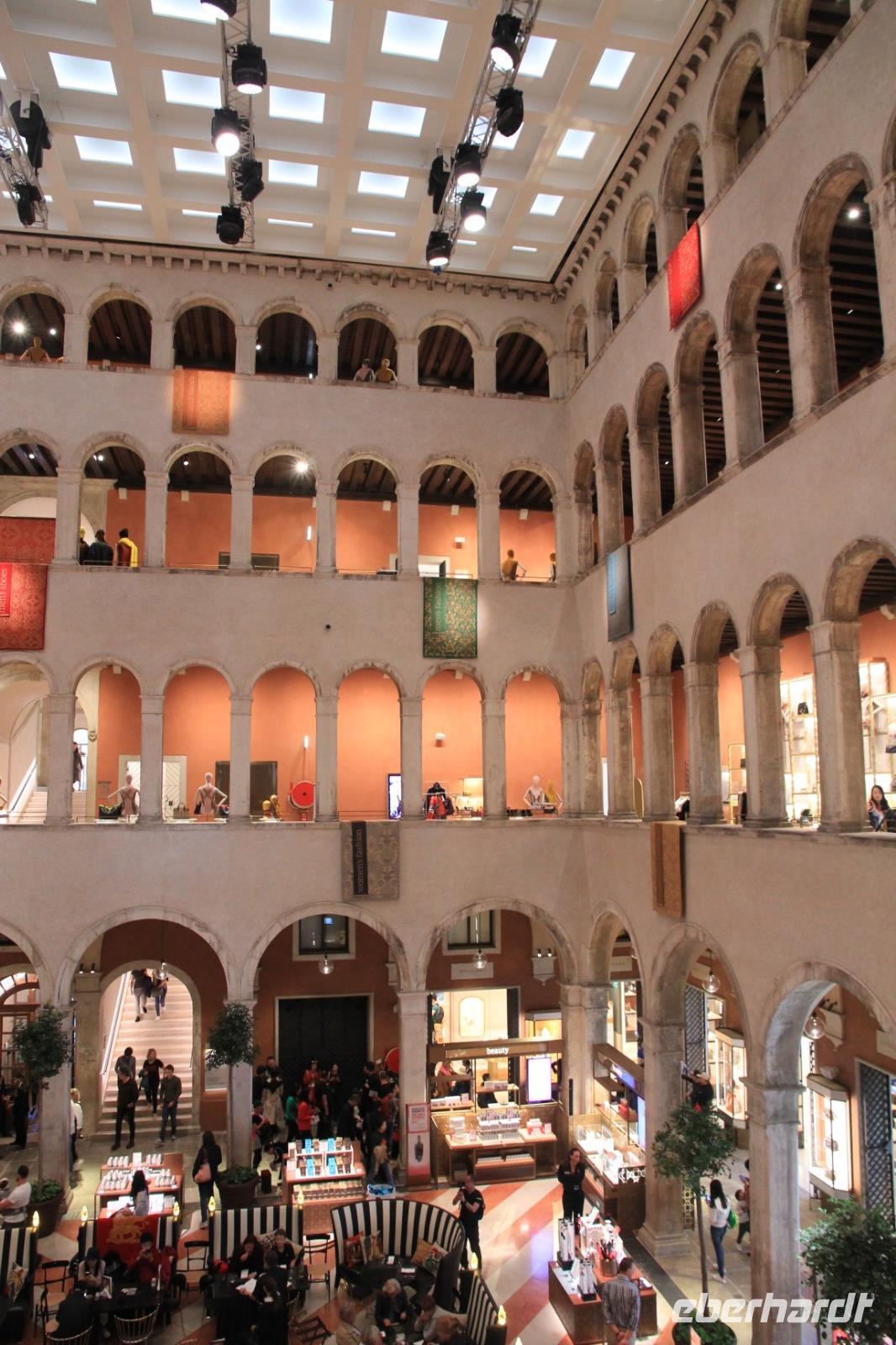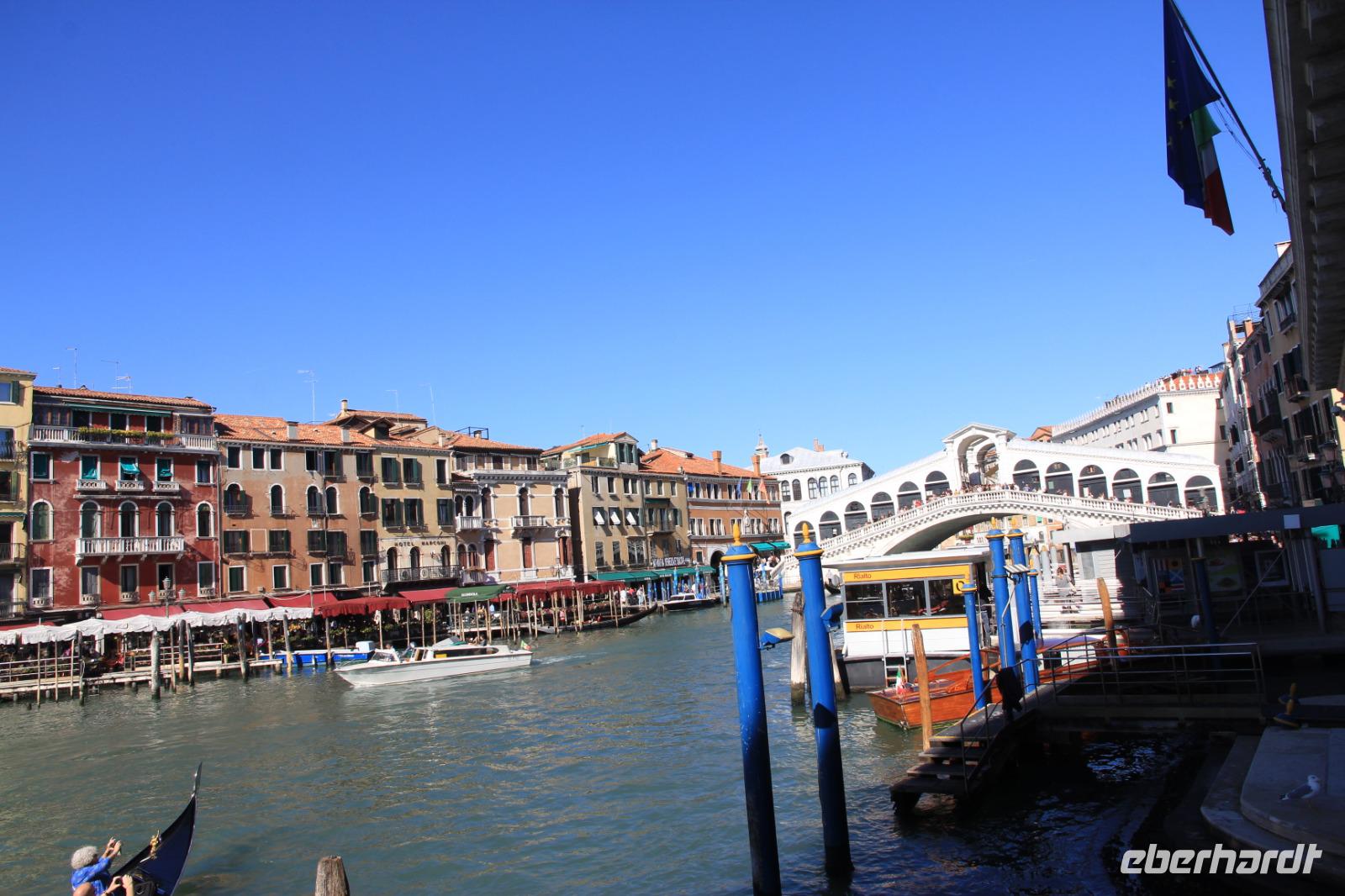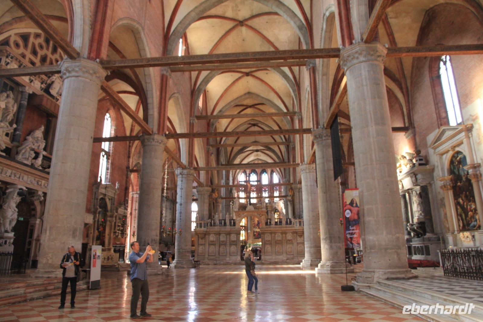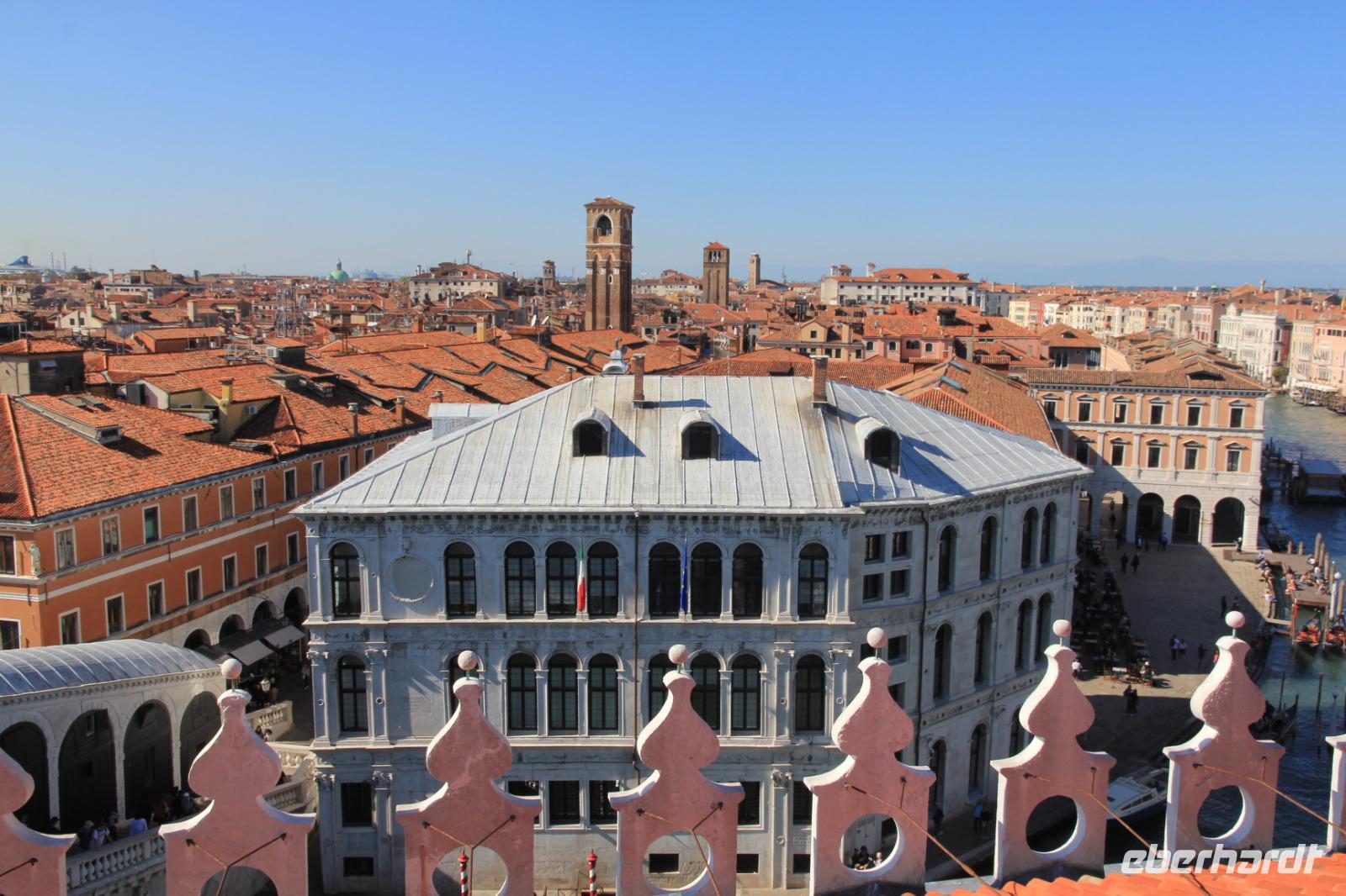 An der Piazzale Roma erwartet uns unsere charmante Stadtführerin Alessia zum Stadtrundgang. Dieser führt uns zuerst durch die Gassen des Stadtteils Santa Groce zur Innenbesichtigung der Kirche Santa Maria Glorioso dei Frari. Wir bewundern u.a. Tizians Assunta über dem Altar, sein von seinen Schülern geschaffenes pyramidenförmiges Grabmahl und das Pesaro-Tryptichon von Giovanni Bellini. Alessia zeigt uns abseits des Touristenstromes noch von den Venezianern bewohnte Gassen, eine Schule und romantische Plätze. Kurz vor der Rialto-Brücke machen wir Halt für einen Mittagsimbiss. Danach geht es über die Rialtobrücke zum Fondaco dei Tedeschi, dem ehemmaligen Handels- und Wohnhaus deutscher Händler im mittelalterlichen Venedig, auf dessen Dachterasse wir wunderbare Ausblicke auf den Canal Grande und die gesamte Stadt genießen und mit unseren Kameras festhalten. Den Abschluss unseres Rundganges bildet die Piazza San Marco. Wir besichtigen die Privatkapelle der Dogen, die Basilica di San Marco, von innen. Am Dogenpalast trennen wir uns, um allen noch etwas Zeit für private Entdeckungen zu geben. Dann geht es gemeinsam über die Ponte dell' Accademia auf die andere Seite des Canal Grande zu unserem Lokal, in dem wir ein Fischmenü zu uns nehmen. Von hier aus ist es nicht mehr weit zum Ausgangspunkt unseres heutigen Rundgangs, an dem uns unsere Transfer-Autos zum Hotel erwarten.