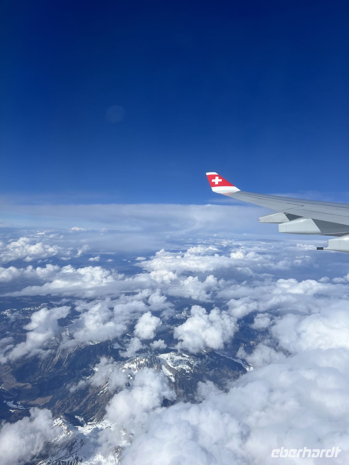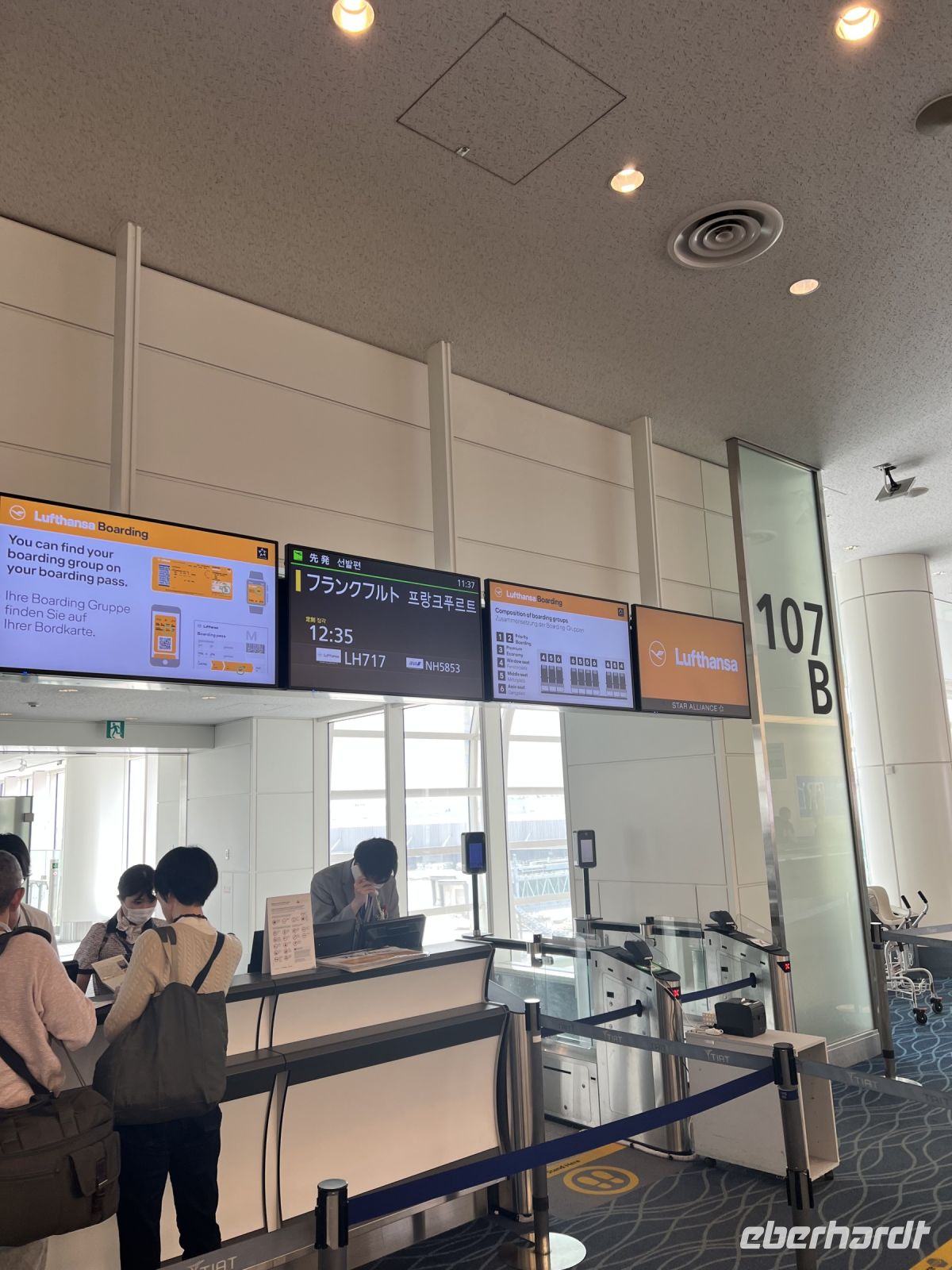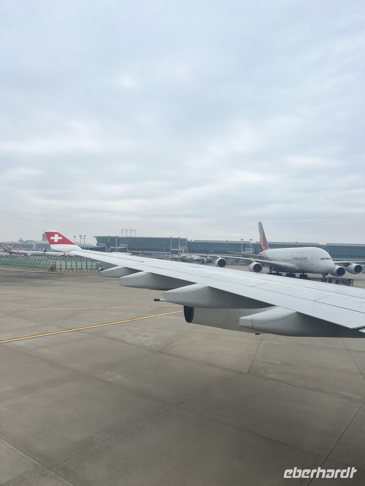 Zur Mittagsstunde trafen wir uns alle am Gate und am frühen Nachmittag flogen wir mit der SWISS / Airbus 340 nach Seoul.