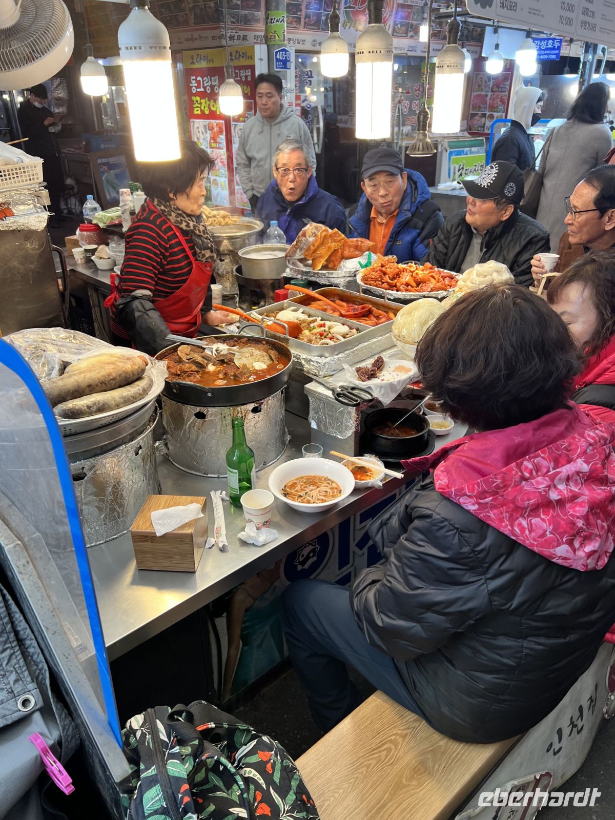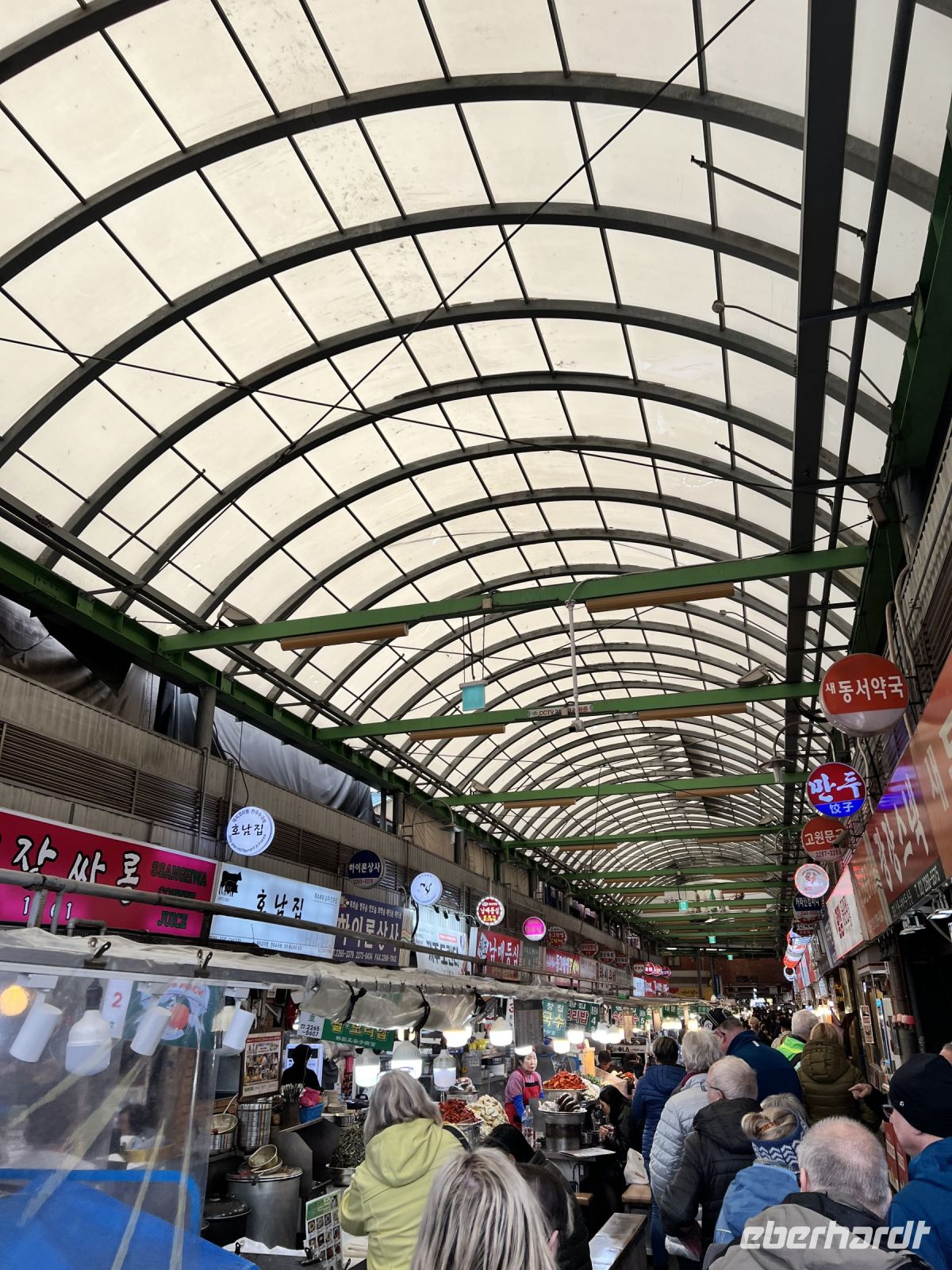 Uns erwartete bereits Charlie - unser örtlicher Reiseleiter für Südkorea. Da wir nur wenig Zeit in Seoul haben, begannen wir bereits mit dem Teil 1 unserer Stadtführung. Wir besuchten zunächst den Fernsehturm „N Seoul Tower“ - der Tower liegt auf 133 Meter Höhe und bietet einen wundervollen Blick auf die Hauptstadt Südkoreas. Von dort aus sind es nur 50 km Luftlinie bis zur Grenze von Nordkorea. Im Anschluss fuhren wir zum Bangsan Market - der Markt verfügt über mehrere Essens,- Lebensmittelstände. Während des Rundganges, bot der Reiseleiter auch die Möglichkeit, die südkoreanische Tracht Hanbok kennenzulernen. Es ist eine farbenfohe, traditionelle und zeitlose Tracht - jedoch nicht nur ein Kleidungsstück, sondern es ist noch ein Symbol der Identität und Kultur, dass sowohl eine reiche Geschichte und lebendige Gegenwart beherbergt.