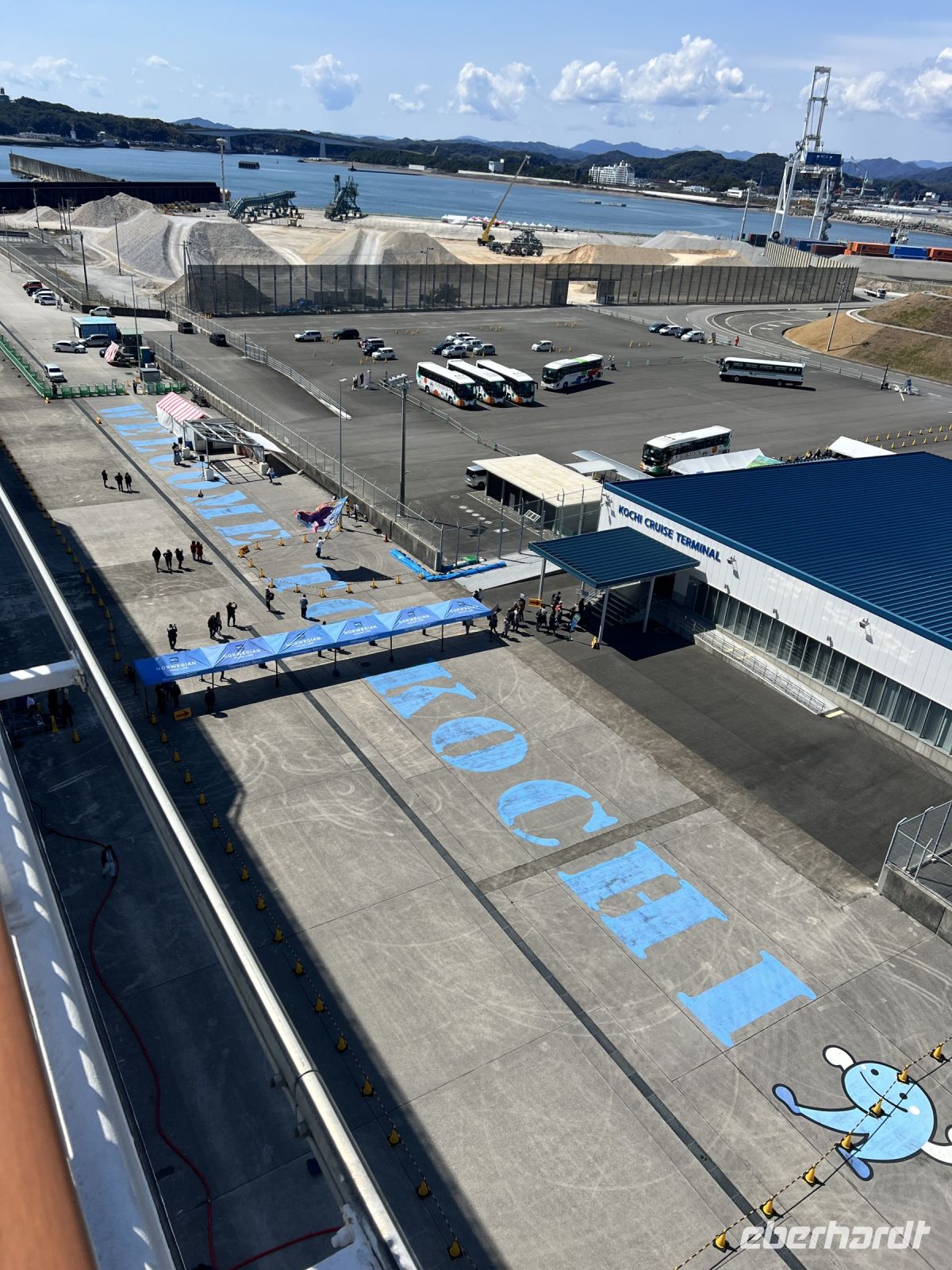 Heute stand ein NCL-Ausflug auf dem Plan. Wir besuchten zunächst das künstlerische Ekingura Museum - das dem Künstler Ekin gewidmet ist. Durch sein schwieriges Leben, gestaltete er Bilder die beängstigend, jedoch auch eine Schönheit ausstrahlen. Nach dem Museum fuhren wir zum Kochi Schloss - es wurde im Jahr 1601 erbaut und diente als Residenz des Herrschers der Tosa-Provinz. Im Jahr 1748 wurde dann der Hauptturm fertiggestellt und bietet dahingehend, einen beeindruckenden Blick auf die Umgebung von Kochi. 2004 erhielt das Kochi Castle den Status „Teil des wichtigen Kulturgutes Japans“. Wir gingen weit hinauf, um uns diesen Blick auf die Stadt nicht entgehen zu lassen. Nachdem wir bei wahrlich schönen Kaiserwetter, die Aussicht genossen haben, fuhren wir wieder zurück an den Hafen. Gegen 20:00 Uhr verließen wir Kochi und es geht weiter in Richtung Osaka!