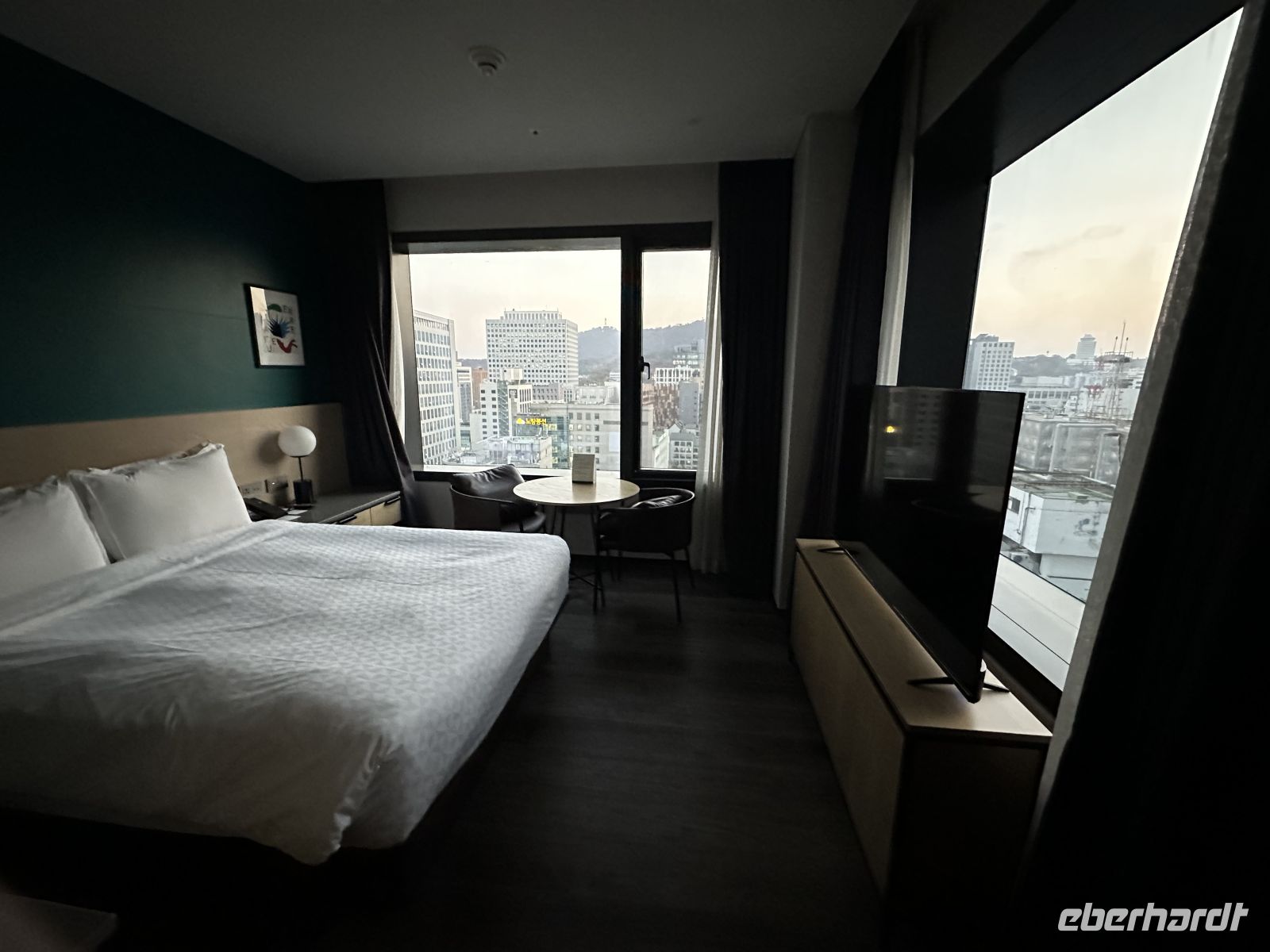 Der Markt ist überdacht, laut, lebhaft und chaotisch im besten Sinne. Zunächst kommen wir an Ständen vorbei, die Stoffe, Hanboks (traditionelle Kleidung) und Haushaltswaren verkaufen und dann kommen wir zur Hauptattraktion – dem Food Markt. Die zahlreichen Imbissstände, die typisches koreanisches Street Food anbieten, sind gut besucht. Wie gern würden wir hier auf den kleinen Hockern Platz nehmen und die lokale Küche hautnah erleben. Kaya bummelt mit uns von einem Stand zum anderen und erklärt uns die für uns exotischen Früchte, Gewürze und Speisen. Nun ist es Zeit, ins Hotel zu fahren. Alle Zimmer sind vorbereitet, Kaya besorgt die Schlüsselkarten und wir können uns ein bisschen frisch machen, denn gleich darauf geht es zum Abendessen.