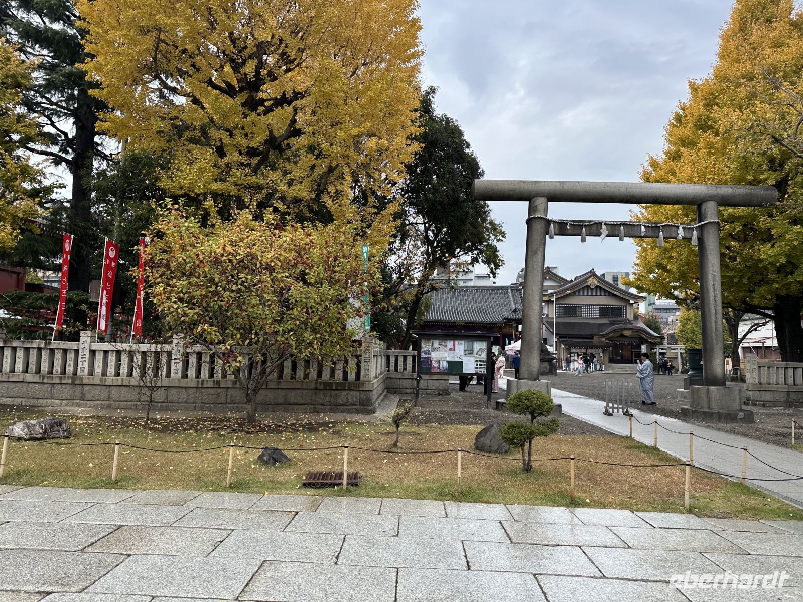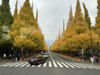 Am frühen Morgen begrüßt uns bei der Ankunft im Hafen von Tokyo eine Trommler Gruppe. Es ist Zeit genug für ein Frühstück im Restaurant, danach warten wir darauf, dass wir unser Schiff verlassen können. Im Hafengebäude stehen fein aufgereiht unsere Koffer. Und am Ausgang wartet unser örtlicher Reiseleiter Thomas, der uns heute und morgen bestens betreuen wird. Auf unserem Weg zum Meiji-Schrein fallen uns Bäume auf, die in der Sonne spektakulär leuchten. Es sind Ginkgo-Bäume. Mehrere Alleen, wie zum Beispiel die Meiji Jingu Gaien, bilden regelrecht goldgelbe Tunnel. Es ist sehr beeindruckend.