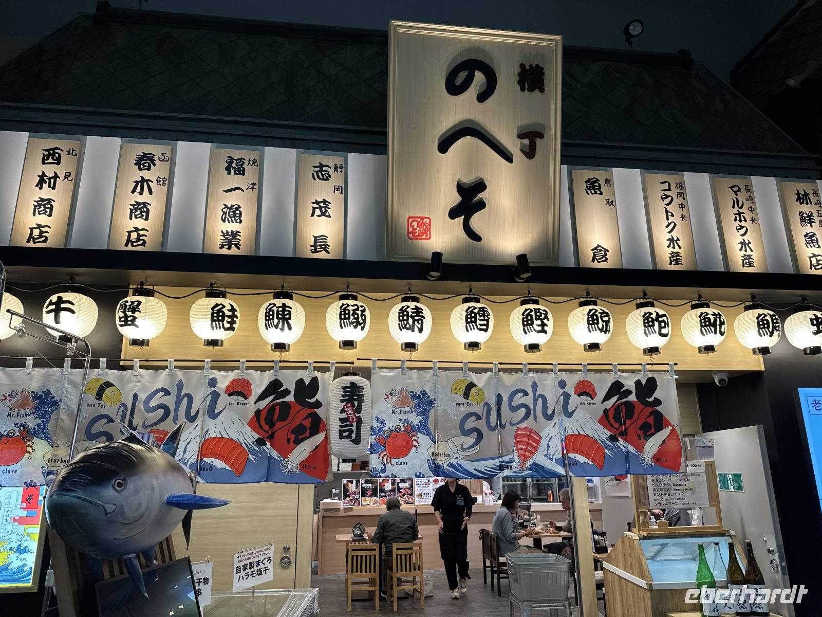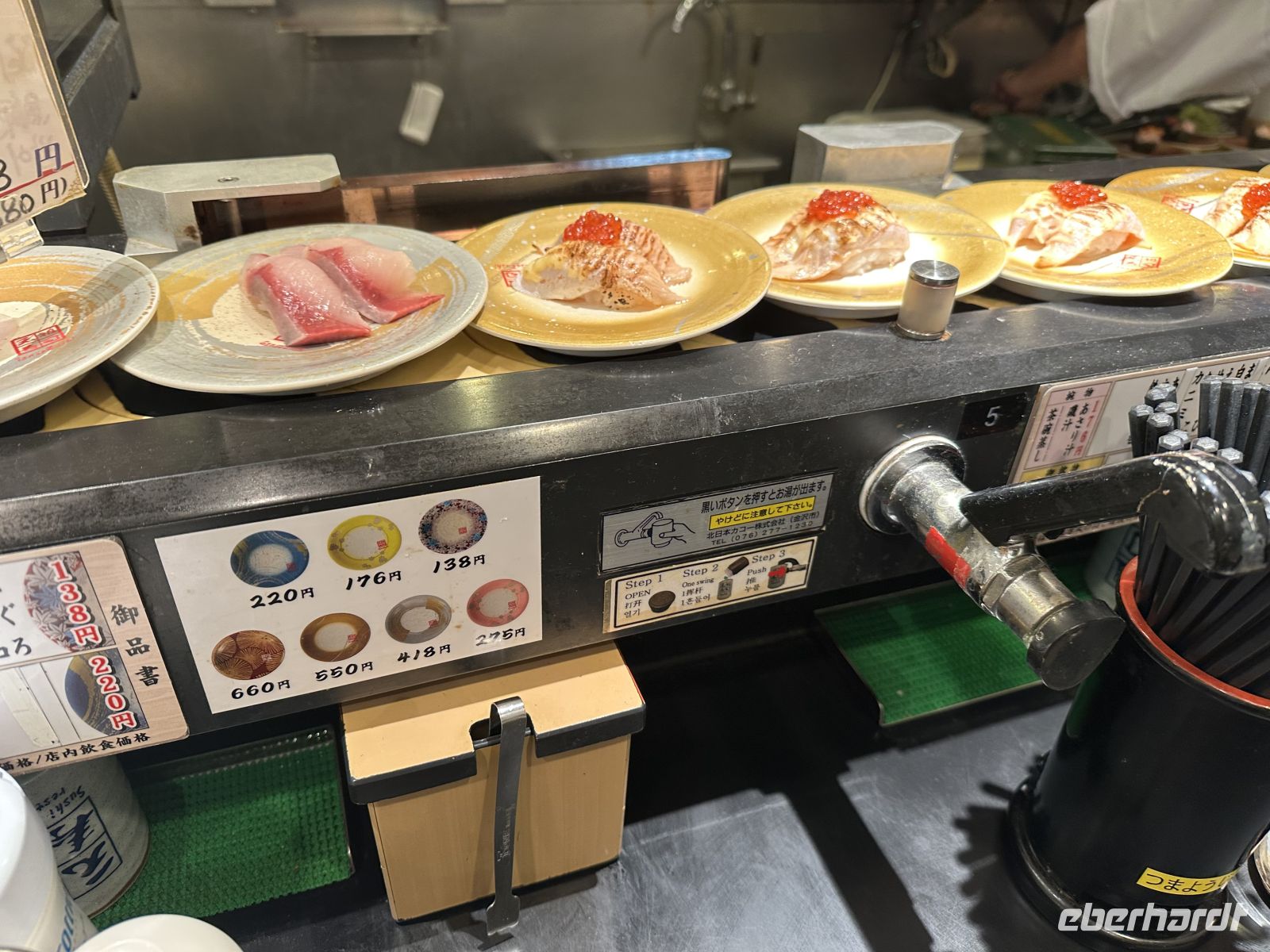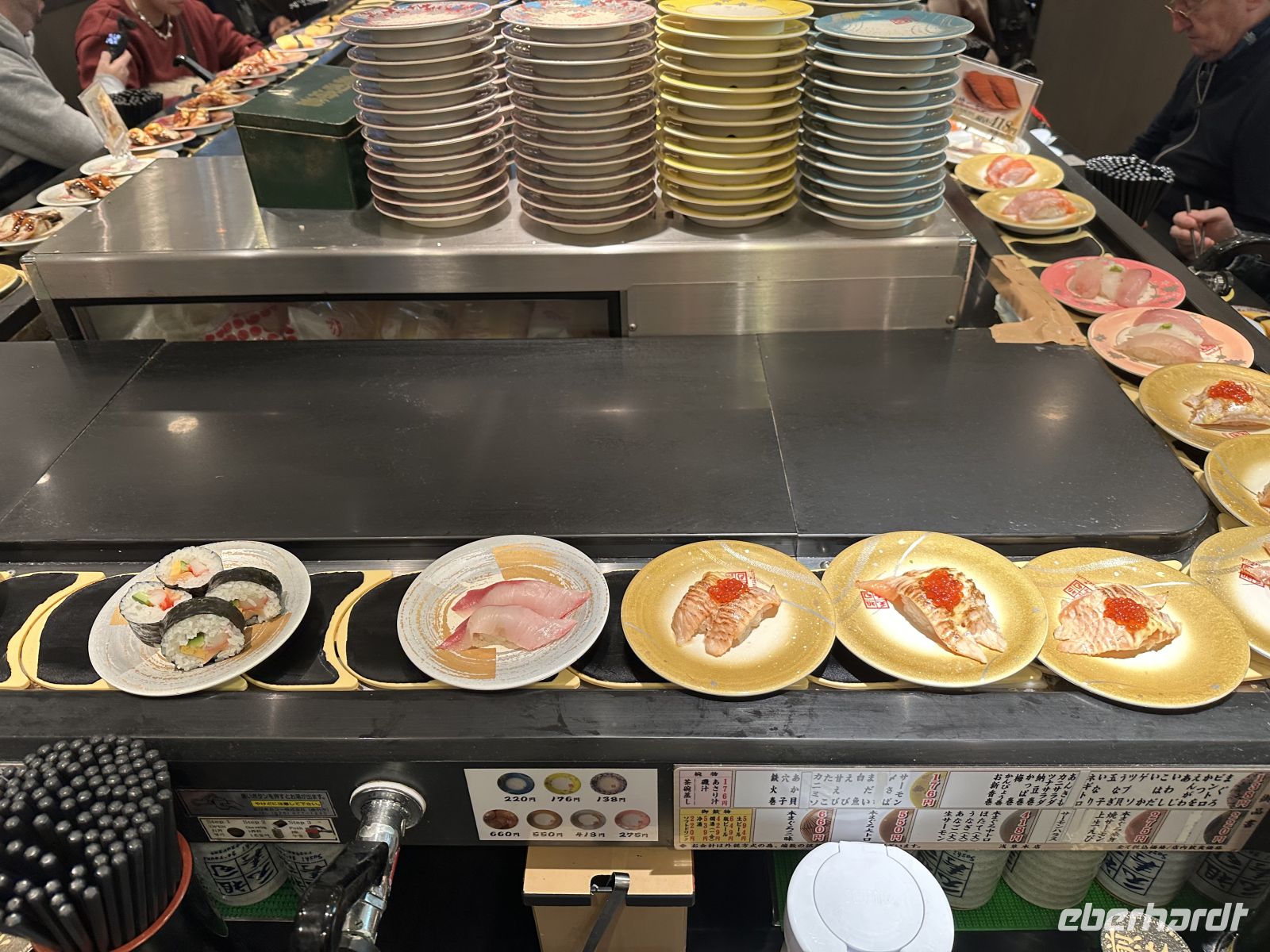 Gegen Mittag sind wir zurück am Schiff. Auch der Hafen von Shimizu hat eine besucherfreundliche Infrastruktur. Es ist nicht weit bis zum Riesenrad und zum Einkaufszentrum. Heute steht Sushi auf unserem Wunschzettel. Und selbstverständlich werden wir fündig. Es schmeckt wie immer fantastisch.