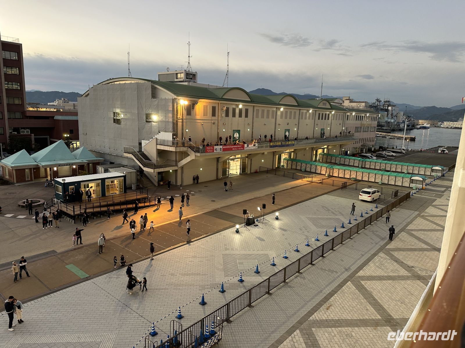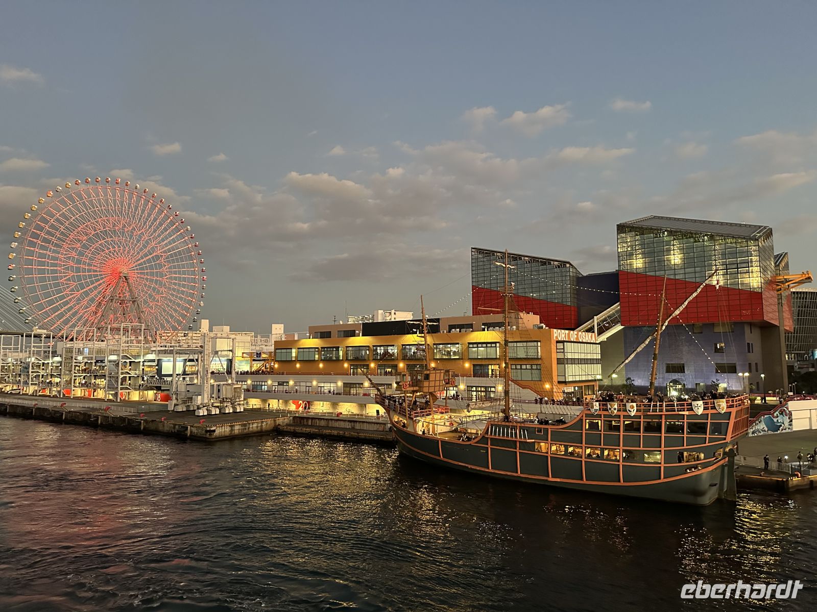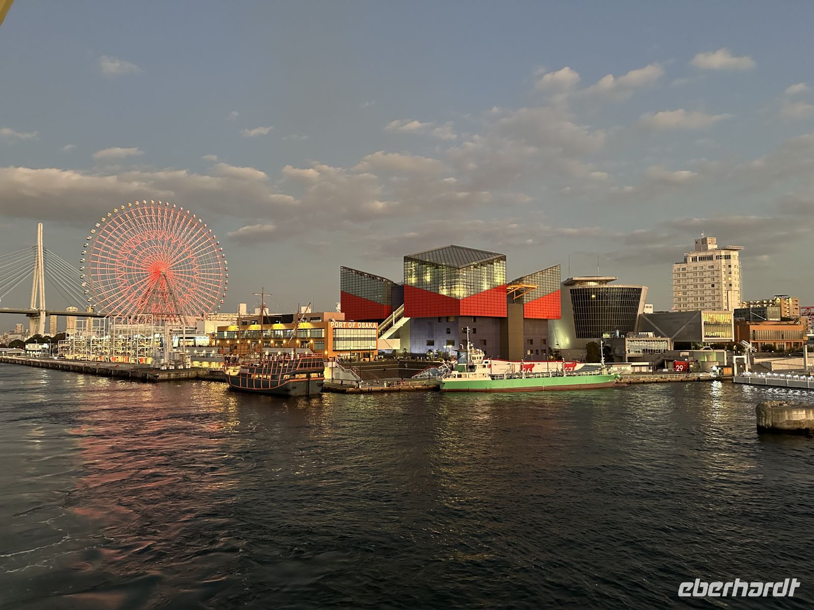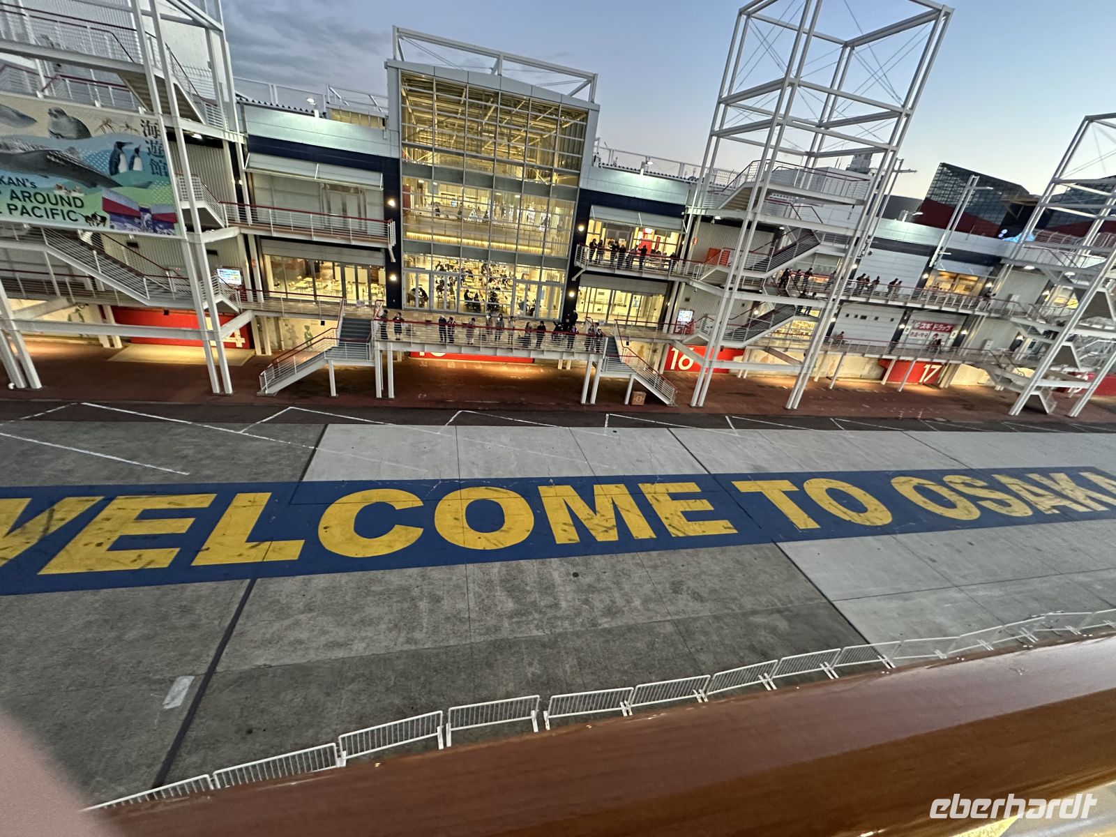 Als unser Schiff den Hafen von Osaka verlässt, stehen im Hafengebäude zahlreiche japanische Menschen, die uns zujubelnd verabschieden. Ein Gänsehautmoment.