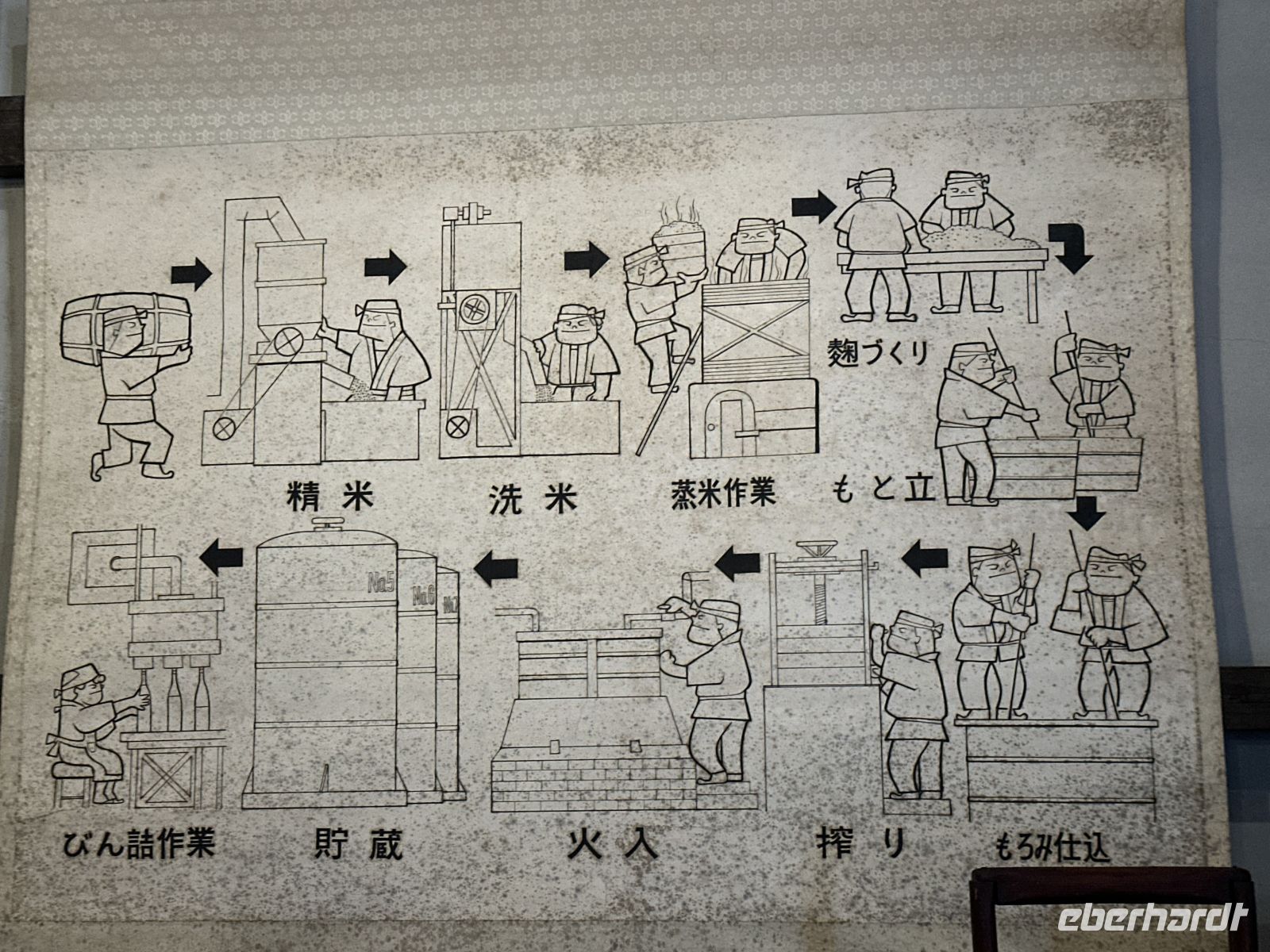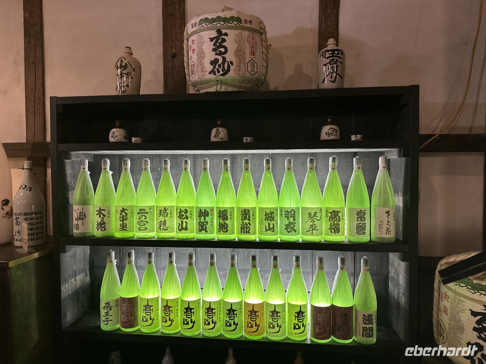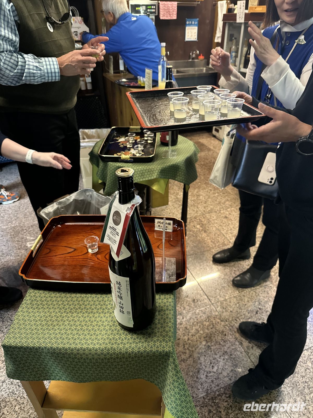 Unser nächstes Ziel ist eine Sake-Brauerei. Wir werden herzlich begrüßt und in die Geheimnisse der Sake Herstellung eingeweiht. Anschließend dürfen wir sogar in die Fabrikhalle schauen. Und natürlich kosten und kaufen.