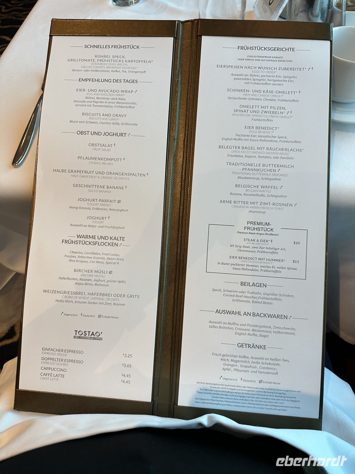 Alternativ bietet sich der Besuch eines der Spezialrestaurants an. Wählen wir heute das Moderno.