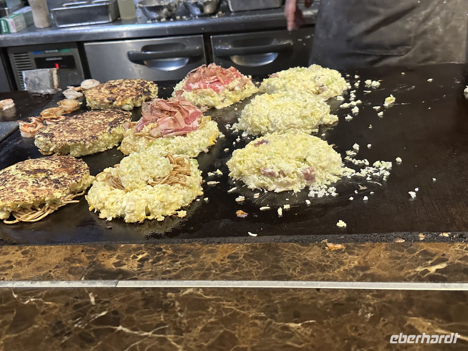 Da wir erst um 16.30 Uhr zurück an Bord sein müssen, nutzen wir die Zeit, in der Nähe von Schiff ein lokales Restaurant ausfindig zu machen, das Okonomiyaki anbietet. Ein japanischer Pfannkuchen, der hier als typische Spezialität gilt. In einem Einkaufszentrum, ganz in der Nähe von unserem Schiff, tobt der japanische Alltag. Puppenspieler zeigen dem geneigten Publikum was sie können, es gibt Läden, die wir in Deutschland nicht kennen, wie zum Beispiel Popcorn Papa, wo man Popcorn in verschiedenen Variationen ausprobieren kann, Automaten, aus denen Überraschungseier ohne Schokolade gezogen werden können, Restaurants mit verschiedenen Okonomiyaki Speisen und Souvenirläden ohne Ende. Die Zeit geht viel zu schnell vorbei.