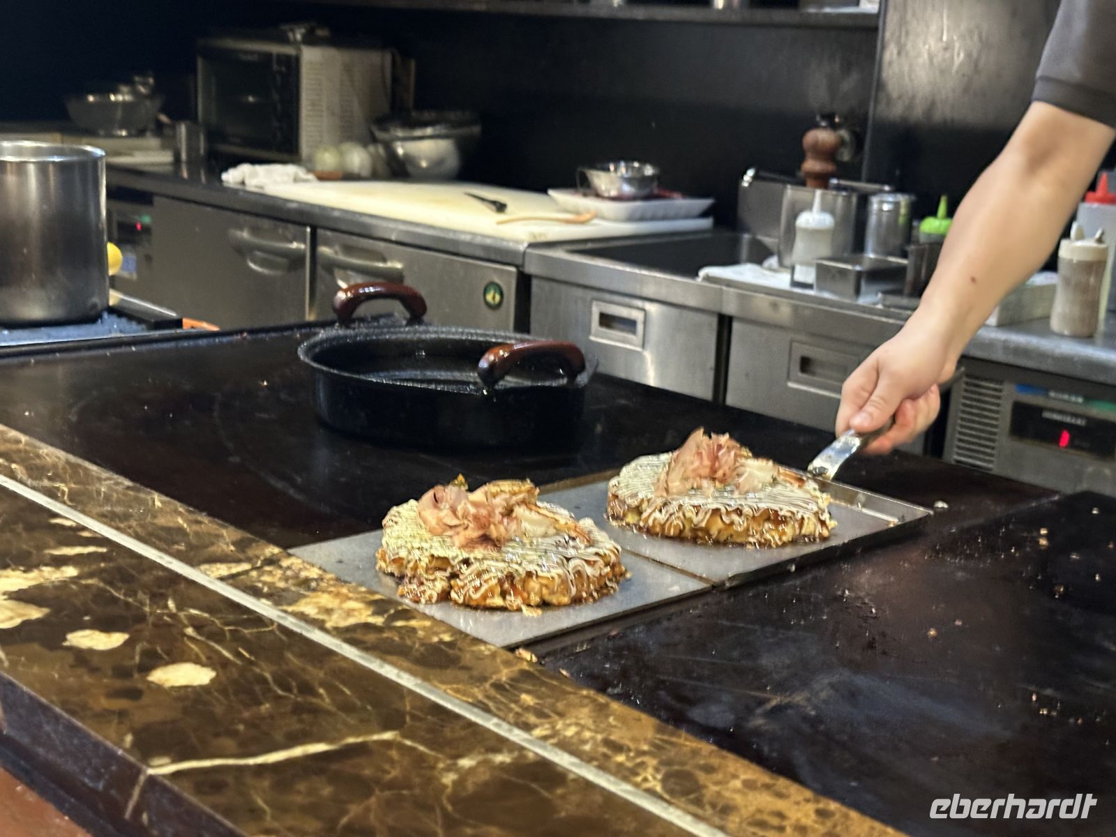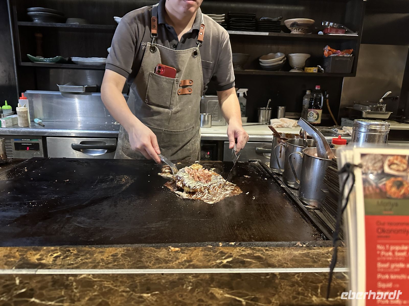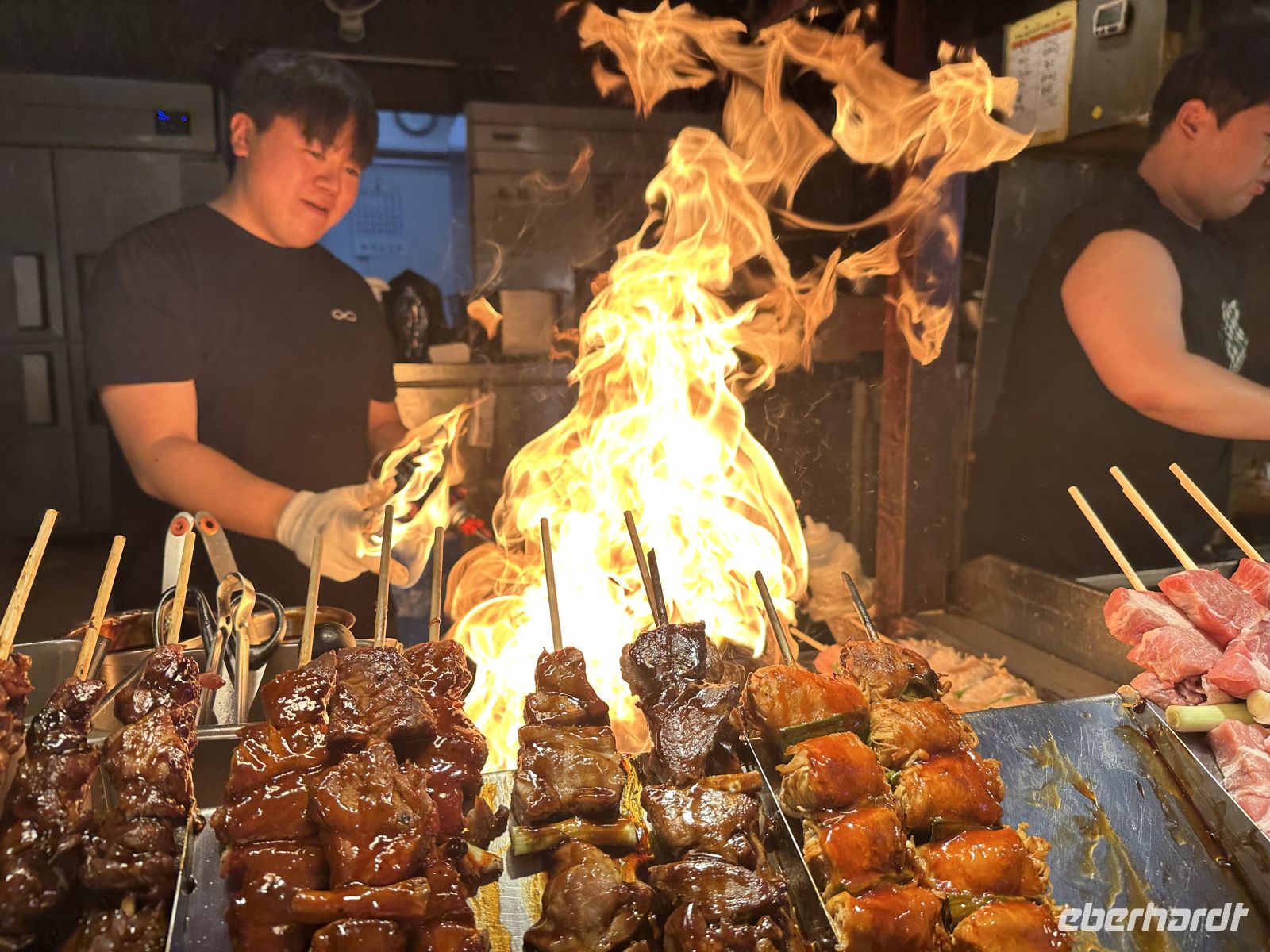 Die Spezialität ist ein Bonito (Thunfisch) Tataki (was „kurz angebraten“ bedeutet. Dick geschnittene Bonito-Filets werden sehr kurz und sehr intensiv über einem extrem heißen Feuer aus trockenem Reisstroh angebraten. Durch die hohe Hitze und die Schnelligkeit wird die äußere Schicht des Fisches perfekt versiegelt und leicht verkohlt, während der Kern des Filets komplett roh und kühl bleibt. Das brennende Stroh verleiht dem Fisch ein einzigartiges, intensives Raucharoma, das leicht süßlich ist und den intensiven, reichen Geschmack des Bonitos wunderbar ergänzt. Ein einzigartiges kulinarisches Erlebnis.