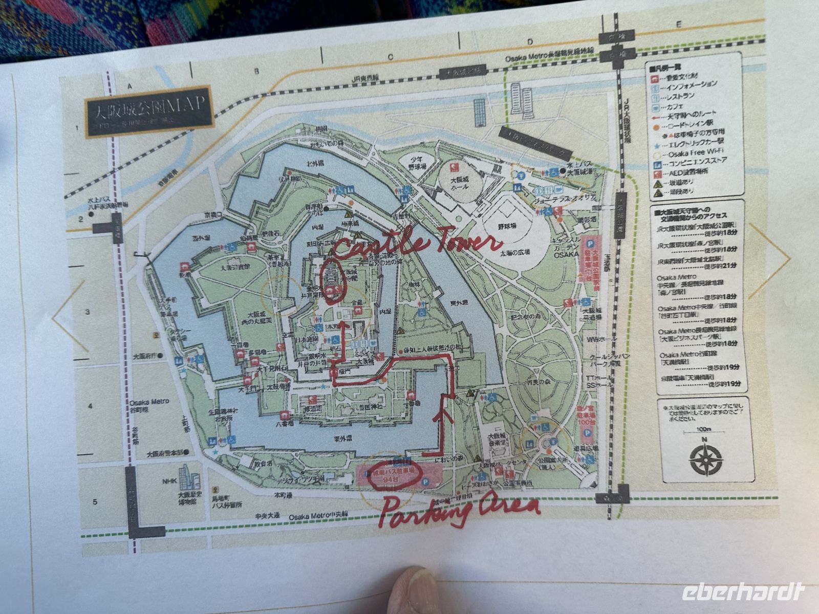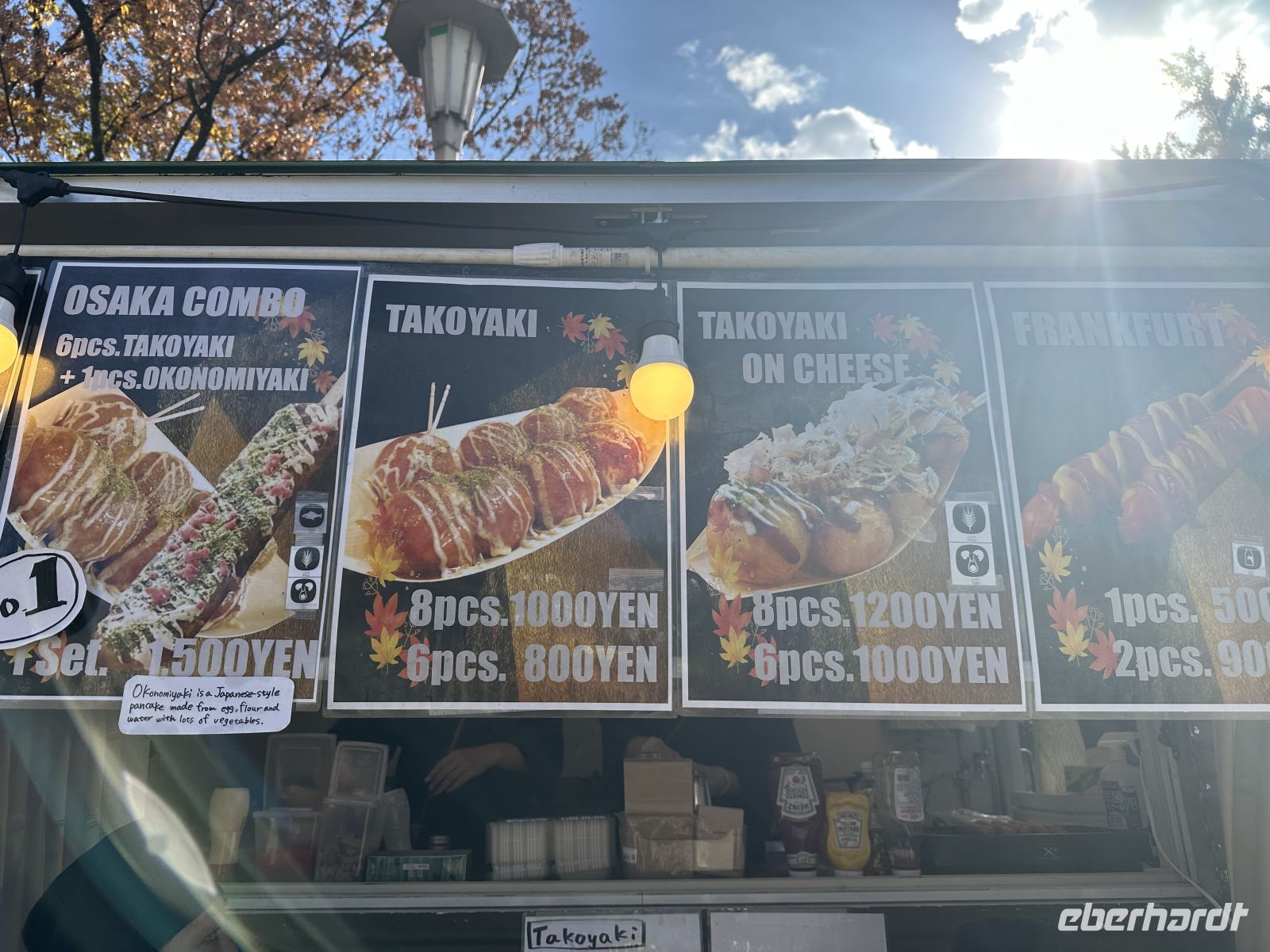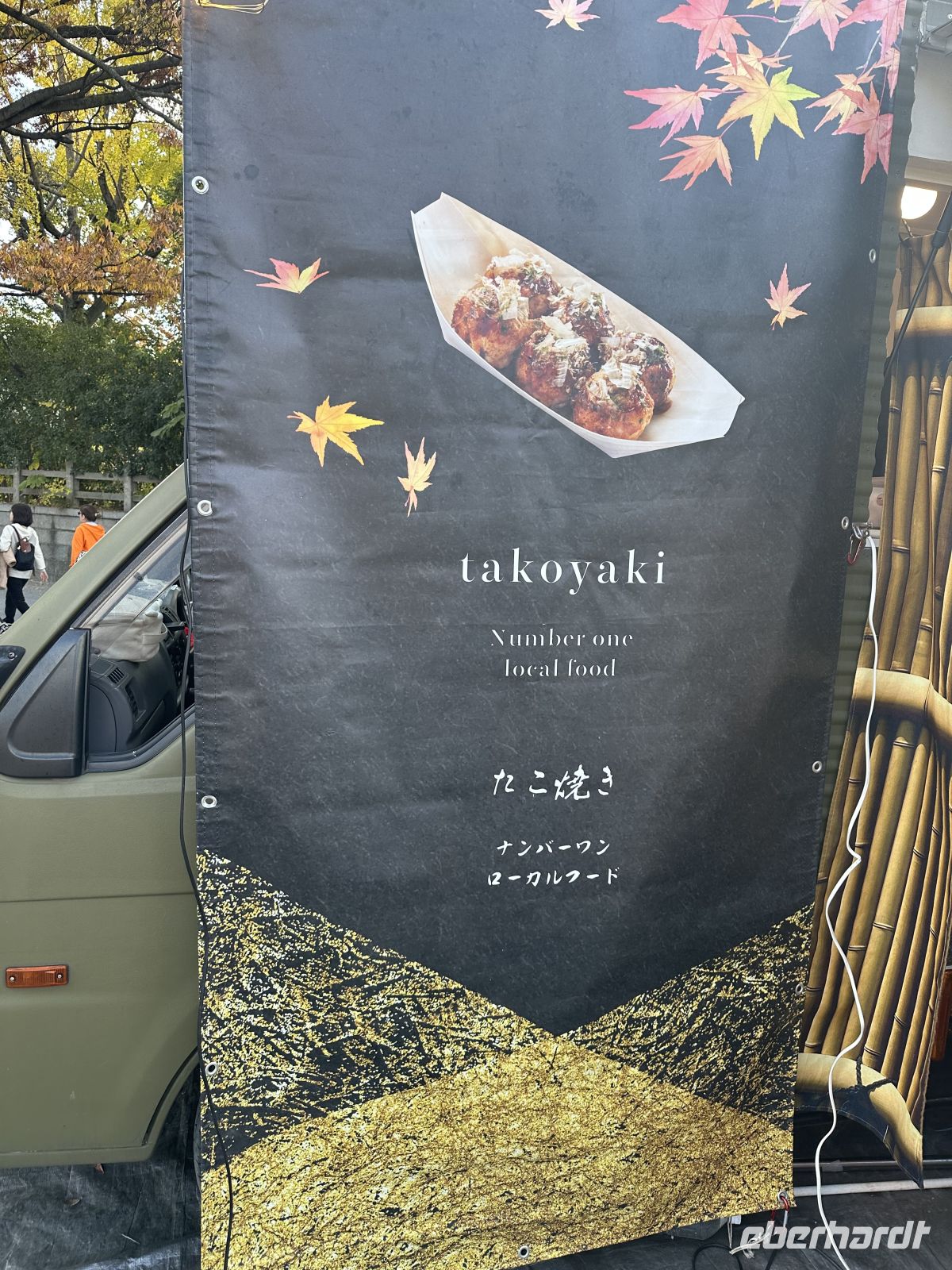 Unser nächstes Ziel ist die Burg Osaka. Vom Parkplatz müssen wir etwa 800 Meter bis zum Eingang laufen. Wir kommen vorbei an den trutzigen Burgmauern und können uns weiterhin an der fantastischen Laubfärbung der Bäume ergötzen. Der Besuch der Burg Osaka ist eine Reise in die Ära der Samurai und des mächtigen Feldherrn Toyotomi Hideyoshi, der die Burg im späten 16. Jahrhundert erbauen ließ. Die heutige Anlage ist eine beliebte Kombination aus historischer Architektur, einem modernen Museum und einem weitläufigen Park. Wie bereits erwähnt gelangen wir zur Burg durch einen riesigen Park, der eine grüne Oase mitten in der Stadt bildet. Die beeindruckendsten Merkmale sind die tiefen Wassergräben und die gigantischen Steinmauern. Am Octopus Stone am Sakuramon-Tor, ist einer der größten Steinblöcke, die jemals für eine japanische Burg verwendet wurden, zu sehen. Wir passieren mehrere große Tore, wie das Ōte-mon, und sehen erhaltene Wachtürme, die als wichtige Kulturgüter gelten. Der Hauptturm ist die zentrale Attraktion und das Wahrzeichen Osakas. Er wurde 1931 als äußerliche Rekonstruktion wieder aufgebaut und beherbergt heute ein modernes Museum. Bis zur 5. Etage können wir sogar einen Aufzug benutzen, abwärts muss man allerdings alles zu Fuß gehen. Auch, wer die Aussicht in der 8. Etage bewundern will, muss die Treppe nehmen. Das Innere des Museums (ab 5. Etage abwärts) ist modern ausgestattet. Die Ausstellungen zeigen die reiche Geschichte der Burg, die Rolle von Toyotomi Hideyoshi und die berühmten Sommerschlachten von Osaka anhand von Artefakten, Dioramen und Modellen. Ganz unten gibt es eine Filmvorführung, einige Gäste, die nicht gar so gut zu Fuß sind, bestätigen, dass es sich lohnt, den Film anzuschauen. Auf dem Weg zurück gibt es ein paar Imbiss-Stände, hier kann man lokale Spezialitäten kaufen und probieren, wie zum Beispiel Takoyaki.