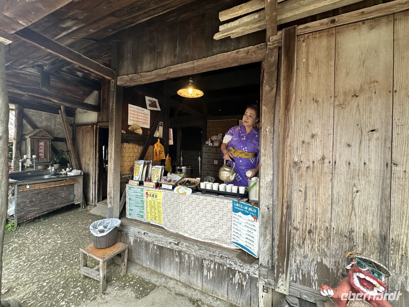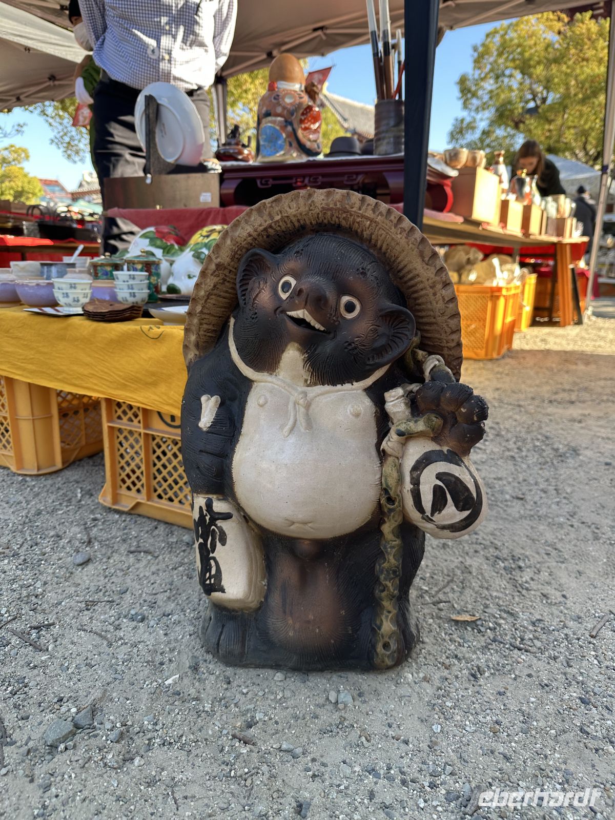 Am 21. und 22. eines jeden Monats findet auf dem Tempelgelände ein großer, beliebter Flohmarkt statt, der den Tempel mit zusätzlichem Leben füllt. Wir haben genügend Zeit, hier von Stand zu Stand zu schlendern und zu erleben, was auf einem japanischen Flohmarkt angeboten wird.