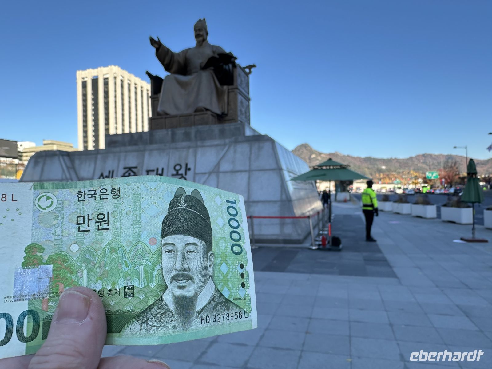 Lange haben wir darauf gewartet und heute geht es endlich los. Gegen Mittag trifft sich unsere Eberhardt Reisegruppe in Frankfurt. Pünktlich startet die Maschine der Lufthansa mit uns an Bord Richtung Seoul. Nach einem Abendessen, ein paar Filmen im Bordfernsehen, einem kleinen Nickerchen und einem Frühstück an Bord erreichen wir Südkorea.