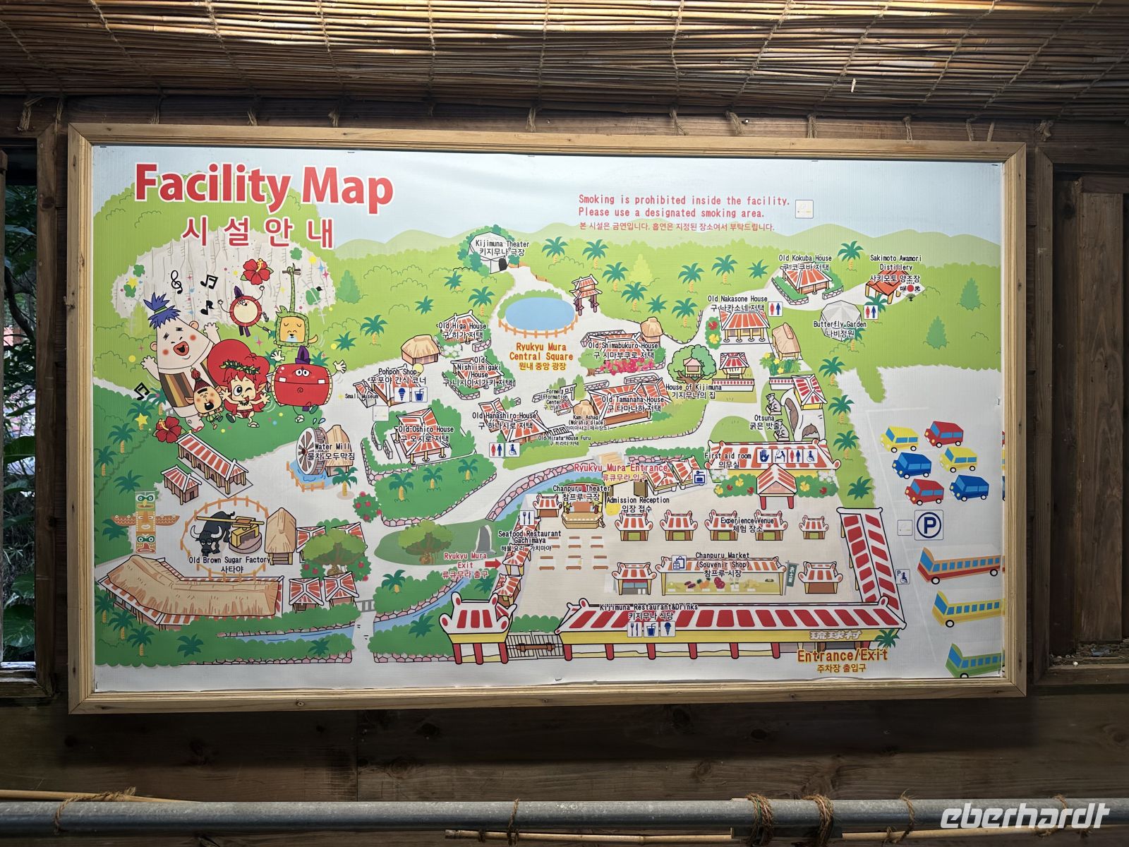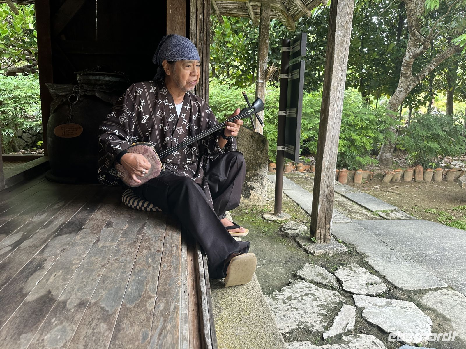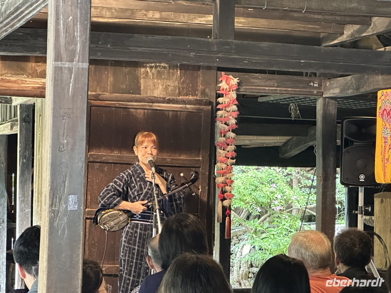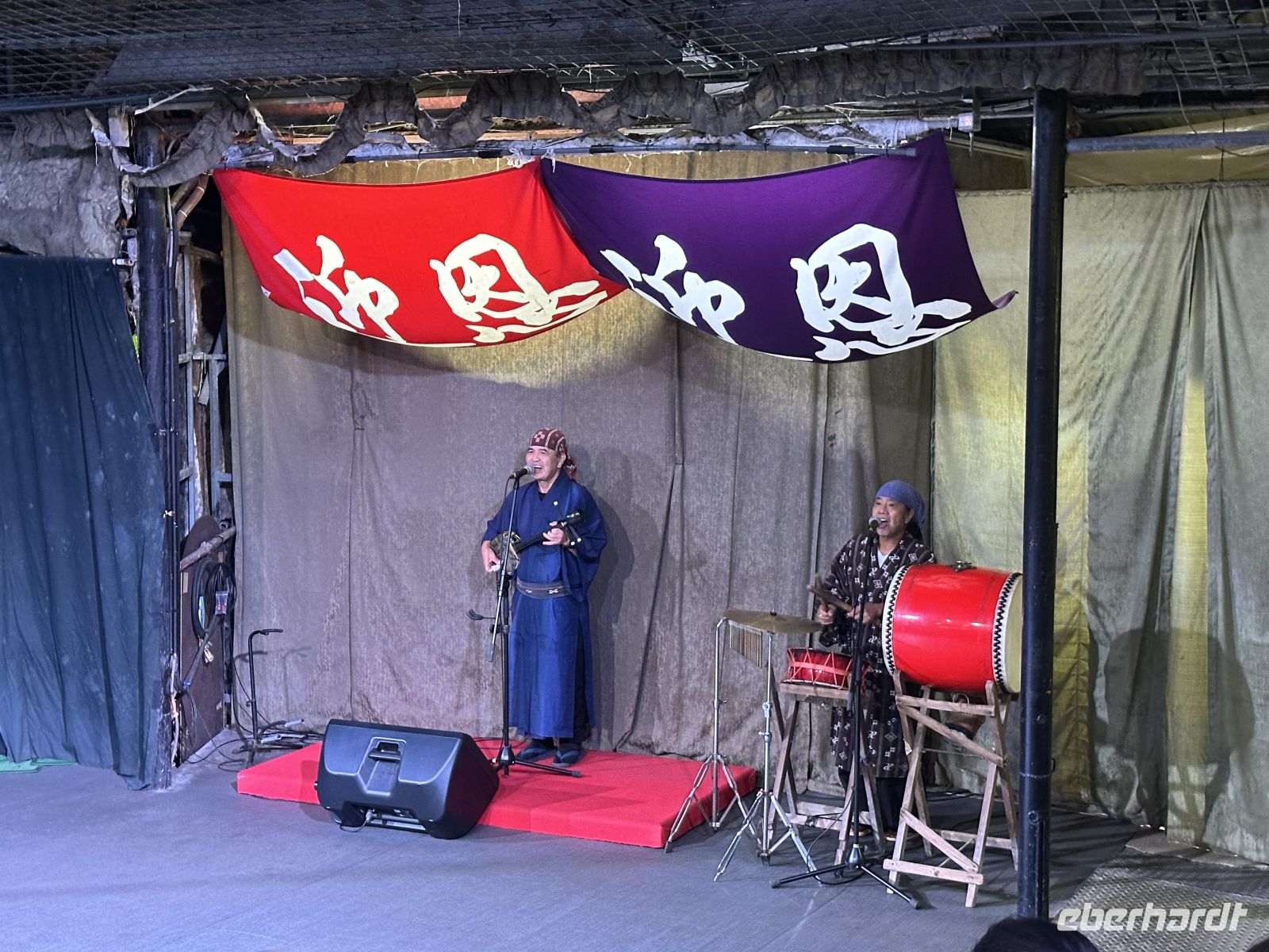 Unser nächstes Ziel ist das Ryukyu Folk Village, ein Freilichtmuseum und ein Kultur-Themenpark. Leider muss man sagen, dass dieses Museums-Dorf seine besten Zeiten scheinbar hinter sich hat. Die schönen Minka-Häuser, die einst in belebten Dörfern standen und von dort hierher versetzt wurden, stehen zum großen Teil leer. In einem ist ein Webstuhl zu sehen, in einem anderen wird gesunder grüner Tee angeboten. Auch Sänger und Musiker sind in manchen Häusern aktiv. Der Höhepunkt aber ist die Trommel- und Tanzaufführung im Theater. Hier erleben wir eine wunderbare Präsentation der okinawanischen Volkskunst. Das zentrale Element der Darbietung ist der Eisa-Tanz und der Ryukyu-Tanz. Der Eisa ist der bekannteste Trommel- und Tanzstil Okinawas und war ursprünglich ein ritueller Tanz, der während des buddhistischen Bon-Festes aufgeführt wurde, um die Geister der Ahnen zu ehren und zu verabschieden. Das Herzstück des Eisa sind die Trommeln. Die Künstler schlagen sie mit großer Wucht und wir merken, dass sie mit ganzem Herzen dabei sind. Zwei Frauen treten als Tänzerinnen auf. Sie tragen wunderschöne Kimonos und bewegen sich anmutig.