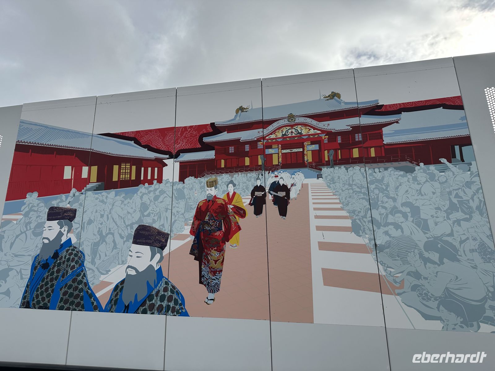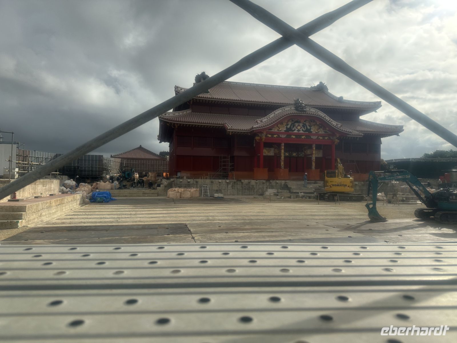 Unser Ziel ist die Burg Shuri, ein ehemaliger Königspalast des Ryukyu-Königreiches und UNESCO Welterbe. 2019 hat es hier (mal wieder) gebrannt und unter anderem ist die Haupthalle komplett zerstört worden. So kommt es, dass wir ein beeindruckendes Wiederaufbauprojekt besichtigen können.