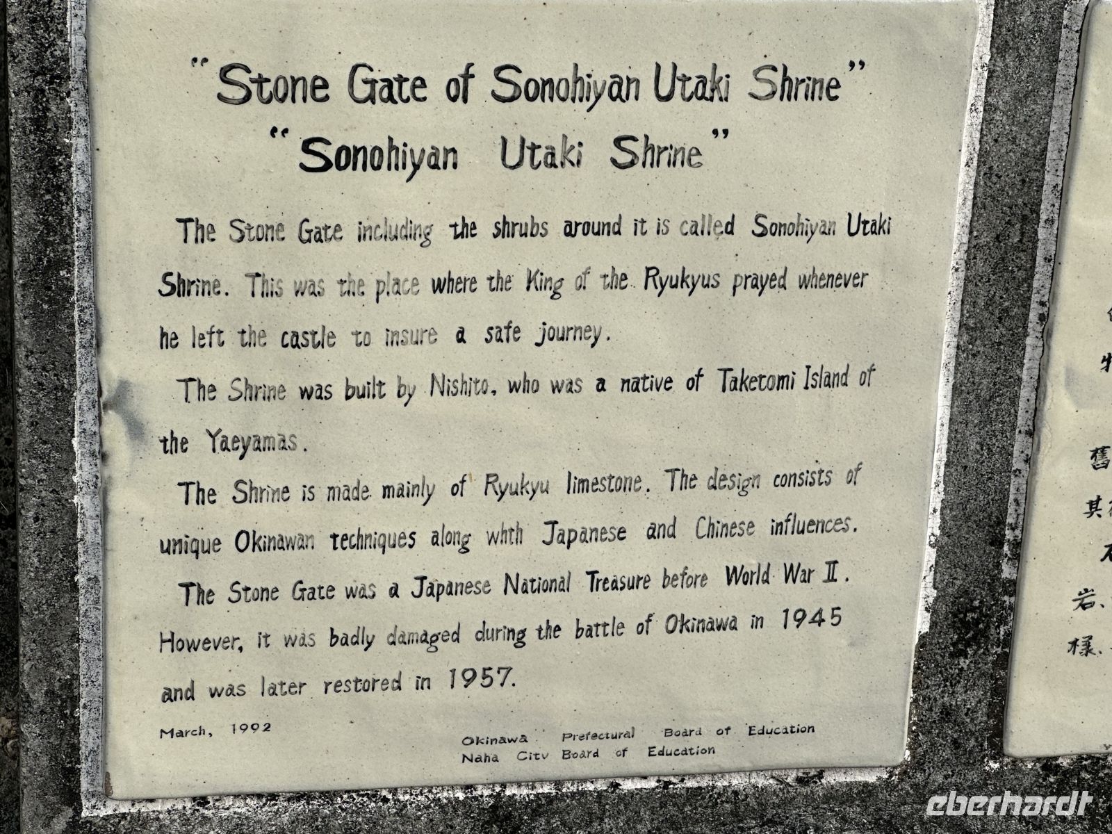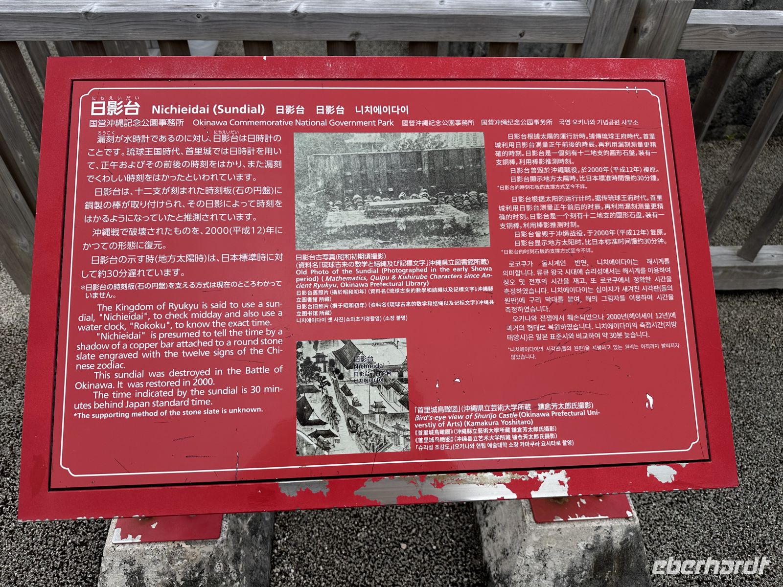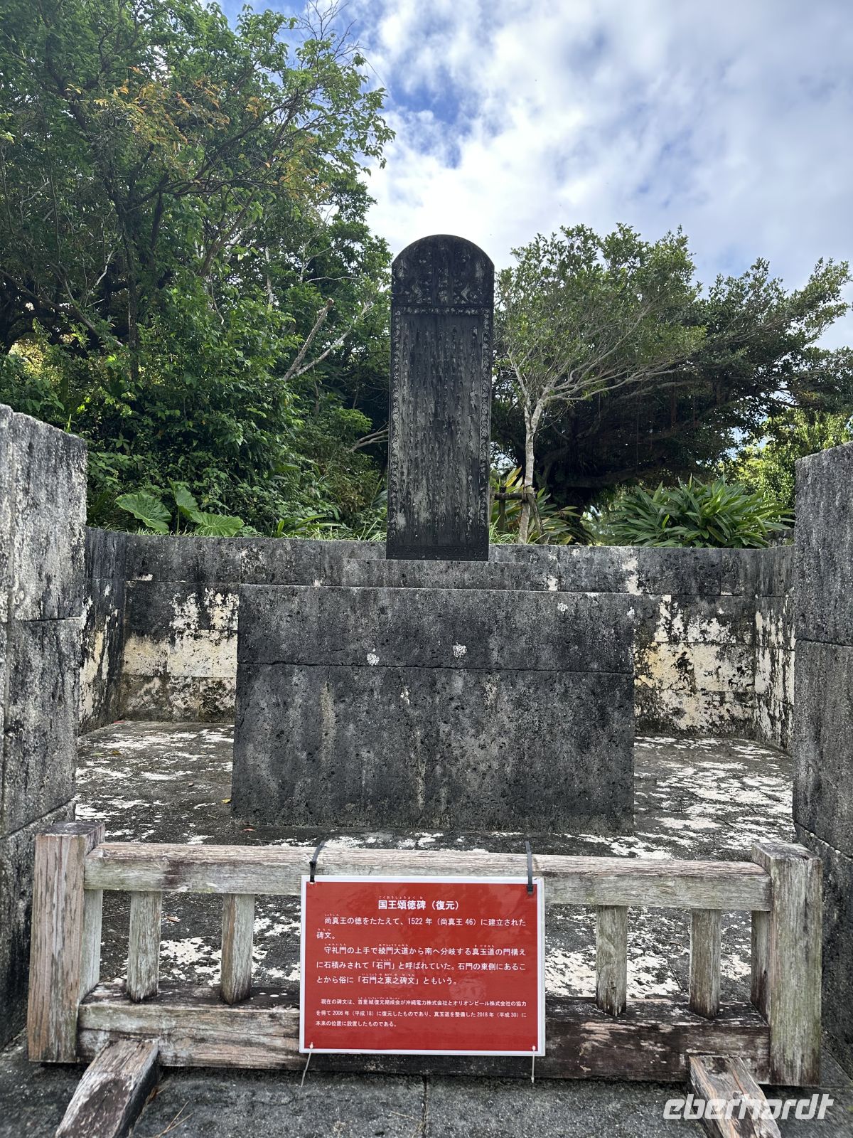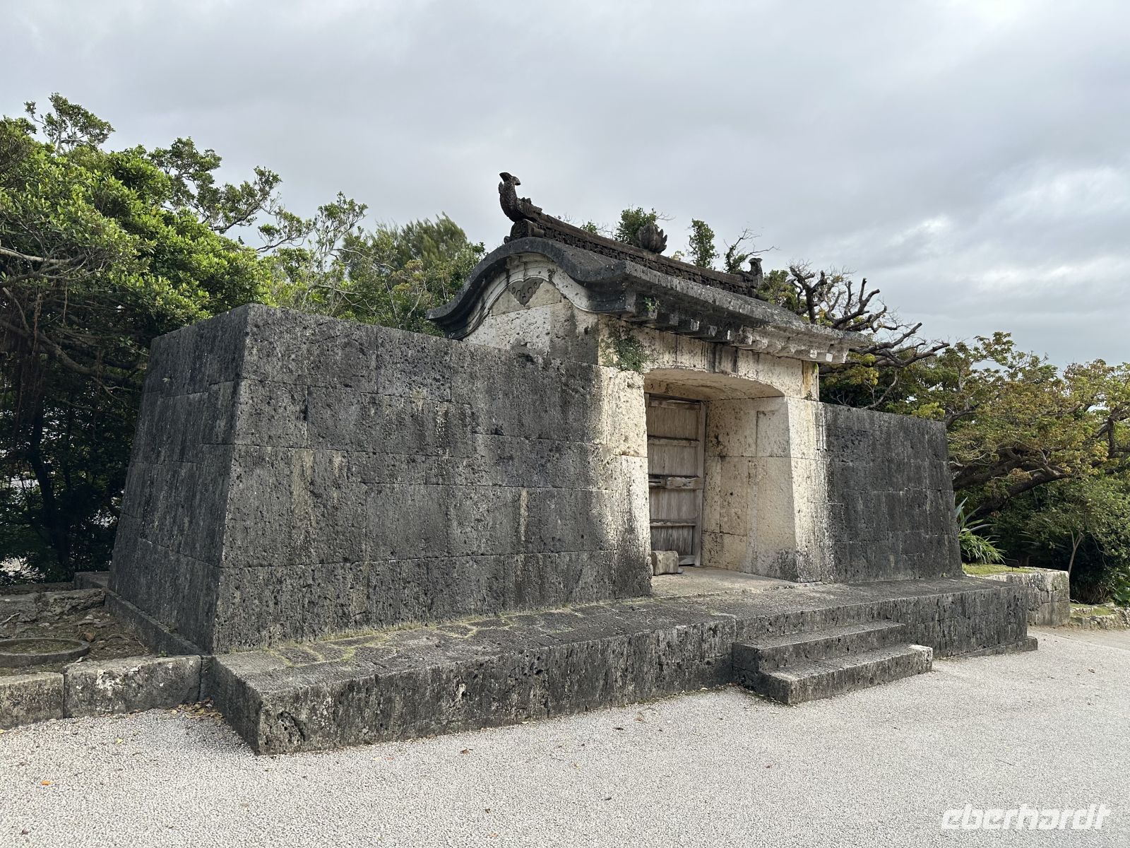 DasShurei-mon ist das berühmte, sieben Meter hohe Eingangstor mit einem leuchtend roten Ziegeldach. Es folgt das Kankai-mon, das erste Haupttor des Burginneren. Die weitläufigen Ringmauern der Burg sind vollständig erhalten und begehbar. Von hier aus haben wir einen spektakulären Ausblick auf Naha und das Meer.