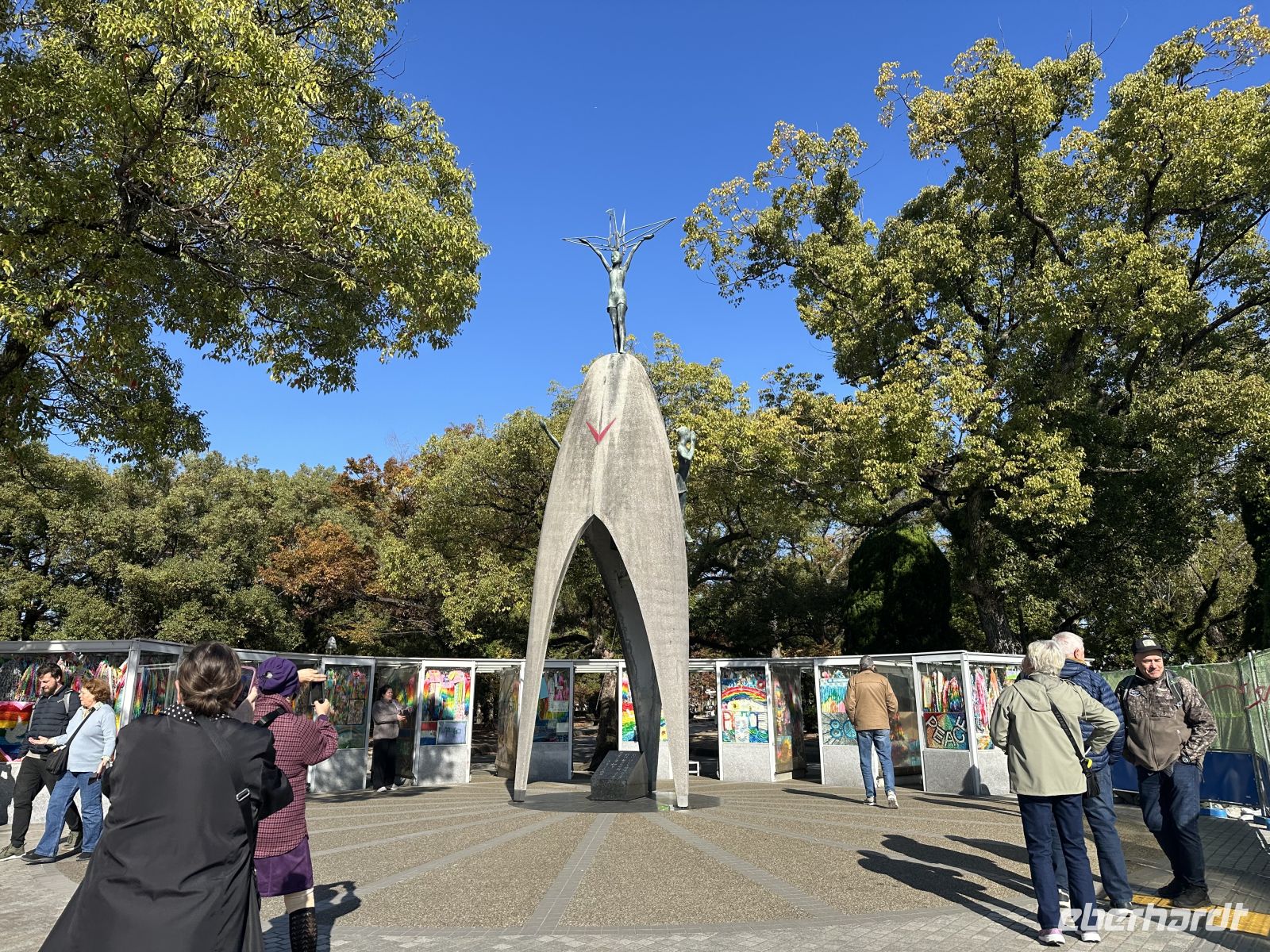 Der Peace Memorial Park liegt zentral, genau dort, wo sich einst das politische und wirtschaftliche Zentrum der Stadt befand und wo die Bombe explodierte. Wir legen einen Stopp an der Atombombenkuppel ein. Diese Ruine des ehemaligen Gebäudes der Industrie- und Handelskammer ist eines der wenigen Bauwerke, das in der Nähe des Hypozentrums die Zerstörung überstanden hat. Sie wurde als UNESCO-Weltkulturerbe erhalten und steht als eindringliches Mahnmal für die verheerende Zerstörungskraft von Atomwaffen. Weiterhin besuchen wir das Kenotaph für die Atombombenopfer, ein steinernes Denkmal, das als Gedenkstätte für alle bekannten Opfer der Bombe dient. In einer Steinkammer werden die Namen der Verstorbenen aufbewahrt. Die Inschrift lautet: „Lasst alle Seelen hier in Frieden ruhen; denn das Böse wird sich nicht wiederholen.“ Wir kommen vorbei an der Flamme des Friedens): Die Flamme brennt, seit sie 1964 entzündet wurde. Sie soll erst erlöschen, wenn die letzte Atomwaffe von der Erde verschwunden ist. Besonders erschütternd ist das Kinder-Friedensdenkmal. Dieses Denkmal erinnert an Sadako Sasaki und alle Kinder, die an den Folgen der Bombe starben. Sadako versuchte, 1000 Papierkraniche zu falten, um gesund zu werden, da die japanische Legende besagt, dass demjenigen ein Wunsch erfüllt wird, der tausend Kraniche faltet. Rund um das Denkmal stehen Schaukästen, gefüllt mit Tausenden von bunten Papierkranichen aus aller Welt, die als Symbol des Friedens gefaltet wurden. Es folgt der Besuch des Friedensgedenkmuseums. Das Museum ist der wohl emotionalste und wichtigste Teil des Besuchs. Es ist in zwei Hauptbereiche unterteilt und bietet eine detaillierte und erschütternde Darstellung der Ereignisse vom 6. August 1945 und ihrer Folgen. Anhand von persönlichen Gegenständen der Opfer, Fotos, Schautafeln und Modellen wird die massive Zerstörung der Stadt, die körperlichen und seelischen Leiden der Überlebenden und die erschreckenden Nachwirkungen der Strahlung dokumentiert. Die Ausstellung ist nicht nur eine Darstellung der Vergangenheit, sondern auch ein dringender Appell an die Menschheit für die Abschaffung aller Atomwaffen und die Sicherung des Weltfriedens. Es ist ein Ort der Betroffenheit, des Schocks und der tiefen Reflexion.