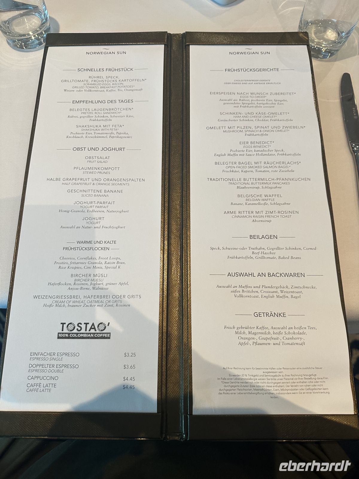 Der Tag lädt dazu ein, die Norwegian Sun näher kennenzulernen. Wir schlendern durch den Fotoshop, über das Pooldeck und nehmen den einen oder anderen Drink in einer der vielen Bars. Zum Mittagessen und zum Abendessen kehren wir ins Restaurant Seven Seas ein. Der Tag lädt dazu ein, die Norwegian Sun näher kennenzulernen. Wir schlendern durch den Fotoshop, über das Pooldeck und nehmen den einen oder anderen Drink in einer der vielen Bars. Zum Mittagessen und zum Abendessen kehren wir ins Restaurant Seven Seas ein.