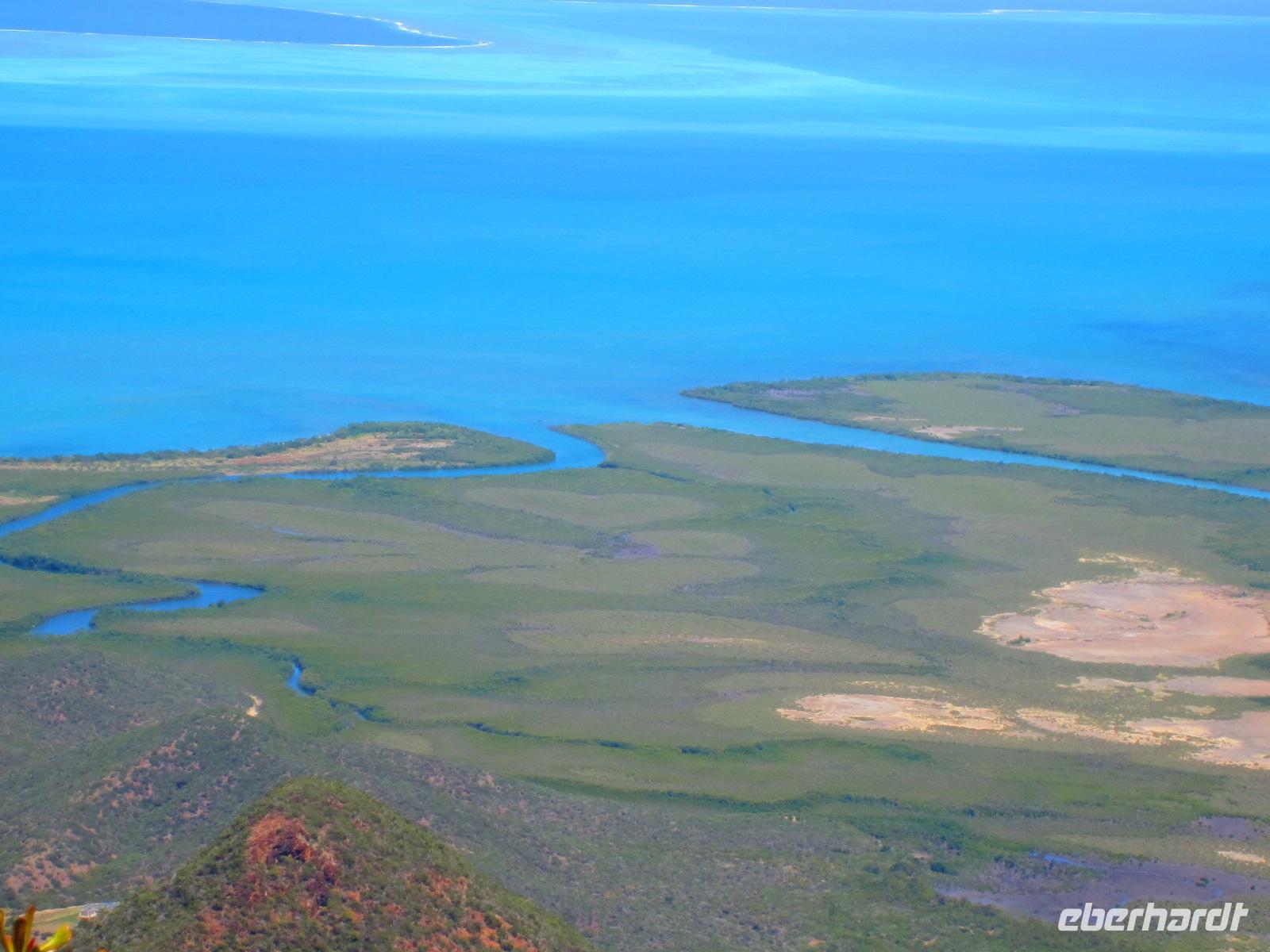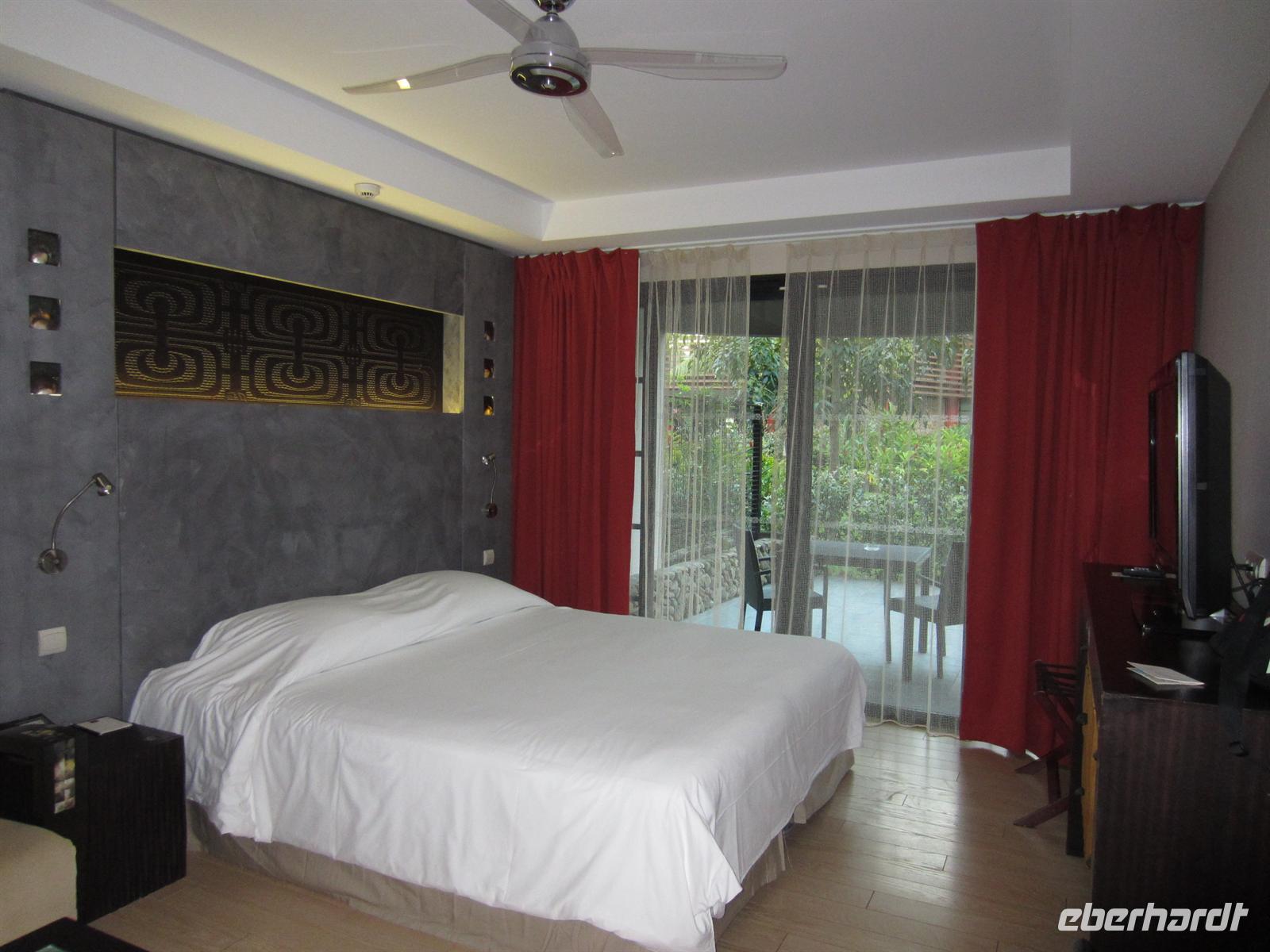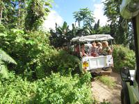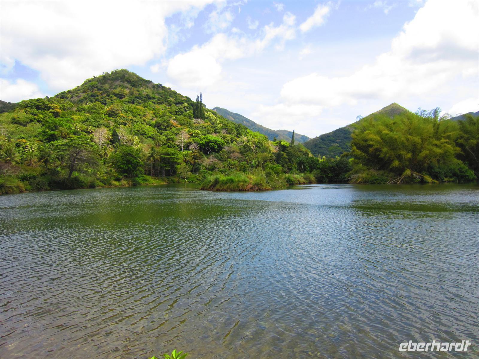 Nach dem Frühstück stand uns ein kleines Abendteuer bevor. Mit einem mit Allradantrieb ausgestatteten Geländewagen begaben wir uns im kleinen Ort Voh auf einen Aussichtspunkt. Bei der ruckeligen Fahrt hatten wir viel zu lachen und bereits schöne Ausblicke zu genießen, doch der Höhepunkt ergab sich auf dem Gipfel des Berges. Wir schauten über die gebirgige Landschaft, das himmelblaue Meer, die Mangrovenwälder, eine große Shrimpszuchtanlage und auf das Herz von Voh, eine aus Mangroven geformte Naturschönheit. Bei der Fahrt quer über die Insel änderte sich das Landschaftsbild dramatisch. Aus trockener Steppe blühte nur tropischer Wald mit hohen Bäumen, Farnen und exotischen Pflanzen auf. In der gebirgigen Landschaft wirkte das grüne Blätterdach unendlich. In Poindimie bezogen wir am Abend unsere geräumigen Bungalows im Tieti Tera Beach Resort. Auf der Terasse konnten wir alle noch mal kurz verschnaufen, bevor es auch schon wieder zum Abendessen ging.