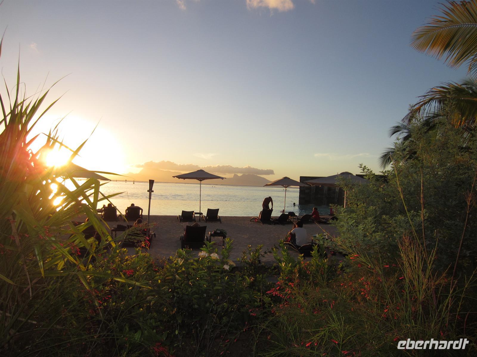 Der Vormittag stand uns noch freien Verfügung, sodass wir noch ein Bad im Pool nehmen konnten oder noch letzte Souvenirs im nahe gelegenen Ort erwerben konnten. Am Nachmittag ging es dann mit einem 15minütigen Flug zurück auf die Nachbarinsel Tahiti und für unsere letzte Übernachtung in französisch Polynesien noch einmal in das Manava Hotel.