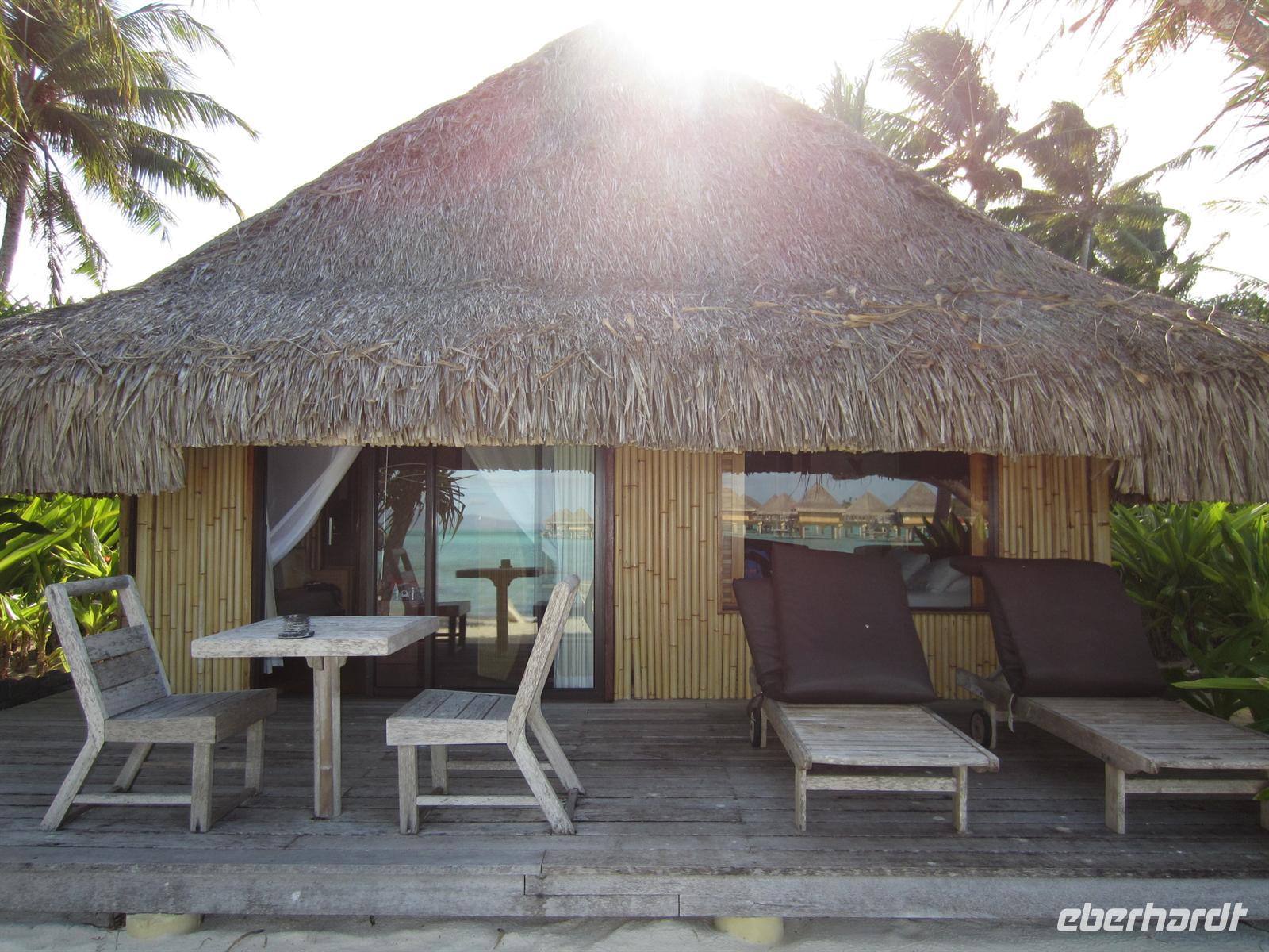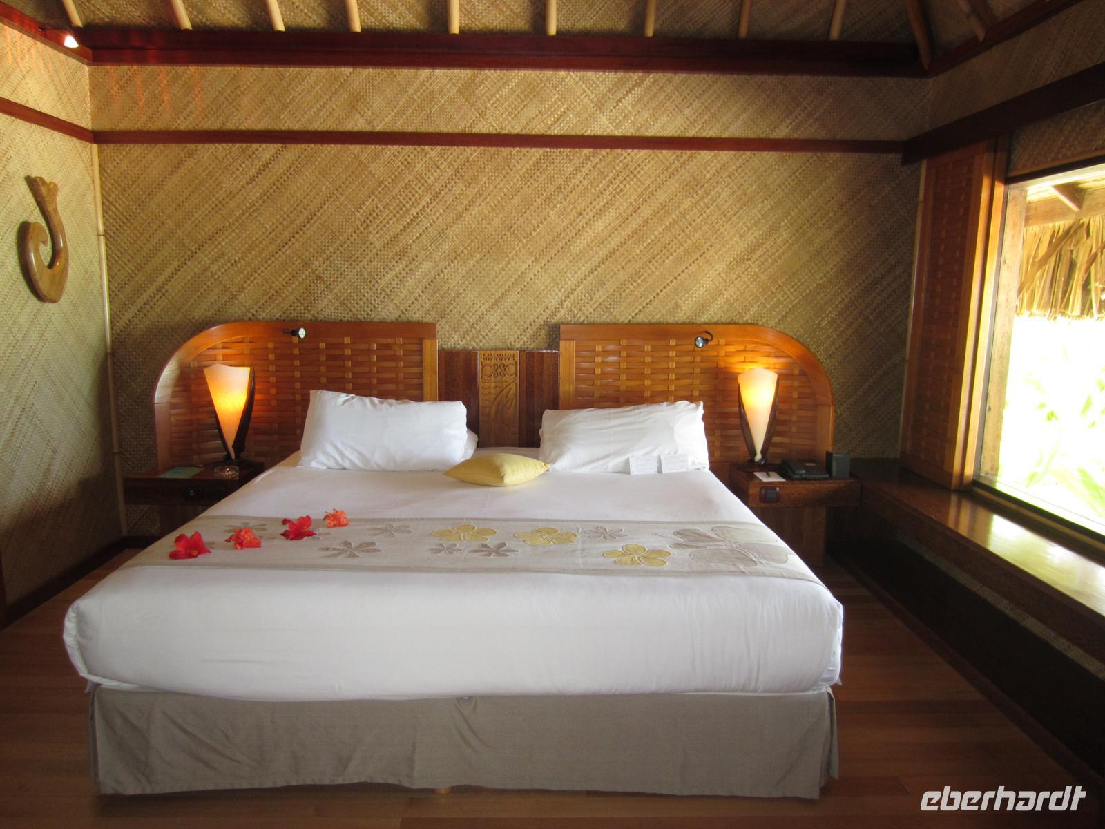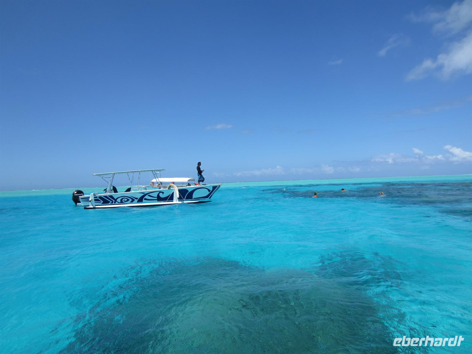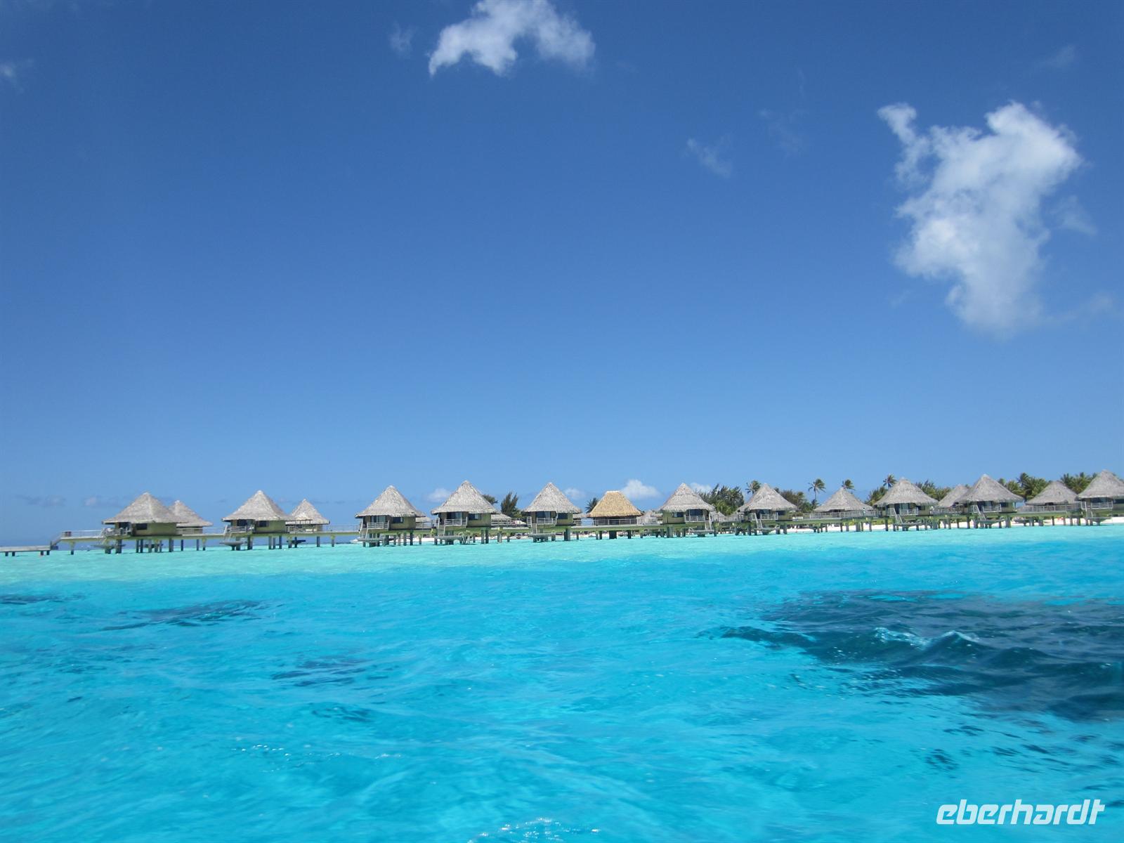 Endlich war es so weit. Wie die Kinder sich auf den Weihnachtsmann freuen, so freute sich unsere Gruppe auf ihre langersehnte Trauminsel Bora Bora. Und es wurde uns wahrlich nicht zu viel versprochen. Schon vom Flugzeug aus sahen wir die bildschöne Lagune, welche sich um die felsige Insel schlängelt. Die Blautöne schillerten und glitzerten im Sonnenlicht, wie in einem Bilderbuch. Am frühen Nachmittag bezogen wir unsere luxuriösen Bungalows und verbrachten den Tag mit sonnen, baden, am Strand liegen und ließen einfach nur die Seele baumeln.