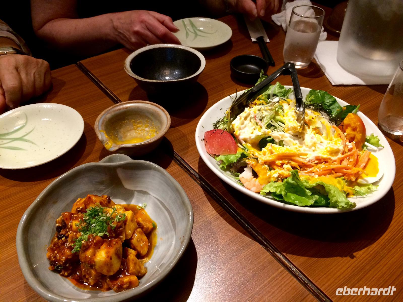Spannende Frage am Morgen: Lieber Amerikanisches oder Japanisches Frühstück? Zum allgemeinen Standard gehören Reis, Miso-Suppe, Taroschleim, eingelegtes Gemüse, Tofu und pochierte Eier. Im Frühstücksraum auf der 14. Etage des Hotels probieren wir alles durch, um uns für den Tag zu stärken.