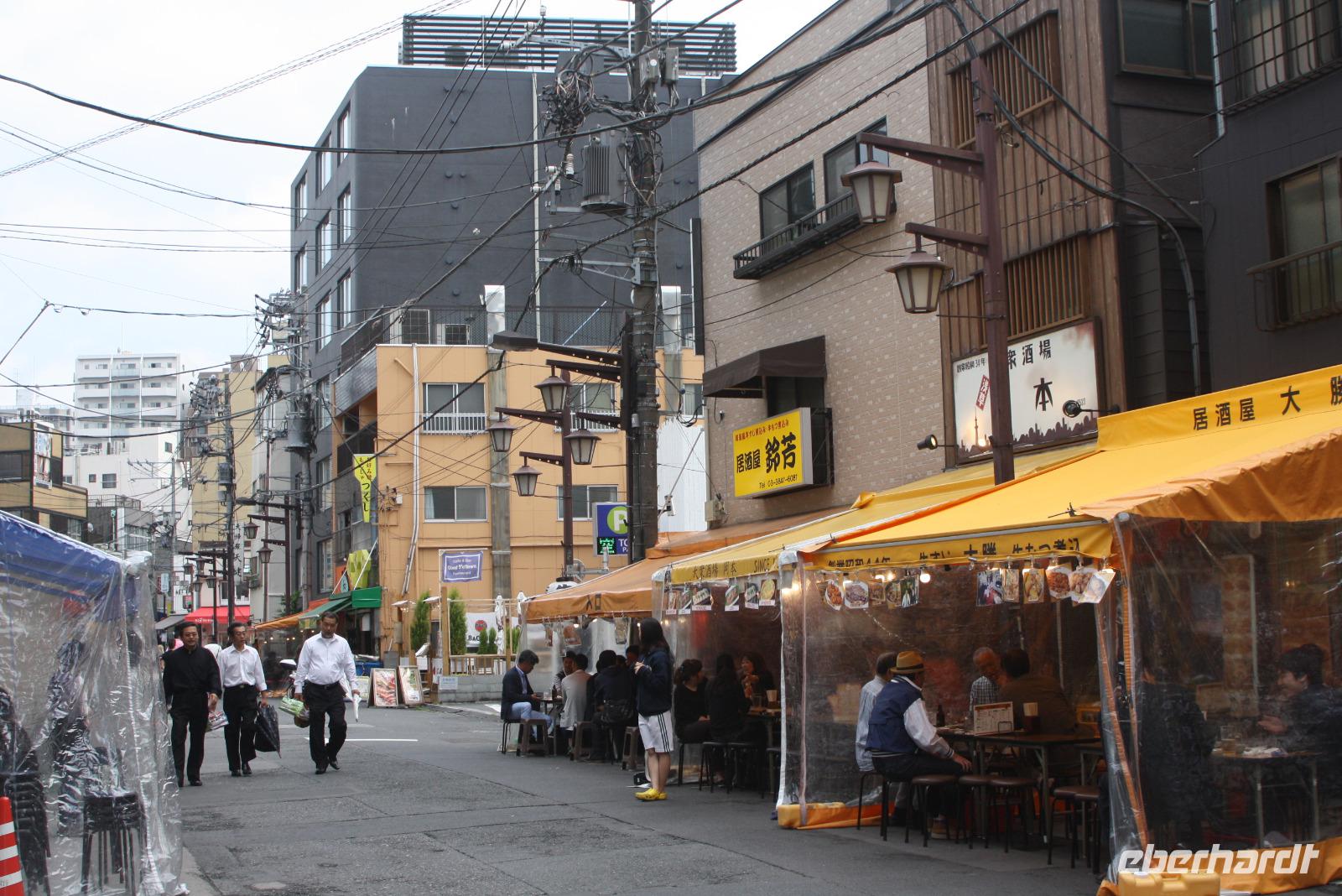 Am Abend setzen wir unsere kulinarische Reise fort im Stadtteil Shibuya, um das schrille Tokio und vor allem den ganz normalen Wahnsinn am Hachiko-Exit - in der Rush-Hour bis zu 10.000 (!!) Passanten während einer Ampelphase - zu erleben. Den besten Blick hat man auf dem Obergeschoss des Starbucks-Cafes. Auf dem Weg zu unserem Yakitori-Restaurant (Yakitori = gegrillte Spieße) im Untergeschoss passieren wir die Straße mit den meisten Leuchtreklamen. Alle Augen und Münder formen schon wieder ein O - Oh wow!