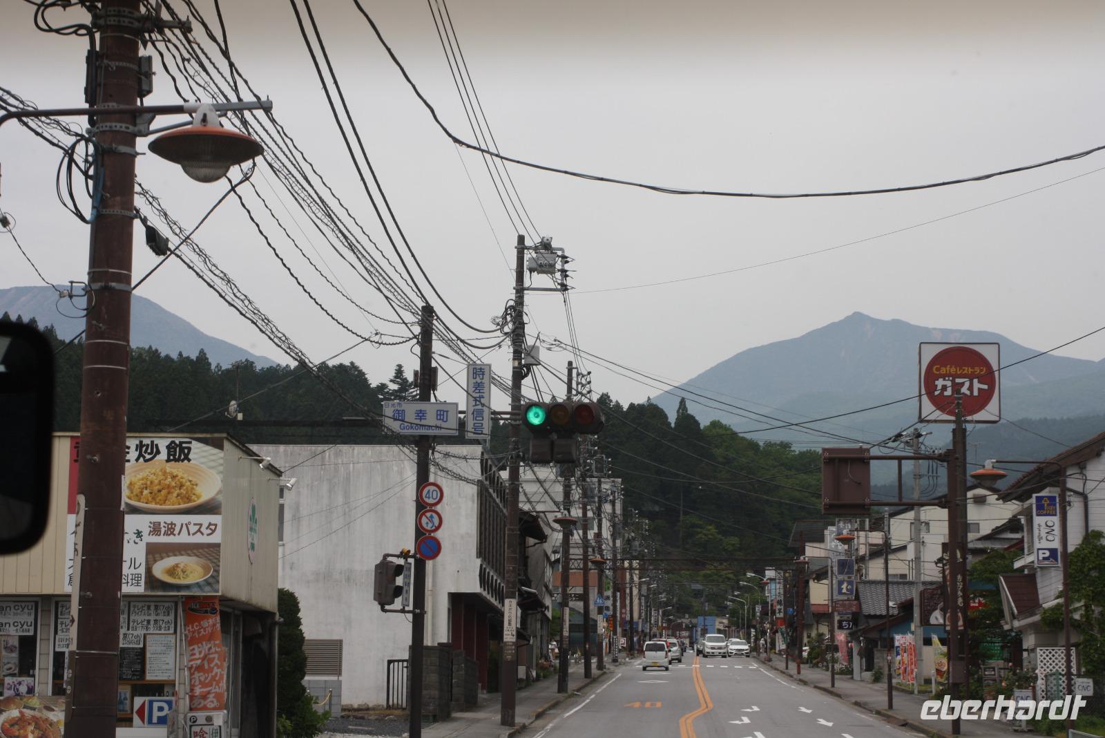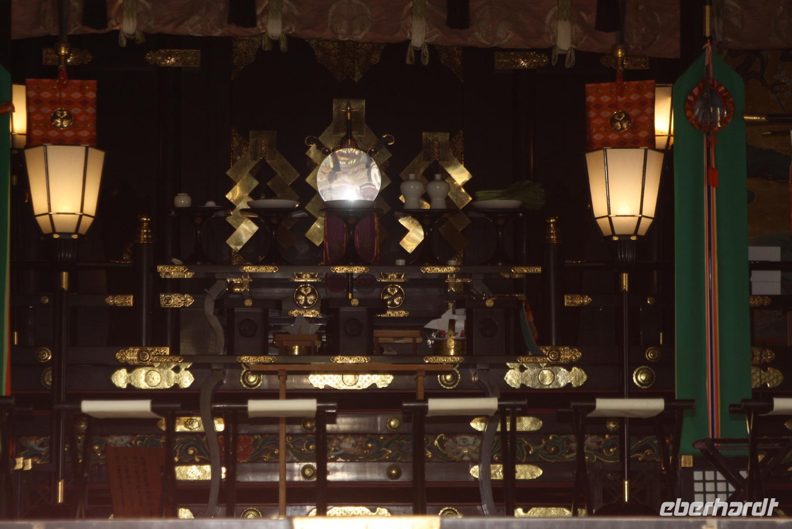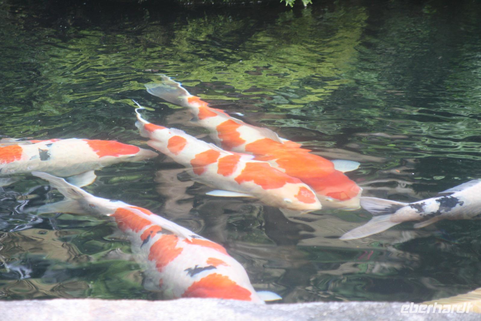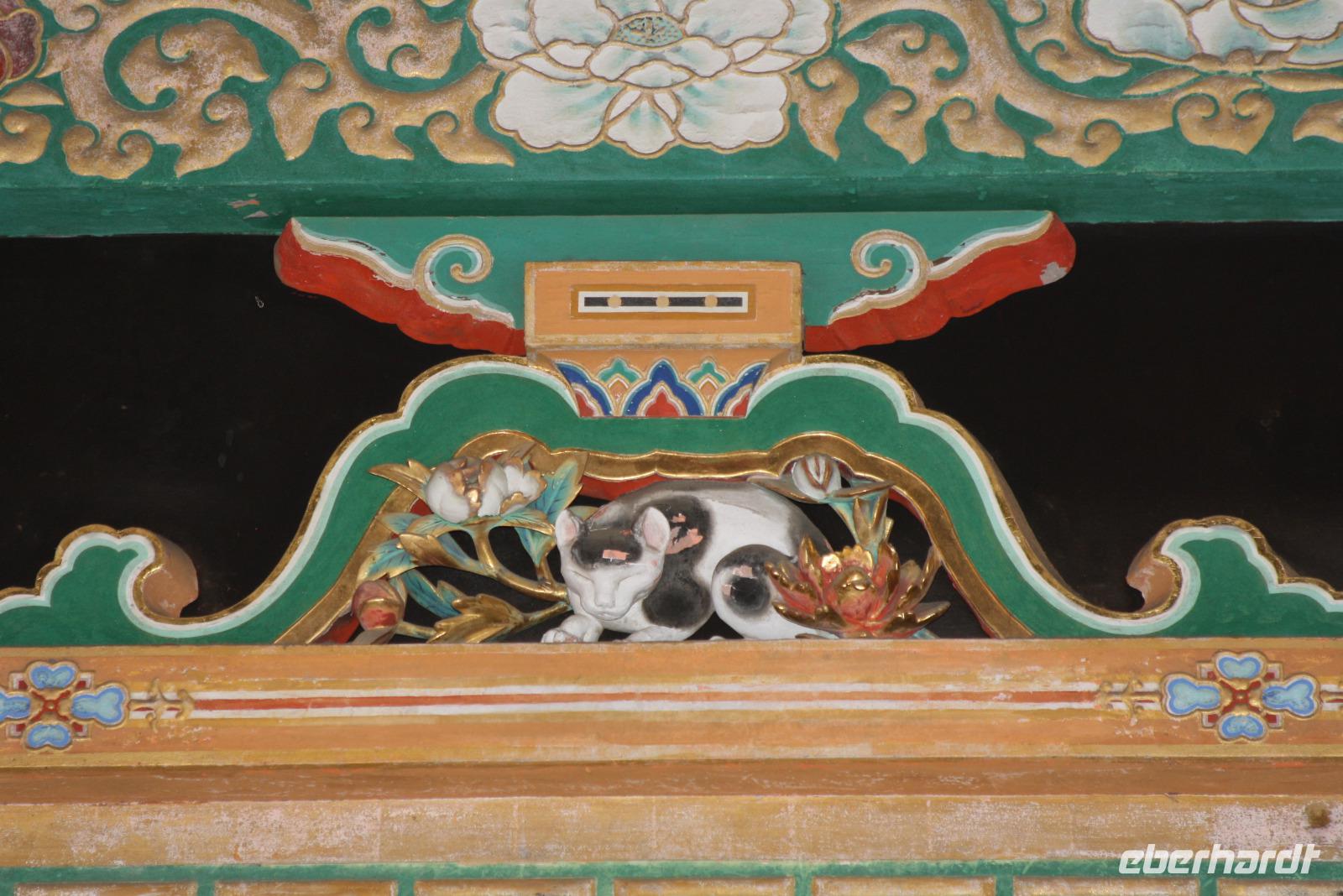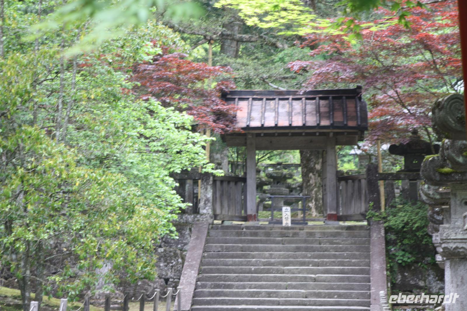 Entlang zahlreicher Serpentinen erreichen wir den Kirifuri-Wasserfall, einer von sechs Wasserfällen im Nikko-Nationalpark. Anschließend besichtigen wir im verschlafenen Nikko (es sind ja nur 100.000 Einwohner) das bedeutendste Heiligtum inmitten eines riesigen Zypressenwaldes, den Toshoga-Schrein, mit seinen 36 Bauten sowie dem Wahrzeichen der drei Affen, welche die Gebote repräsentieren: "Schaue nichts Böses, höre nichts Böses, sprich nichts Böses." Beeindruckt sind wir von der Genialität der Bauwerke: der Baustil der Ziehharmonika dient als natürliche Klimaanlage, die schönen Verzierungen aus Gold reflektieren Licht und verleihen den Räumen somit mehr Helligkeit. Wenn die Konditionen reichen, steigt man viele Stufen hoch zum Mausoleum wo der erster Shohun Shokogawa begraben wurde. Für die Japaner selbst ist dieser Schrein so etwas wie Neuschwanstein bzw. Sansoucci für die Deutschen.