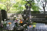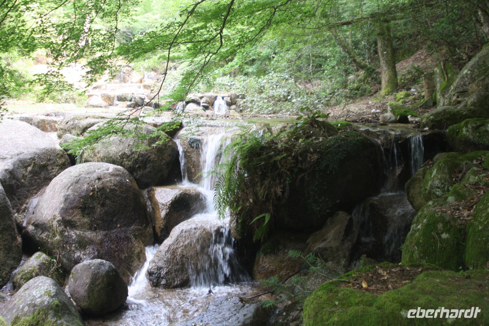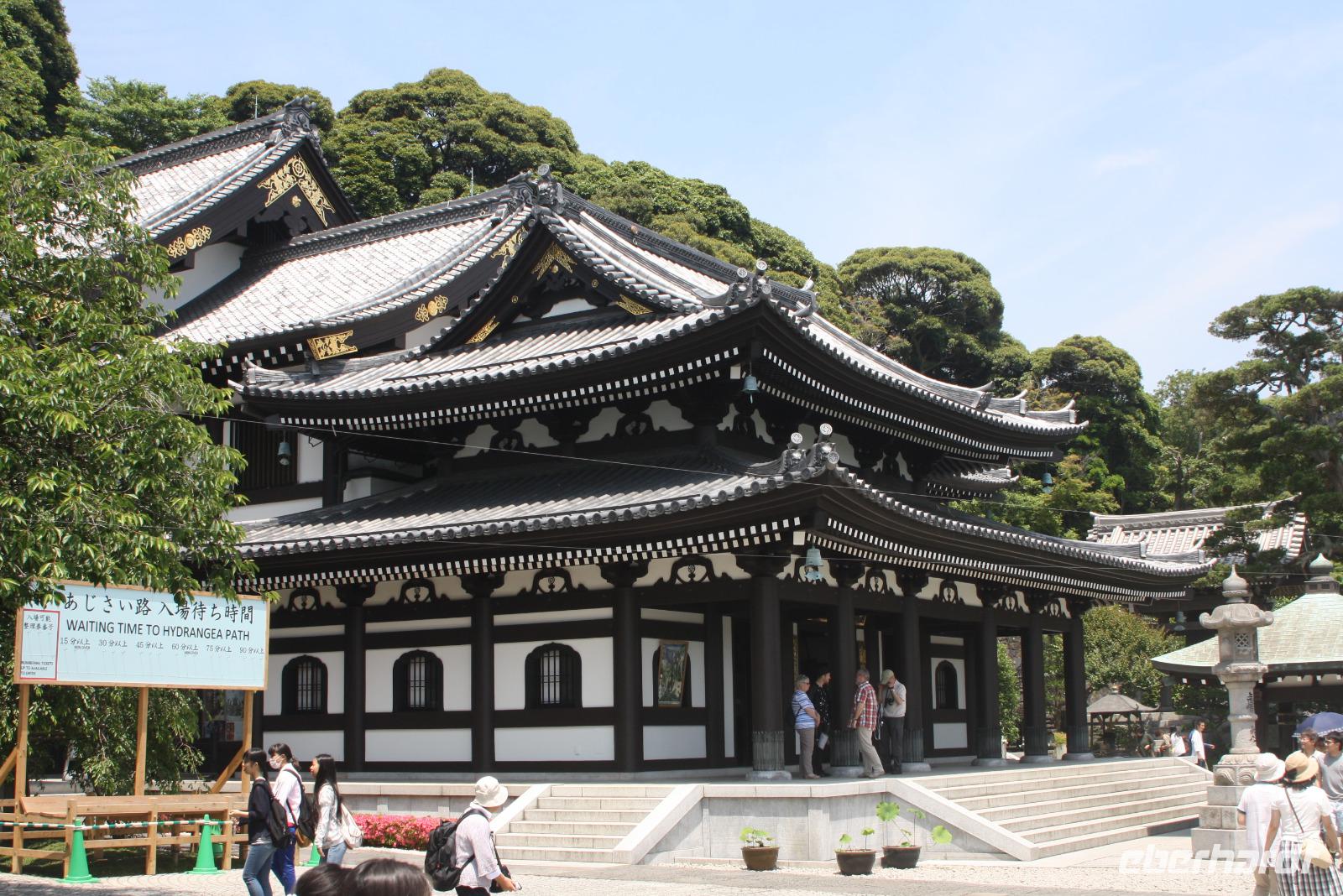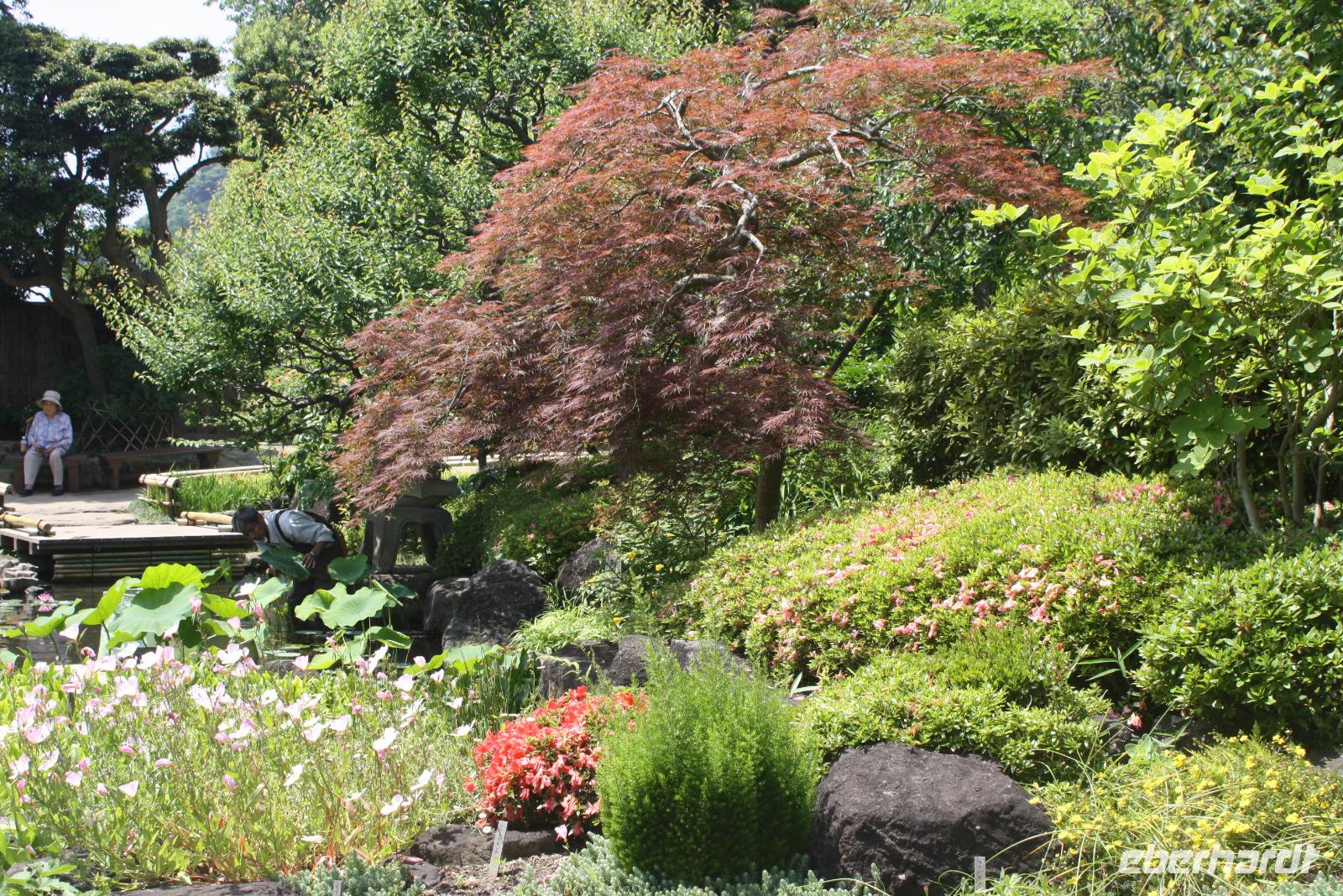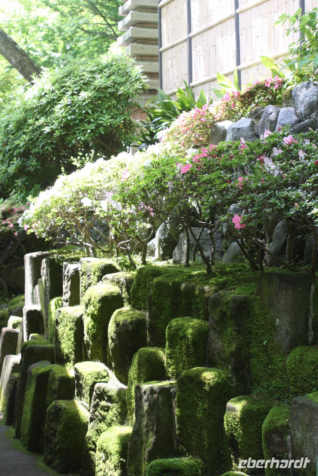 Nach wenigen Fußminuten gelangen wir zum Gartenbereich des Hase-dera Tempels. Gleich am Eingang des Tempels wächst ein Baum mit witzigem Namen: Der-Affe-Rutscht-Ab-Baum. Im Garten verteilt finden wir 12.000 Buddha Figuren für die verlorenen Kinderseelen. Sie besitzen ebenfalls ein drittes Auge, haben eine säuglingshafte Erscheinung und halten öfters den Pfirsich in der Hand, der für Lebenskraft steht. Mit Entsetzen hören wir, dass durchschnittlich 8 Abtreibungen pro Japanerin verzeichnet werden. Kein Wunder also, dass die Geburtenrate in Japan drastisch zurück geht und mit 1,2 Kindern pro Paar sogar unter der deutschen Geburtenrate liegt. Wir gießen Wasser über die Buddhaköpfe und hoffen damit, den heißen und schweren Weg der Kinder ins Jenseits zu kühlen/unterstützen.