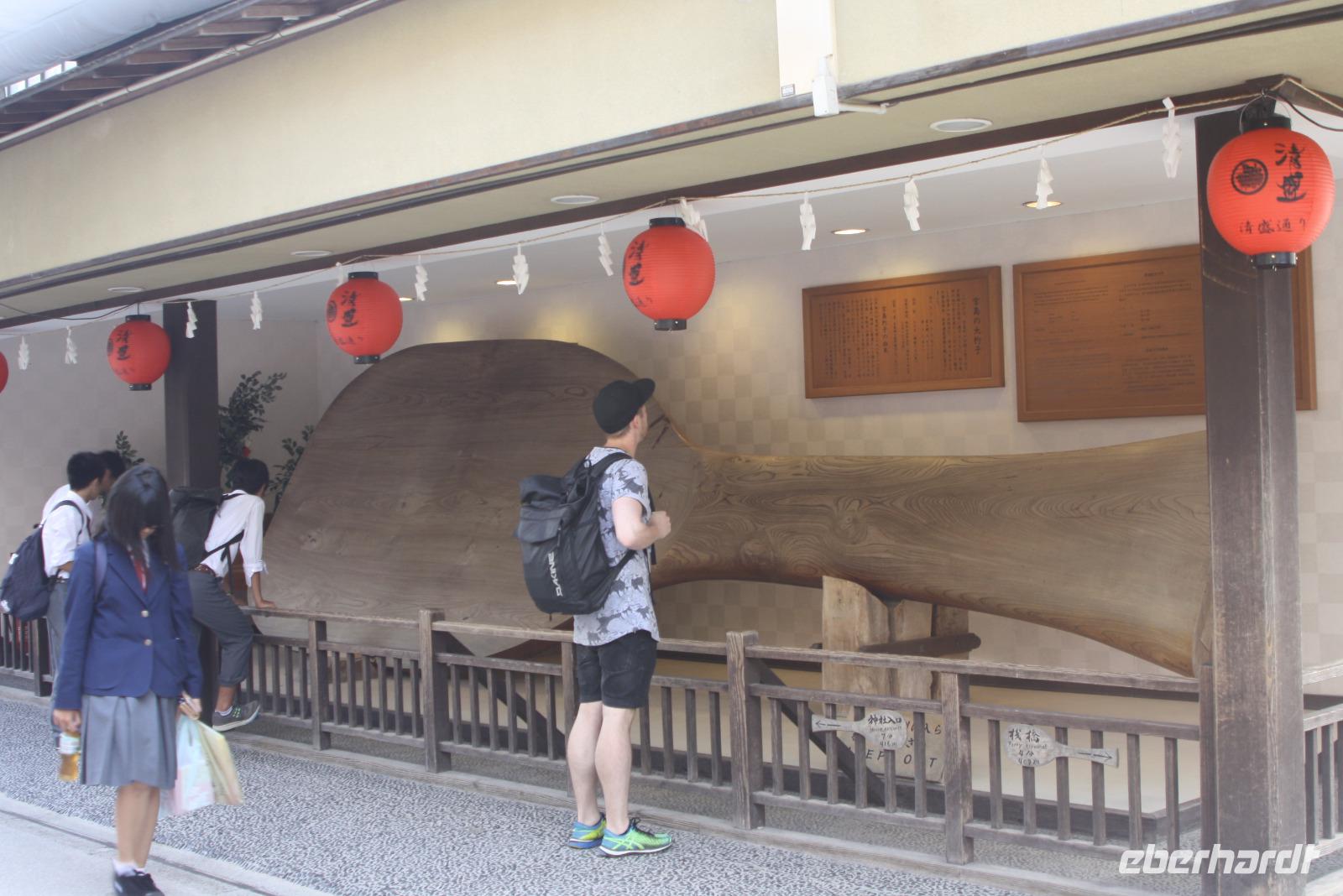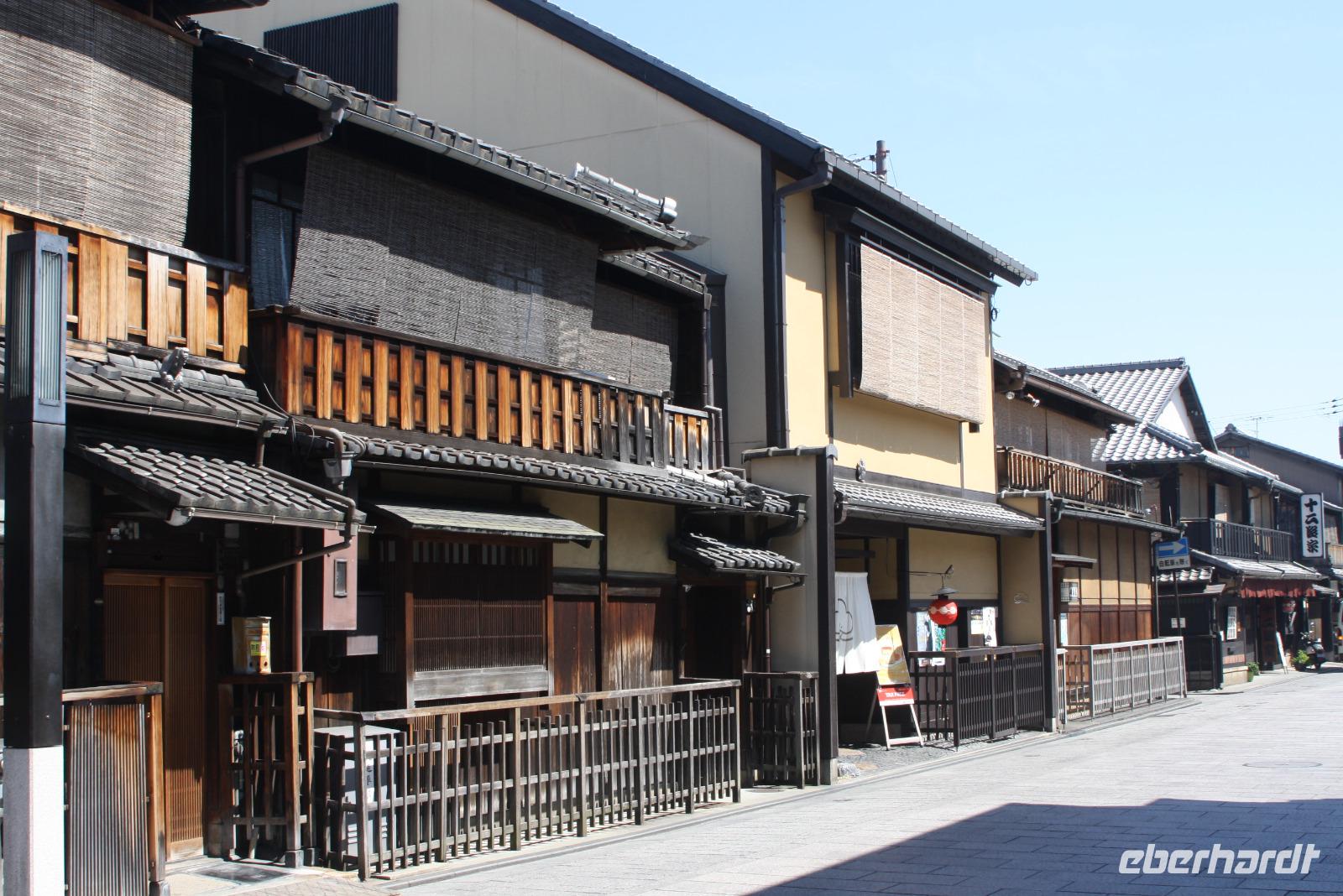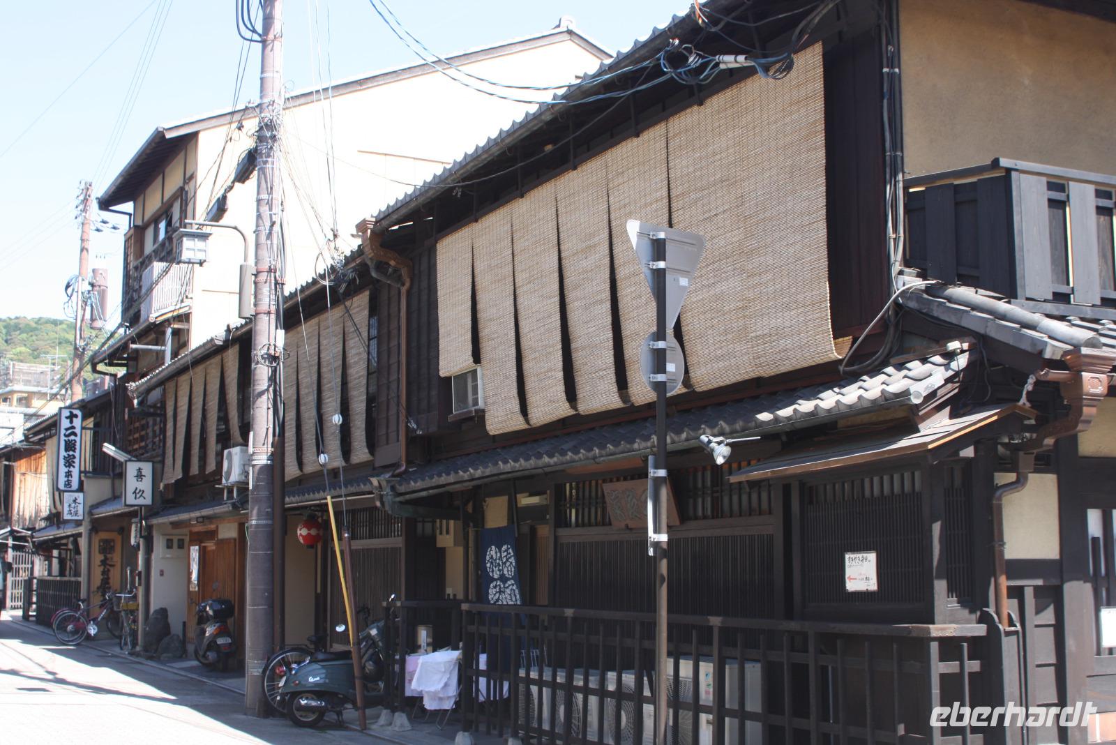 Mit dem Taxi werden wir ins Hotel oder in das enkmalgeschützte Altstadtviertel Gion geleitet. Die Altstadt aus Holz ist noch komplett erhalten, da in der Region nie Brandbomben abgeworfen wurden. Mit etwas Geduld und Glück erblicken wir sogar eine echte Geisha, und das bei Tageslicht.