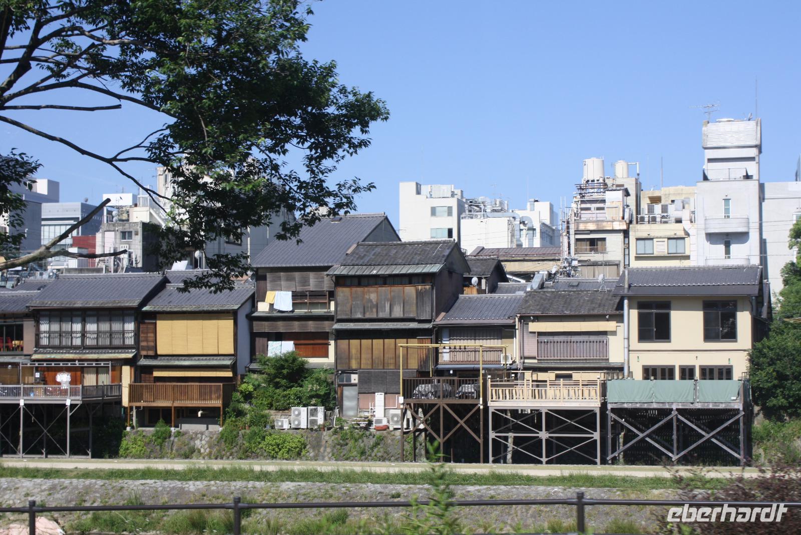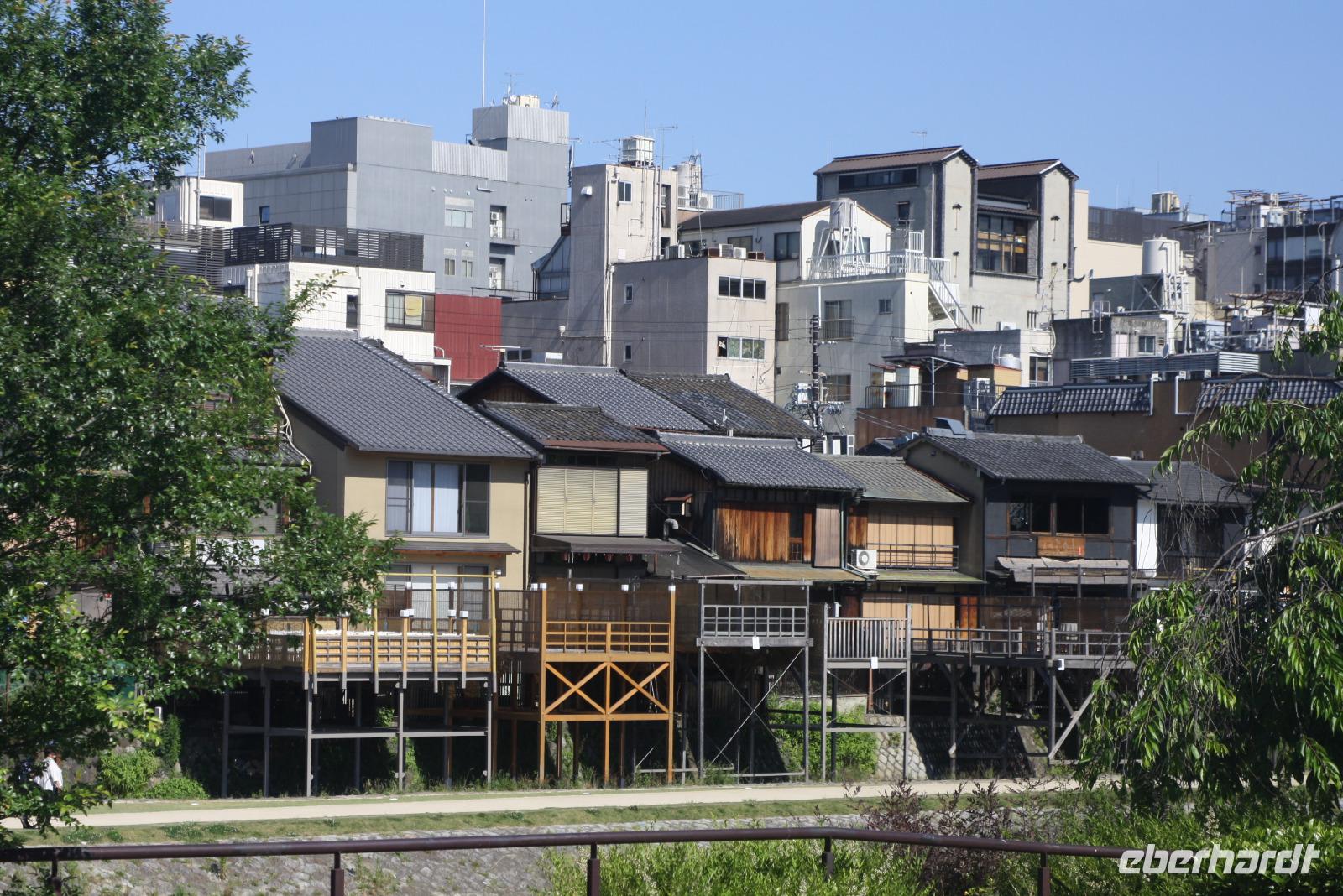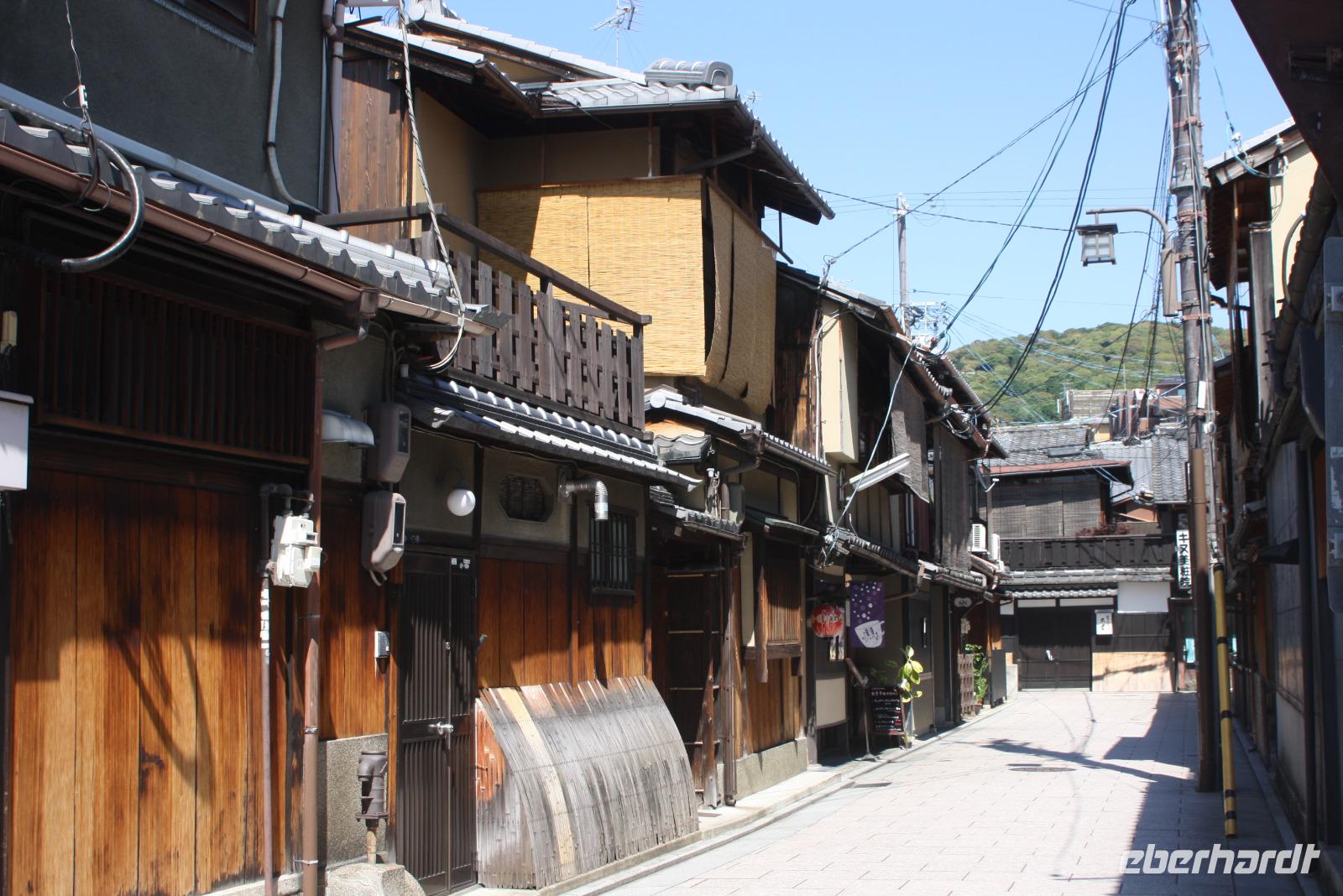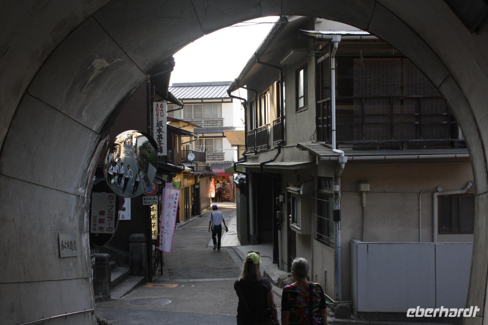 Mit dem Taxi werden wir ins Hotel oder in das enkmalgeschützte Altstadtviertel Gion geleitet. Die Altstadt aus Holz ist noch komplett erhalten, da in der Region nie Brandbomben abgeworfen wurden. Mit etwas Geduld und Glück erblicken wir sogar eine echte Geisha, und das bei Tageslicht.