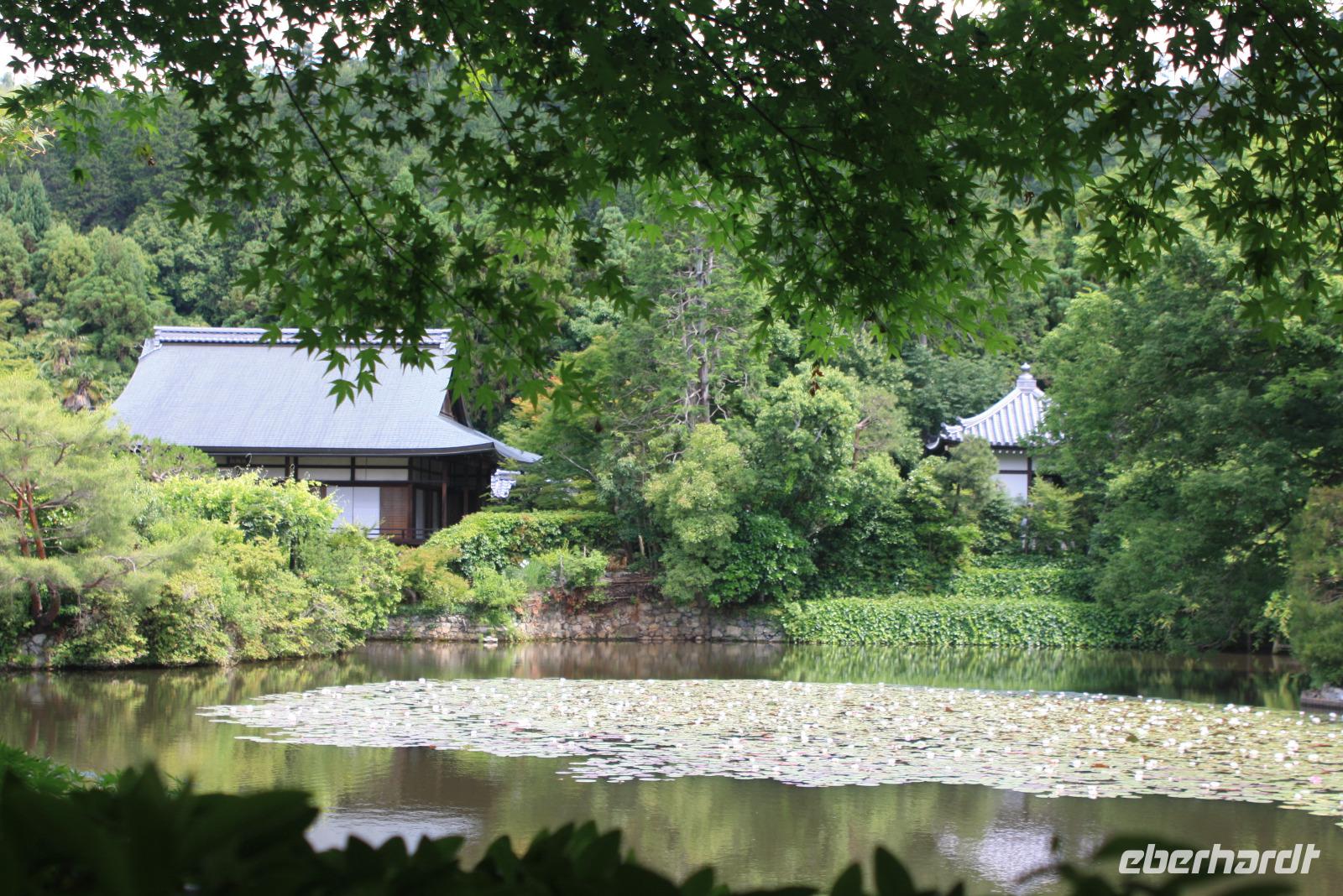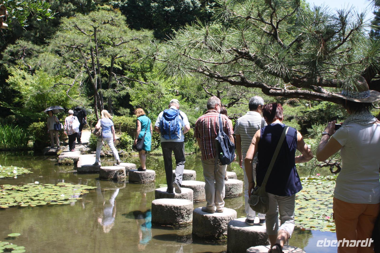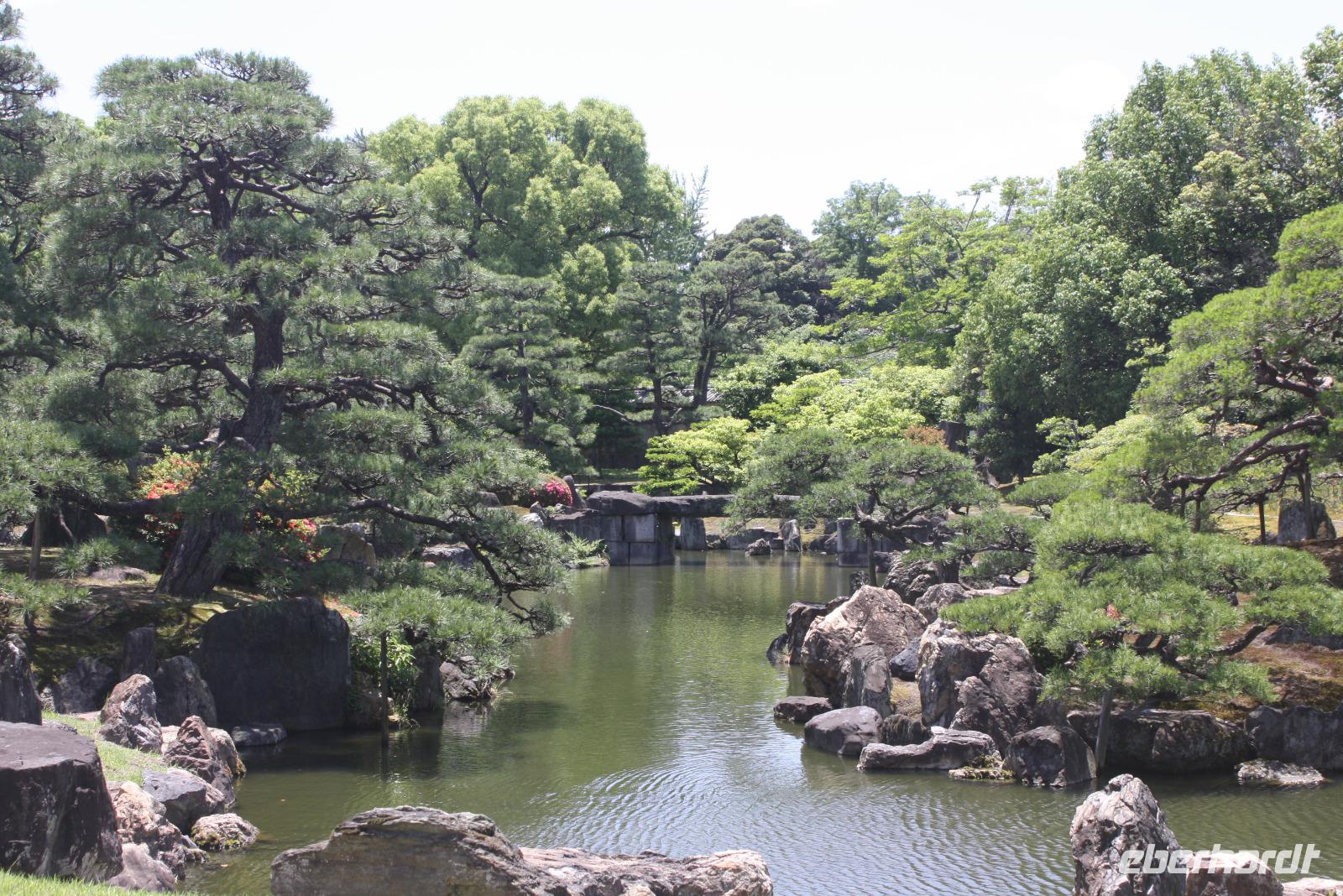 Kyotos ursprünglicher Name war Edo, was so viel wie an der Flussmündung bedeutet. Bis Ende des 18. Jahrhunderts war Kyoto Hauptsitz der kaiserlichen Familie. Heute dient der Kaiserpalast als Sommerresidenz. In dieser Stadt befindne sich sage und schreibe 1.600 Tempel und 400 Schreine. Neben diesem unglaublichen Kulturschat begegnen wir moderne Boulevards, quirliges Nachtleben und Natur pur in der Umgebung. Nach dem Feng Shui-Prinzip ist der japanische Garten eine Miniatur der Natur und muss daher auch in natürlicher Umgebung sein. Aus dieser Sicht hat Kyoto die perfekte Lage: Im Süden ist der Phoenix, er steht für neues Leben und neue Waren. Im Osten finden wir den Drachen, er steht für das Wasser und Lebenskraft. Der Westen ist ein weißer Tieger, der Wald, aus dem die Versorgung für Holz und Erze kommen. Der Norden wiederum ist die Schildkröte, die Berge sind eine natürliche Verteidigung.