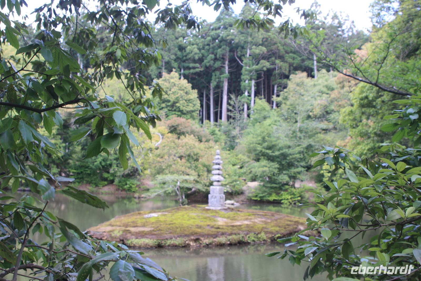 Wir steuern auf Tempel des strahlenden vollen Lichtes zu, dem Ginkakuji mit der silbernen Pagode. Er wurde 70 Jahre nach der Goldenen Pagode im Jahe 1460 erbaut. Dieser ist dieses Mal aber nicht mit Silber überzogen, sondern besteht zu 100 Prozent aus Holz. Anmutig ist auch er in einem gepfelgten Garten eingebettet.