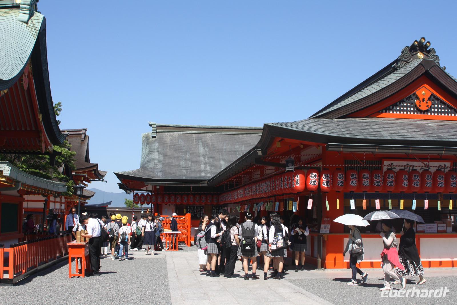 Ein nächster aufregender Tag steht uns bevor. Wir wollen die prächtige Stadt Kyoto weiter erkunden. Japans meist bewanderter Schrein Fushimi-Inari steht auf dem Programm. Der lange Torenpfad weiste einst den Pilgern ihren Weg zum Hauptschrein. Durch dessen endlos wirkende Schreintor-Galerien flanieren wir und genießen diese besondere Aura. Zurück zum Bus passieren wir einen Friedhof. Alle Verstorbenen bekommen nach dem Tod einen buddhistischen Namen auf Holzplatten geschrieben. Da die Toten mit der Natur eins werden sollen, werden sie nach der Kremierung nicht mit der Urne begraben.