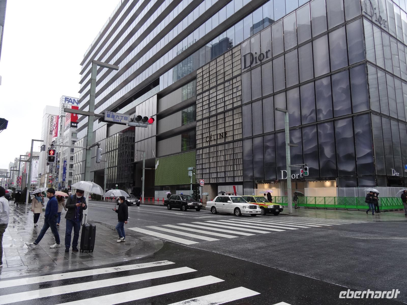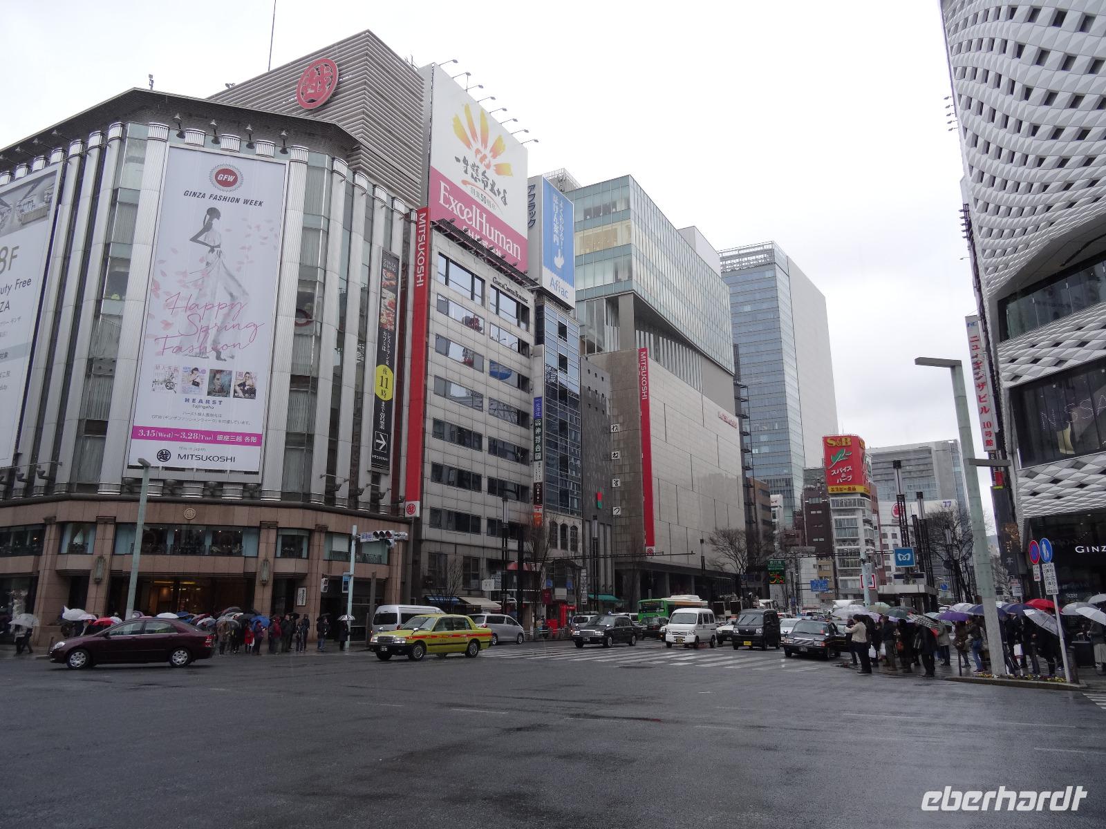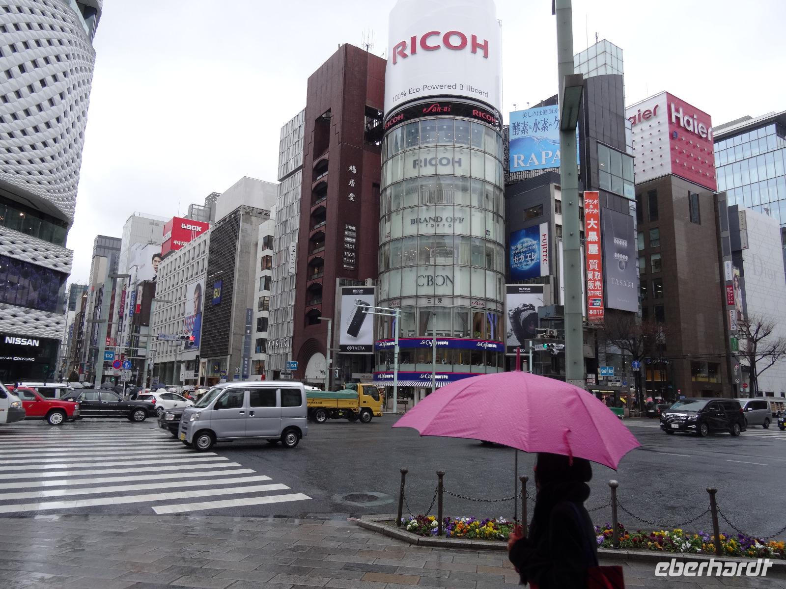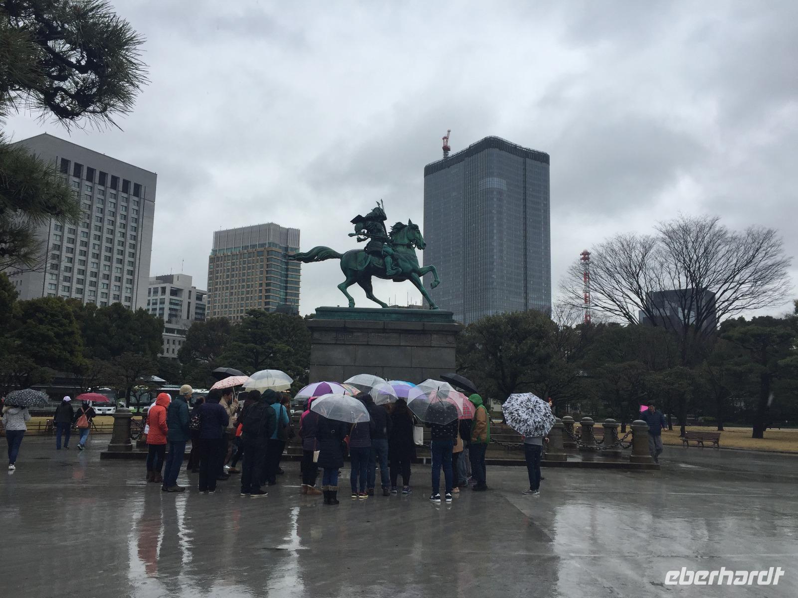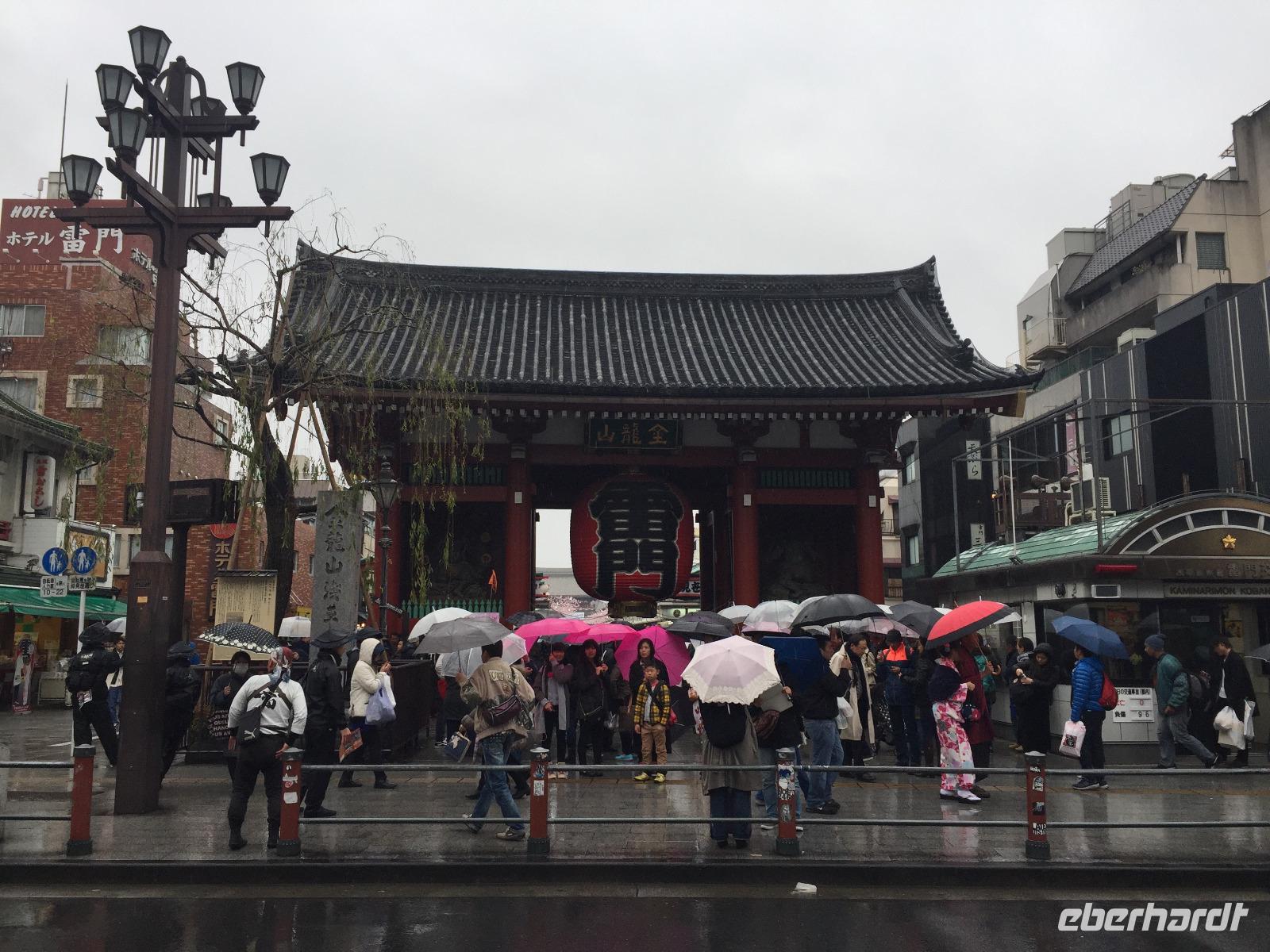 Nach einer erholsamen Nachtruhe und einem kleinen, aber feinen Frühstück stand ein ganzer Tag in der japanischen Hauptstadt auf dem Programm. Das Wetter hatte sich zum gestrigen Tag leider nicht signifikant verbessert, es regnete immer noch relativ stark, so dass der Regenschirm zur Grundausstattung gehörte. Erstes Ziel war der Meiji-Schrein, im Tokioter Stadtteil Shibuya gelegen, welcher den Seelen des Kaisers Meiji und seiner Frau Shoken-kotaigo gewidmet ist. Eingeweiht im Jahre 1920 ist der Shinto-Schrein das zentrale Heiligtum nicht nur für Millionen Tokioter. Wir schritten entlang einer Galerie von gespendeten Sake-und-Rotweinfässern zum Eingang des Schreins, welchen wir durch ein Torii betraten. Wir schauten uns den Naien, den inneren Bezirk mit den wichtigsten Gebäuden an und Kerstin, unsere RLin, gab uns ausführliche Informationen zur Bedeutung des Schreins und seines Namensgebers, dem Meiji-Tenno. Alsbald kehrten wir in den Bus zurück und setzten unsere Stadtrundfahrt durch das regnerische Tokio fort. Den nächsten Stopp legten wir am Gelände des Kaiserpalastes ein, von dem wir nur ein Eingangstor und ein höher gelegenes Gebäude zu Gesicht bekamen, da er die meiste Zeit des Jahres nicht besichtigt werden kann. Generell lebt die kaiserliche Familie sehr zurückgezogen von der Öffentlichkeit, was sich in der Exilgleichen Verstecktheit der Palastanlagen widerspiegelt. Allein die weitläufigen unbebauten Außenanlagen in einer Stadt, die mit die höchsten Bodenpreise weltweit ihr Eigen nennt, lässt die immer noch große Bedeutung des japanischen Tenno für die kulturelle Identifikation einer ganzen Nation erahnen. Es wird kolportiert, dass das gesamte Gelände des Kaiserpalastes vom Grundstückswert her mit ganz Kalifornien gleichzusetzen wäre. Unvorstellbar und natürlich auch nicht belegt. Wir fuhren weiter zur weltweit bekannten Einkaufsstraße Ginza, wo wir bei einem kurzen Stopp die Auslagen in den Schaufenstern der großen Modelabels begutachteten. Tokio ist nicht nur eine Stadt der kleinen Wohnungen und großen Preise, es ist auch eine Stadt des guten Essens und der modischen Kleidung. Tokioter legen ebenso großen Wert auf stylische, hippe Kleidung von den momentan angesagtesten Designern wie ihre Pendants in New York oder London. Und kaufen kann man das alles, neben vielen anderen Dingen, auf der Ginza. Für die anschließende Mittagspause fuhren wir zurück zum Stadtteil Asakusa. Wer wollte, konnte Sushi essen gehen oder eine Nudelsuppe in einem der umliegenden Lokale probieren. Gut gestärkt trafen wir uns am Nachmittag wieder und besuchten Tokios ältesten und wichtigsten Tempel, den nahegelegenen Senso-ji-Tempel. Über das Kaminari-mon, das Donnertor, gelangten wir über die zu beiden Seiten von Verkaufsständen flankierte Nakamise-dori zum Hozo-mon, dem Eingangstor zum eigentlichen Tempelbezirk. Hier hatten wir dann Zeit, die Haupthalle zu besichtigen bzw. das wuselige Treiben im Tempelbereich auf uns wirken zu lassen. Im Anschluss an die Besichtigung blieb Zeit für einen Einkaufsbummel oder man nutzte die Möglichkeit, mit nach Shibuya, zum Hachiko-Square zu fahren. Mit der Metro gelangten wir in knapp dreißig Minuten zur wahrscheinlich bekanntesten Straßenkreuzung in Tokio, die in Spitzenzeiten von bis zu 15.000 Menschen pro Ampelphase überquert wird. Ähnlich wie am Times Square in New York trifft hier Kommerz auf Neon, fluten Menschenmassen vorwiegend jüngeren Alters die angrenzenden Bars, Cafés und Shopping-Malls. Ein kleines Denkmal am Rande des Platzes ist dem Hund Hachiko gewidmet, dessen Geschichte über Treue und Zuneigung in verschiedenen Filmen gehuldigt wurde. Unser Abendessen nahmen wir in einem Restaurant zu uns, welches Sukiyaki anbot, verschiedene, dünn geschnittene Fleischscheiben, die mit diversen Beilagen in einem kochenden Gewürzsud gegart wurden. Je nach Gusto konnte man soviel Schwein-, Rind- oder Hühnchenfleisch essen, wie man wollte oder besser schaffte. Später gingen wir gesättigt die paar Schritte zu unserem Hotel zurück und freuten uns auf den folgenden Tag.
