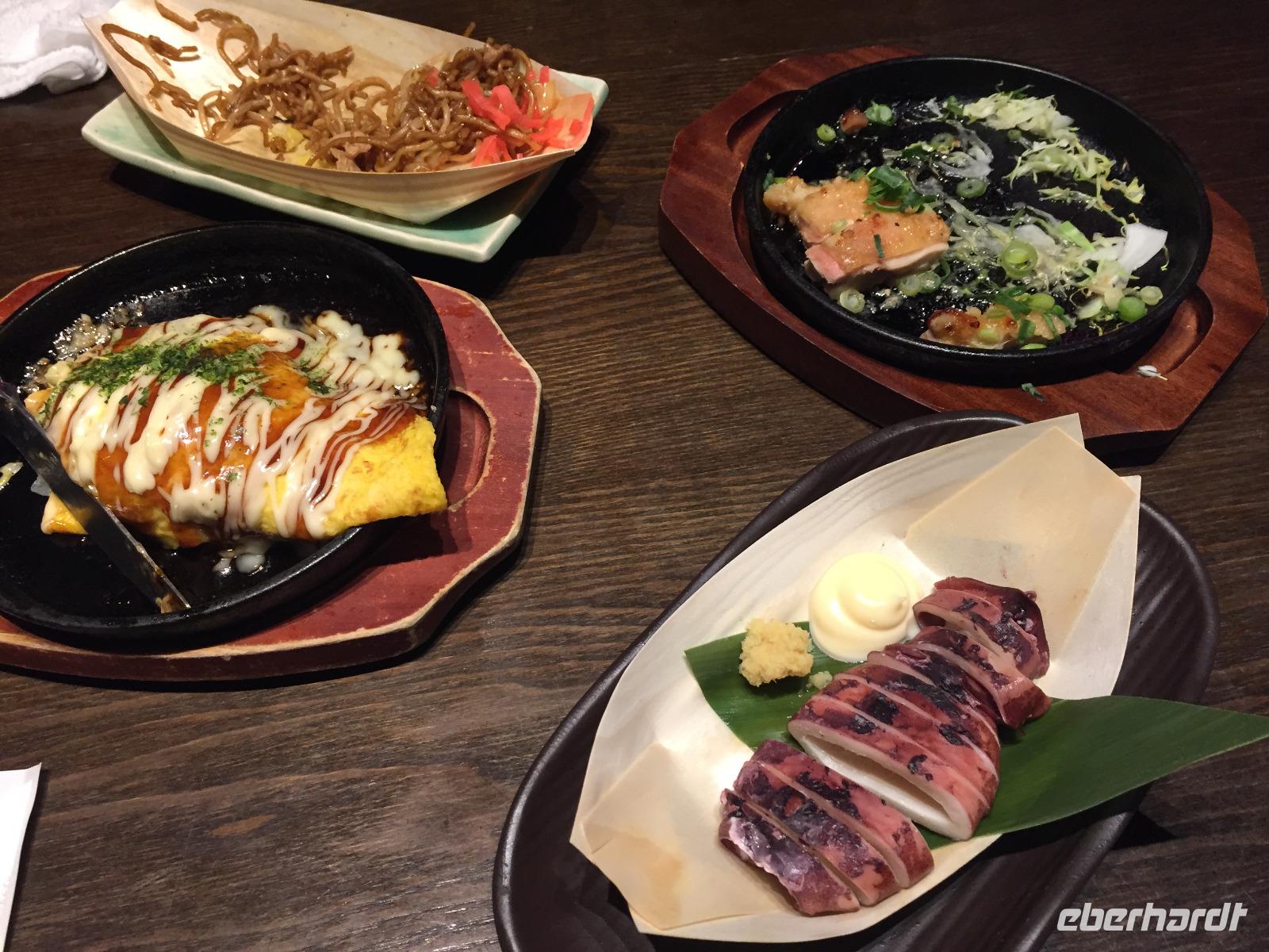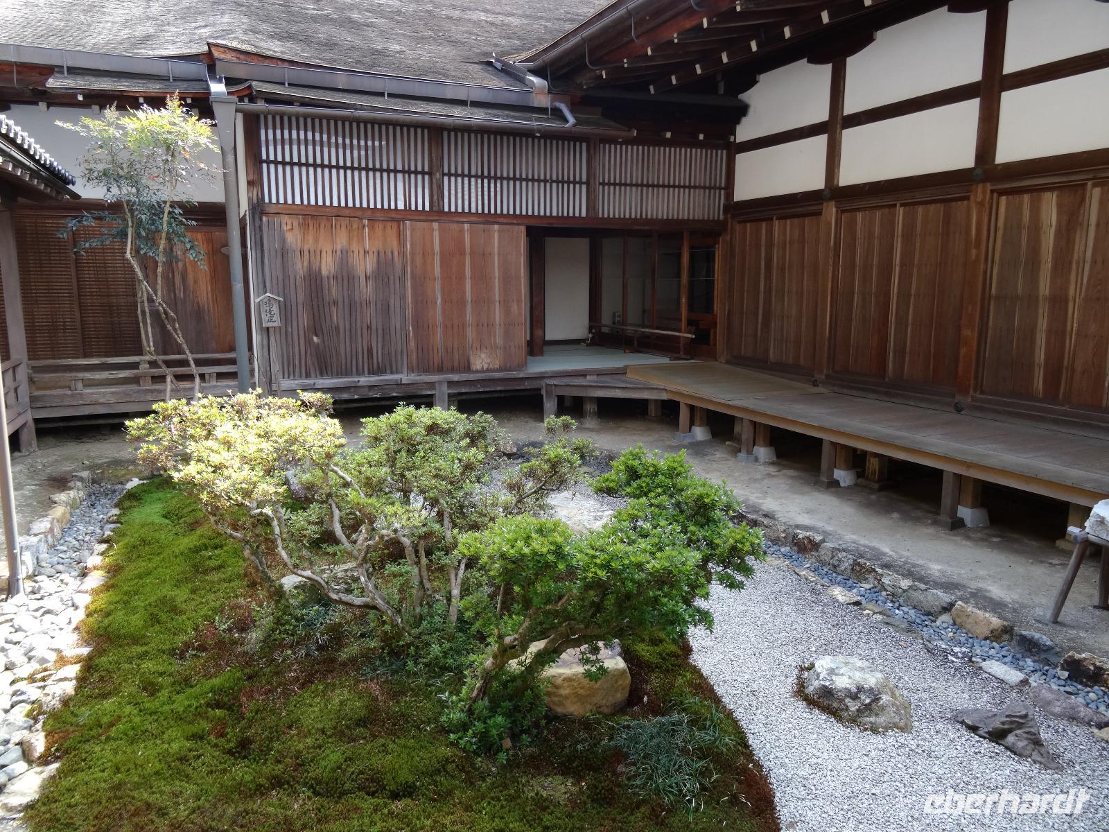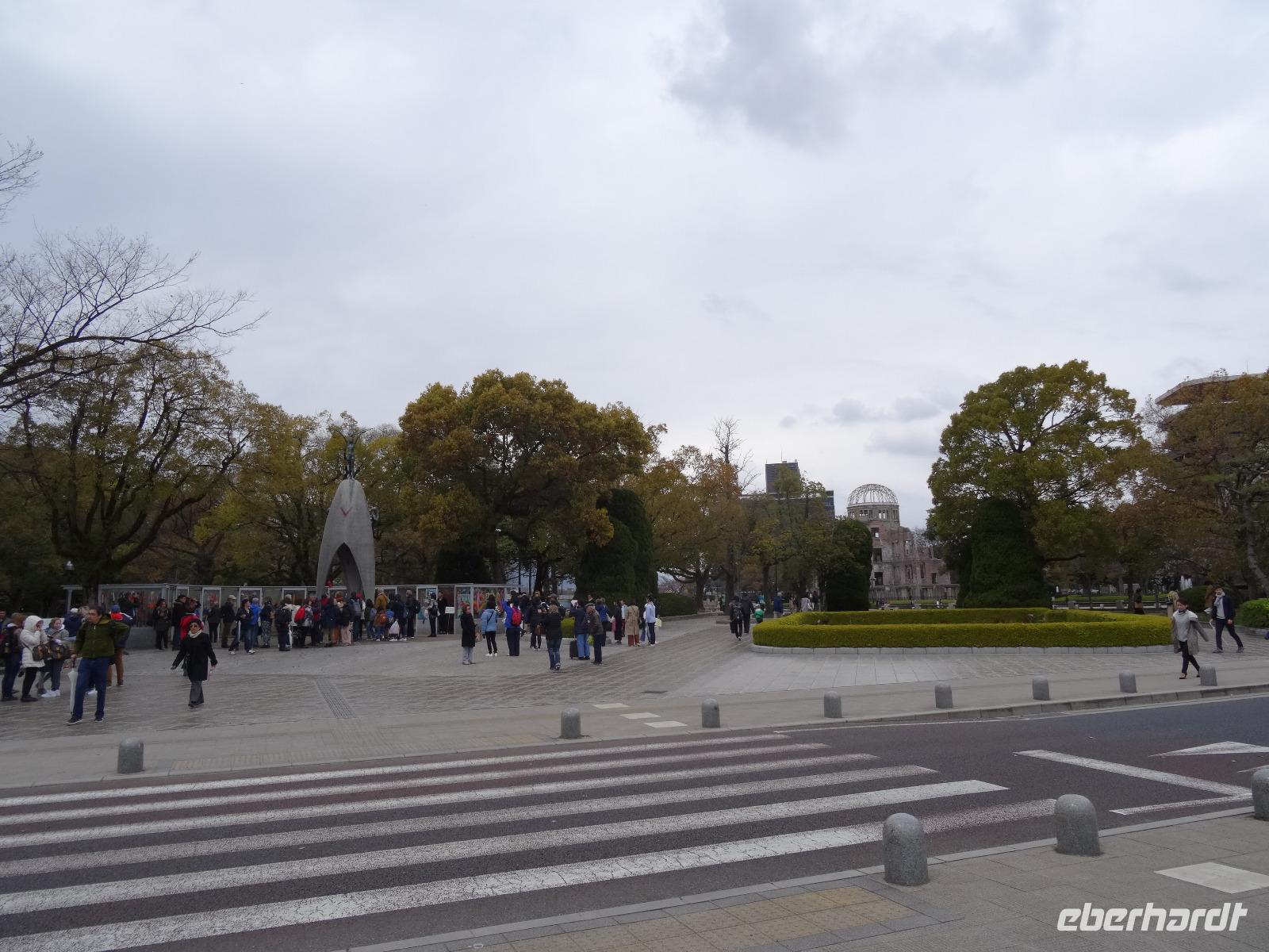 Nach einer „harten" Nacht auf dem Futon erwartete uns ein klassisches, ausschließlich japanisches Frühstück, welches einen ähnlichen Zuschnitt wie unser gestriges Abendessen hatte. Aber da wir nicht nur „einfach" hungrig, sondern erlebnis- und entdeckungshungrig waren, erkundeten wir auch die frühmorgendlichen Spezereien, die uns in bunter Abfolge kredenzt wurden. Das Frühstück war schon sehr speziell und ungewohnt für unsere Gaumen. Anschließend gingen wir bei strahlendem Sonnenschein auf Entdeckungstour und wandten uns zuerst dem Itsukushima-Schrein mit dem Torii zu, welcher das Hauptheiligtum der Insel war. Auf unserem Weg dahin wurde wir von freilaufendem Rotwild begleitet, welches nachhaltig um Nahrung ersuchte. Der Itsukushima-Schrein, insbesondere das im Wasser stehende 16 Meter hohe Torii, gehört zum UNESCO-Weltkulturerbe und ist neben dem Fuji die wohl bekannteste Sehenswürdigkeit Japans. Kaum ein Reiseführer verzichtet auf des malerische Bild des orangerot leuchtenden Tores. Der eigentliche Schrein, der wie das Torii bei Flut zu großen Teilen im Wasser steht, ist heute noch Schauplatz von Zeremonien und von Hochzeiten. Wir spazierten weiter in Richtung Daisho-In-Tempel und kamen dabei auch an der im japanischen Stil errichteten 15,6 Meter hohen Tahoto-Pagode aus dem Jahre 1523 vorbei. Von hier aus hat man auch einen guten Blick auf die Bucht und das gegenüberliegende Festland. Nach weiteren 15 Minuten Fußweg erreichten wir endlich den Daisho-In-Tempel, am Mt. Misen gelegen. Der Tempel gehört zur esoterischen Shingon-Sekte, die den Glauben vertritt, dass der Mensch durch esoterische Praktiken die Buddha-Werdung erreichen konnte. Eine Besonderheit sind die 500 kleinen, steinernen Statuen, die sogenannten Shaka-Schüler, die mit Mützen oder Schals bekleidet sind und gekauft werden konnten. Wir verließen zur Mittagszeit wieder den Tempel und die Insel Miyajima und spazierten zurück zum Fähranleger, von wo aus wir zum Festland übersetzten. Mit dem Regionalzug und der Straßenbahn gelangten wir ins Zentrum von Hiroshima, zum Genbaku Dome, dem Friedensdenkmal für die Opfer des ersten Atombombenabwurfs. Dieser ist Teil des 12 Hektar großen Friedensparks, welcher neben dem Friedensmuseum auch den Kenotaph, die Friedensflamme, das Kinder-Friedensmonument mit dem Kranich, die Friedensglocke und weitere Gedenkstätten enthält. Wir besuchten den Friedenspark und setzten uns im Friedensmuseum mit den Zeugnissen des verheerenden Atombombenabwurfs auf Hiroshima auseinander. Nach dieser sehr aufwühlenden geschichtlichen Zeitreise viel es schwer, zum normalen Tagesablauf zurückzukehren. Zu bewegend waren die Bilder. Aber wir mussten weiter, unser Tagesziel hieß Kyoto. Bei strömendem Regen gelangten wir mit Taxen zum Bahnhof, wo wir den Shinkansen nach Kyoto bestiegen. Die knapp 380 Kilometer legten wir in einer Stunde und vierzig Minuten zurück. So macht Reisen Spaß! In Kyoto angekommen, besichtigten wir zuerst den futuristischen Hauptbahnhof, welcher 1997 fertiggestellt wurde und zu Japans modernsten Bahnhöfen zählt. Obwohl seine Architektur nicht unumstritten ist, bietet er auf 15 Etagen eine Kombination aus Leben, Essen, Schlafen, Einkaufen gepaart mit den notwendigen technischen Voraussetzungen für einen modernen, gut funktionierenden Eisenbahnknotenpunkt. Wie auch immer man dazu stehen möchte, der Gesamtkomplex ist beeindruckend! Zu unserem Abendessen ging es zu Fuß, wir liefen die wenigen Meter zum Restaurant Donguri, wo es Okonomiyaki sowie gebratenen Tintenfisch mit Süßkartoffeln, Nudeln und einiges mehr für den spürbaren Hunger gab. Nach einem langen Tag fuhren wir die letzten Kilometer mit Taxen zu unserem Hotel im Zentrum Kyotos, wo wir nach dem Zimmerbezug müde in die Betten fielen.