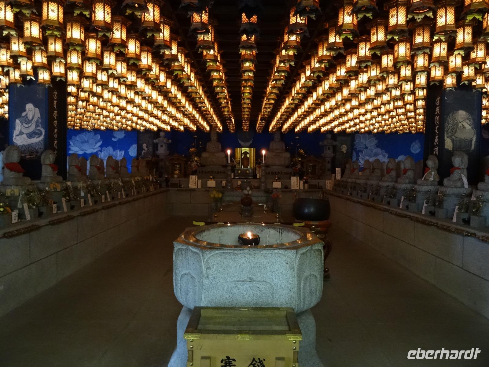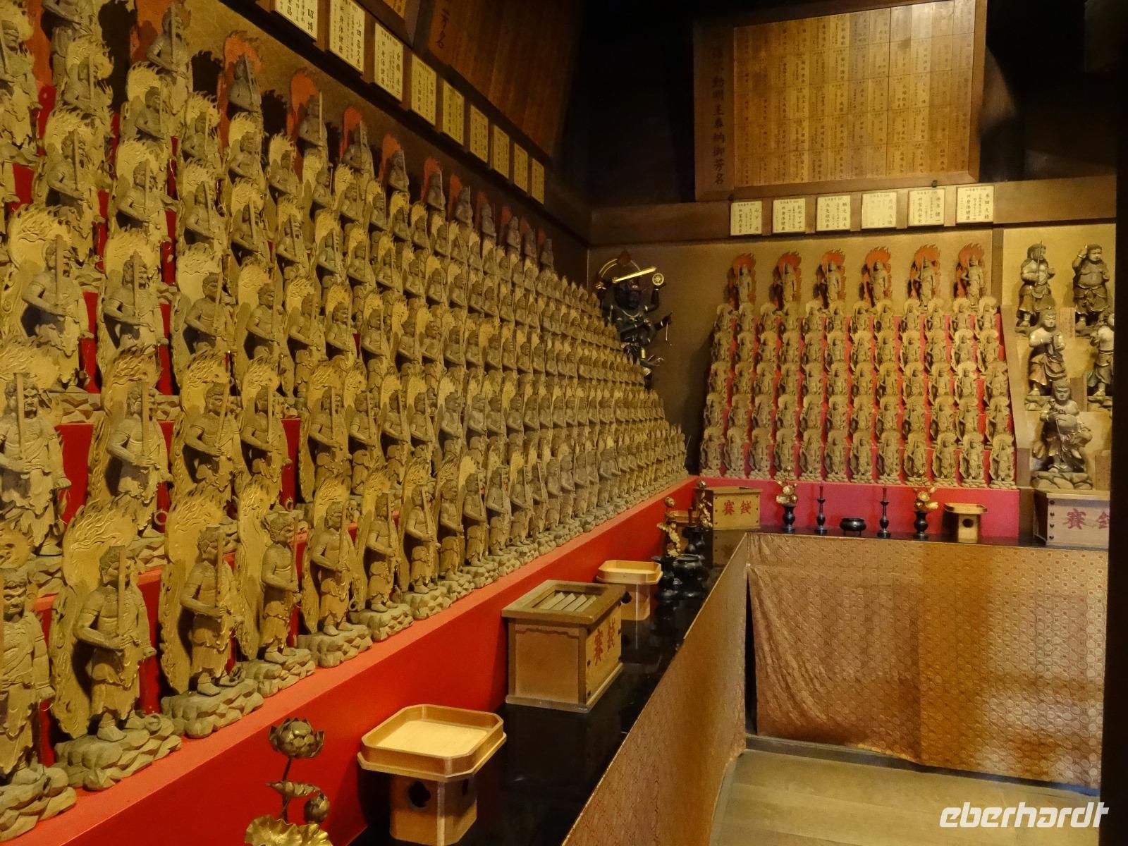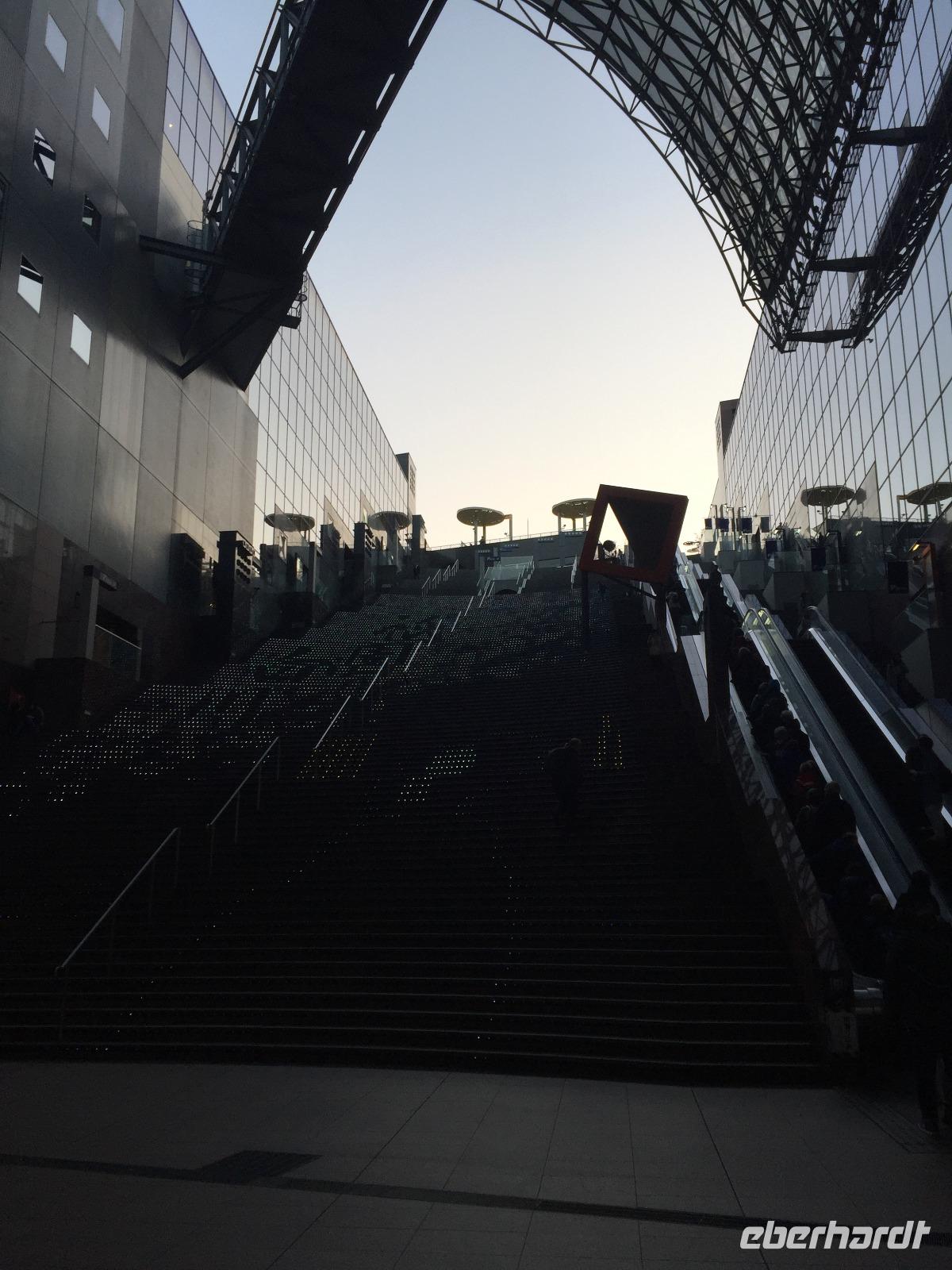 Nach einer „harten" Nacht auf dem Futon erwartete uns ein klassisches, ausschließlich japanisches Frühstück, welches einen ähnlichen Zuschnitt wie unser gestriges Abendessen hatte. Aber da wir nicht nur „einfach" hungrig, sondern erlebnis- und entdeckungshungrig waren, erkundeten wir auch die frühmorgendlichen Spezereien, die uns in bunter Abfolge kredenzt wurden. Das Frühstück war schon sehr speziell und ungewohnt für unsere Gaumen. Anschließend gingen wir bei strahlendem Sonnenschein auf Entdeckungstour und wandten uns zuerst dem Itsukushima-Schrein mit dem Torii zu, welcher das Hauptheiligtum der Insel war. Auf unserem Weg dahin wurde wir von freilaufendem Rotwild begleitet, welches nachhaltig um Nahrung ersuchte. Der Itsukushima-Schrein, insbesondere das im Wasser stehende 16 Meter hohe Torii, gehört zum UNESCO-Weltkulturerbe und ist neben dem Fuji die wohl bekannteste Sehenswürdigkeit Japans. Kaum ein Reiseführer verzichtet auf des malerische Bild des orangerot leuchtenden Tores. Der eigentliche Schrein, der wie das Torii bei Flut zu großen Teilen im Wasser steht, ist heute noch Schauplatz von Zeremonien und von Hochzeiten. Wir spazierten weiter in Richtung Daisho-In-Tempel und kamen dabei auch an der im japanischen Stil errichteten 15,6 Meter hohen Tahoto-Pagode aus dem Jahre 1523 vorbei. Von hier aus hat man auch einen guten Blick auf die Bucht und das gegenüberliegende Festland. Nach weiteren 15 Minuten Fußweg erreichten wir endlich den Daisho-In-Tempel, am Mt. Misen gelegen. Der Tempel gehört zur esoterischen Shingon-Sekte, die den Glauben vertritt, dass der Mensch durch esoterische Praktiken die Buddha-Werdung erreichen konnte. Eine Besonderheit sind die 500 kleinen, steinernen Statuen, die sogenannten Shaka-Schüler, die mit Mützen oder Schals bekleidet sind und gekauft werden konnten. Wir verließen zur Mittagszeit wieder den Tempel und die Insel Miyajima und spazierten zurück zum Fähranleger, von wo aus wir zum Festland übersetzten. Mit dem Regionalzug und der Straßenbahn gelangten wir ins Zentrum von Hiroshima, zum Genbaku Dome, dem Friedensdenkmal für die Opfer des ersten Atombombenabwurfs. Dieser ist Teil des 12 Hektar großen Friedensparks, welcher neben dem Friedensmuseum auch den Kenotaph, die Friedensflamme, das Kinder-Friedensmonument mit dem Kranich, die Friedensglocke und weitere Gedenkstätten enthält. Wir besuchten den Friedenspark und setzten uns im Friedensmuseum mit den Zeugnissen des verheerenden Atombombenabwurfs auf Hiroshima auseinander. Nach dieser sehr aufwühlenden geschichtlichen Zeitreise viel es schwer, zum normalen Tagesablauf zurückzukehren. Zu bewegend waren die Bilder. Aber wir mussten weiter, unser Tagesziel hieß Kyoto. Bei strömendem Regen gelangten wir mit Taxen zum Bahnhof, wo wir den Shinkansen nach Kyoto bestiegen. Die knapp 380 Kilometer legten wir in einer Stunde und vierzig Minuten zurück. So macht Reisen Spaß! In Kyoto angekommen, besichtigten wir zuerst den futuristischen Hauptbahnhof, welcher 1997 fertiggestellt wurde und zu Japans modernsten Bahnhöfen zählt. Obwohl seine Architektur nicht unumstritten ist, bietet er auf 15 Etagen eine Kombination aus Leben, Essen, Schlafen, Einkaufen gepaart mit den notwendigen technischen Voraussetzungen für einen modernen, gut funktionierenden Eisenbahnknotenpunkt. Wie auch immer man dazu stehen möchte, der Gesamtkomplex ist beeindruckend! Zu unserem Abendessen ging es zu Fuß, wir liefen die wenigen Meter zum Restaurant Donguri, wo es Okonomiyaki sowie gebratenen Tintenfisch mit Süßkartoffeln, Nudeln und einiges mehr für den spürbaren Hunger gab. Nach einem langen Tag fuhren wir die letzten Kilometer mit Taxen zu unserem Hotel im Zentrum Kyotos, wo wir nach dem Zimmerbezug müde in die Betten fielen.