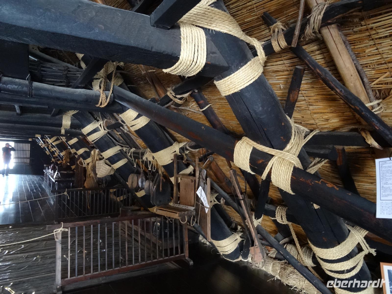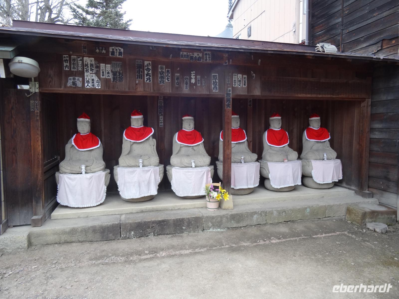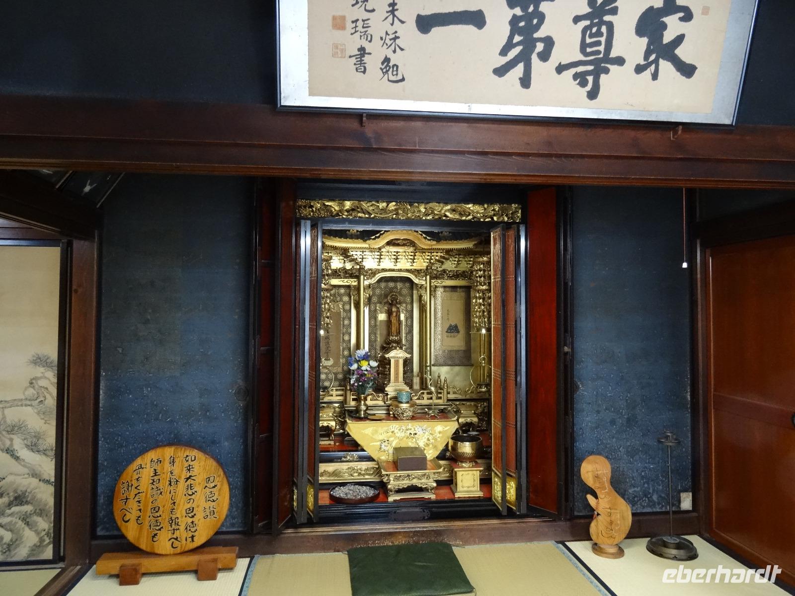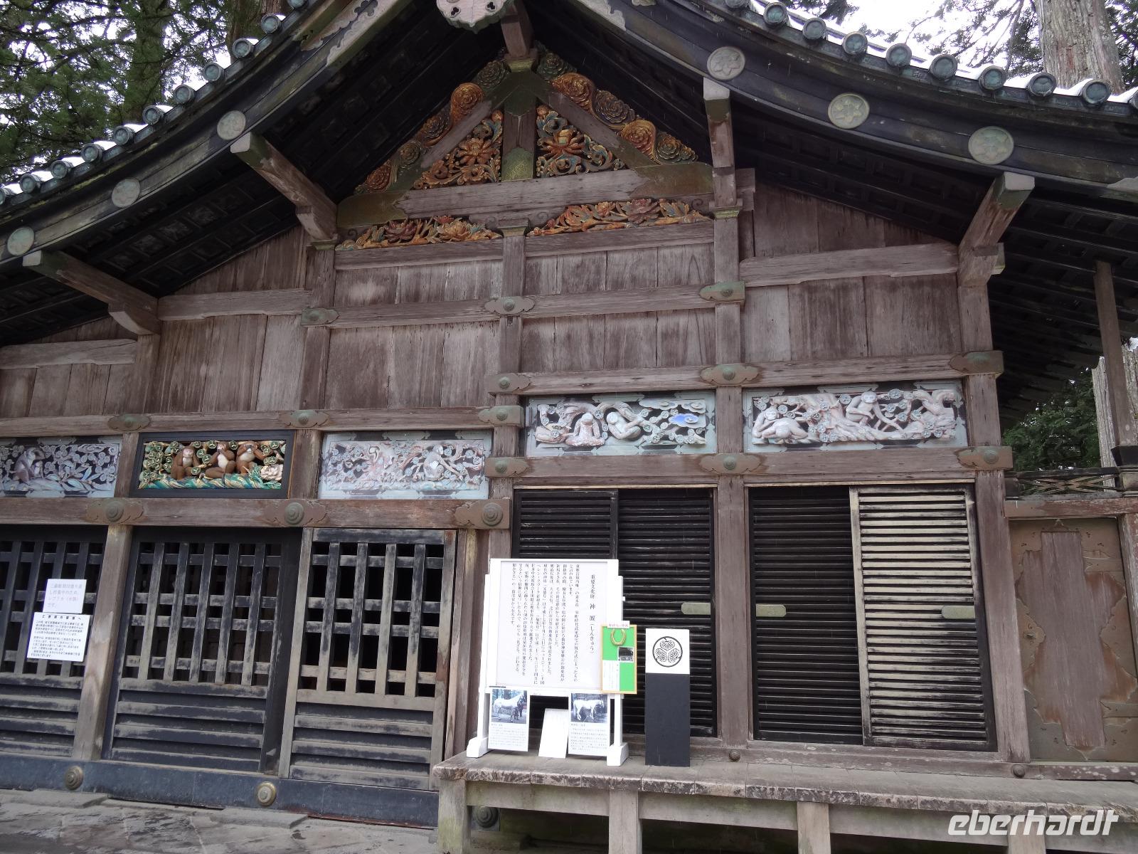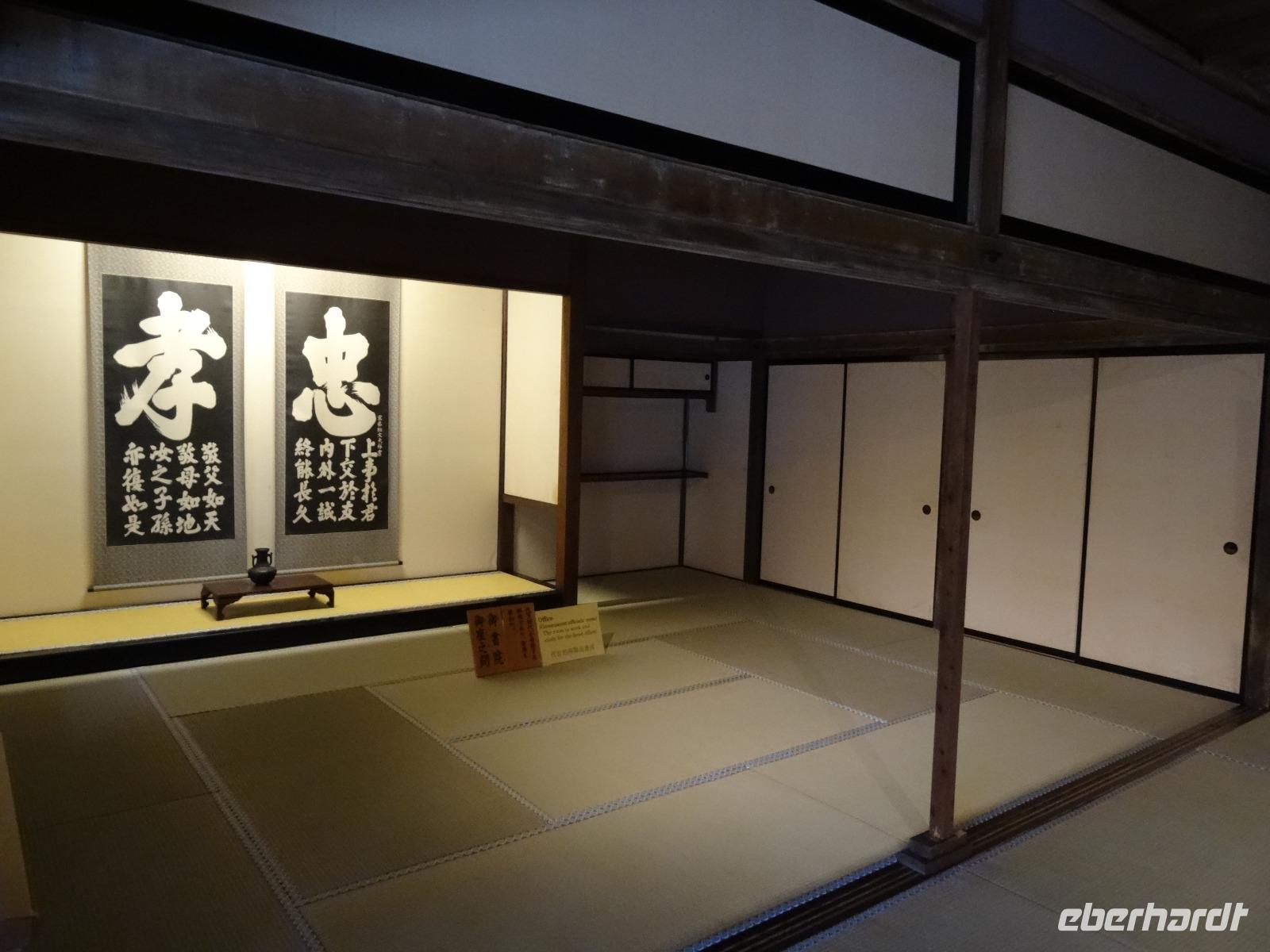 Am heutigen Morgen regnete es zwar nicht, aber es war nur vier Grad warm, als wir das Hotel verließen und uns auf den Weg zum Miyagawa Morgenmarkt machten. Auf unserem Weg dahin besichtigten wir den Kokubun-ji Schrein, in dessen Mitte ein riesiger Gingkobaum emporwuchs. Beim anschließenden Bummel über den Morgenmarkt konnte man das eine oder andere Geschenk oder Andenken erwerben oder einfach nur dem Treiben zuschauen. Mit dem Bus ging es danach in knapp fünfzigminütiger Fahrt nach Shirakawa-go, eine Ansammlung kleiner Dörfer, von denen einige zum UNESCO Weltkulturerbe zählen. Bekannt geworden sind sie durch die Bauweise ihrer Dächer, die so steil in den Himmel ragen, dass sie dabei wie zum Gebet gefaltete Hände aussehen. Notwendig machten das die hohen Schneelasten in dieser Region, so dass man sich mit einer etwa sechzig Grad steilen Dachkonstruktion aus Stroh dagegen wappnete. Bei einem Rundgang besichtigten wir auch eines dieser Häuser, das sogenannte Wada-Haus, welches ein sehr gutes Bild von den Lebensumständen und der Anordnung der Räumlichkeiten bot. In früheren Zeiten wurde hier Salpeter hergestellt und im Dachgeschoss war eine Seidenraupenzucht untergebracht. Gegen Mittag verließen wir das historische Dorf am Shogawa-Fluss wieder und fuhren nach Takayama zurück. Wir verabschiedeten unseren Busfahrer und weiter ging unsere Erkundung jetzt zu Fuß. In der Yatai-Kaikan-Halle sahen wir eine Ausstellung wunderschöner Prunk- und Umzugswagen, die alljährlich jeweils im April und Oktober zum Takayama-Fest in großer Zeremonie durch die Straßen gezogen werden. Ein kleiner Film zeigte anschaulich die Prozession der eindrucksvollen Wagen. Der weitere Weg führte uns durch das Zentrum der Altstadt zum alten Regierungsgebäude Takayama Jin'ya, welches im 17. Jahrhundert unter dem Einfluss des Shogunats gebaut wurde und zu den besterhaltenen Anlagen dieser Art in Japan zählt. Nach einem fünfundvierzigminütigen Rundgang ließen wir unser Tagesprogramm bei einer kleinen Sake-Verkostung ausklingen, für 200 Yen konnte man etwa acht verschiedene Weinsorten ausprobieren. Das half unter anderem gegen die Kälte, die bereits schon gute Stimmung wurde dadurch natürlich noch zusätzlich befeuert. Der heutige Abend stand ganz im Zeichen von Fleisch, viel Fleisch. Im Restaurant "Rokubee" erwarteten uns Yakiniku, riesige gemischte Fleischplatten sowie vegetarische Beilagen, welche auf einem eingelassenen Grill in einer Vertiefung in der Mitte des Tisches frisch zubereitet wurden. Das war nicht nur sehr lecker, sondern hat auch noch viel Spaß gemacht. Mit den entsprechenden Gewürzen und Soßen stellte man so, je nach Geschmack, schnell sein bevorzugtes Fleischgericht selber her. Nach den eher fleischarmen Gerichten der vergangenen Tage war es für alle eine willkommene Alternative zu Sushi und Sashimi.