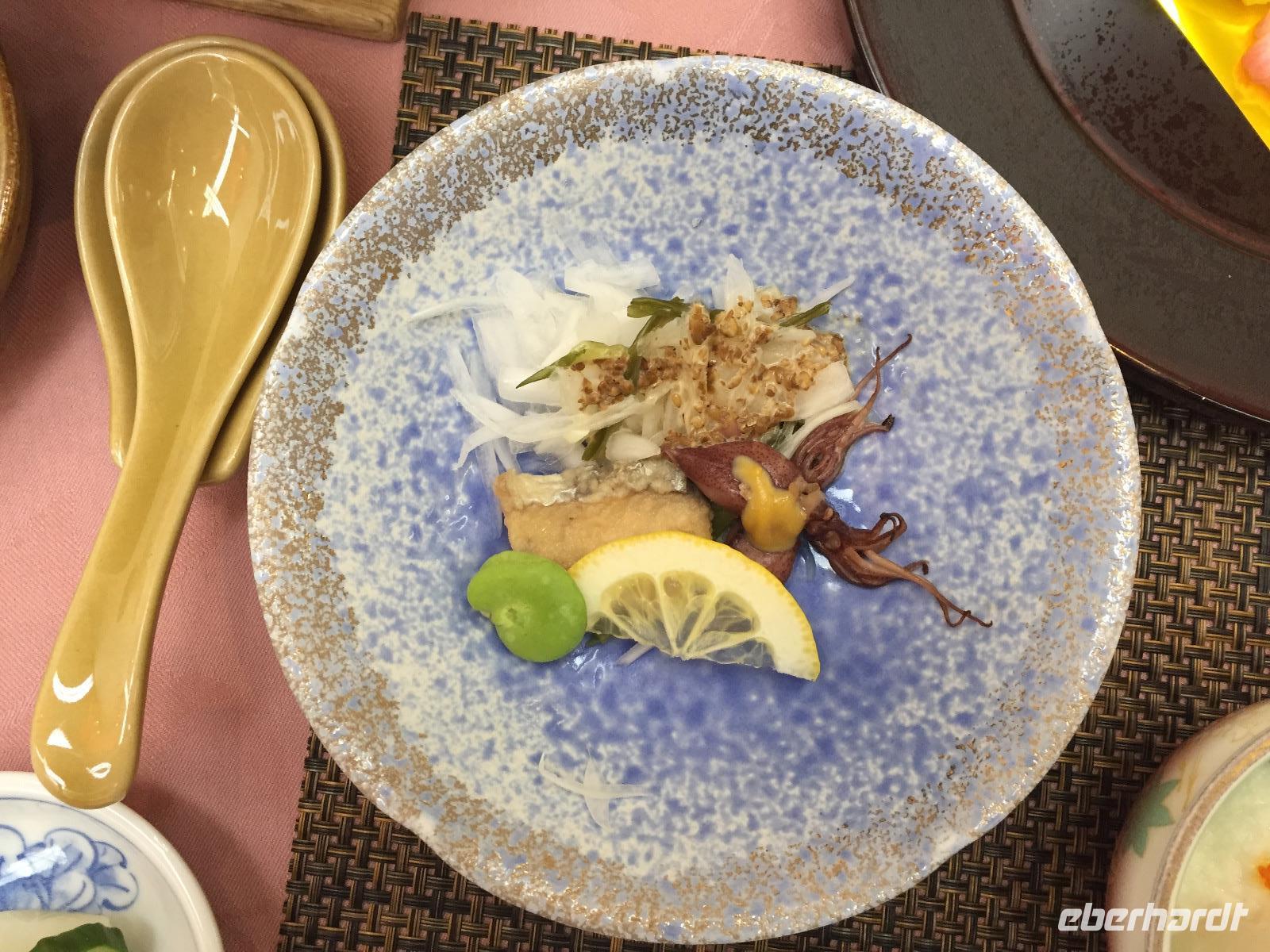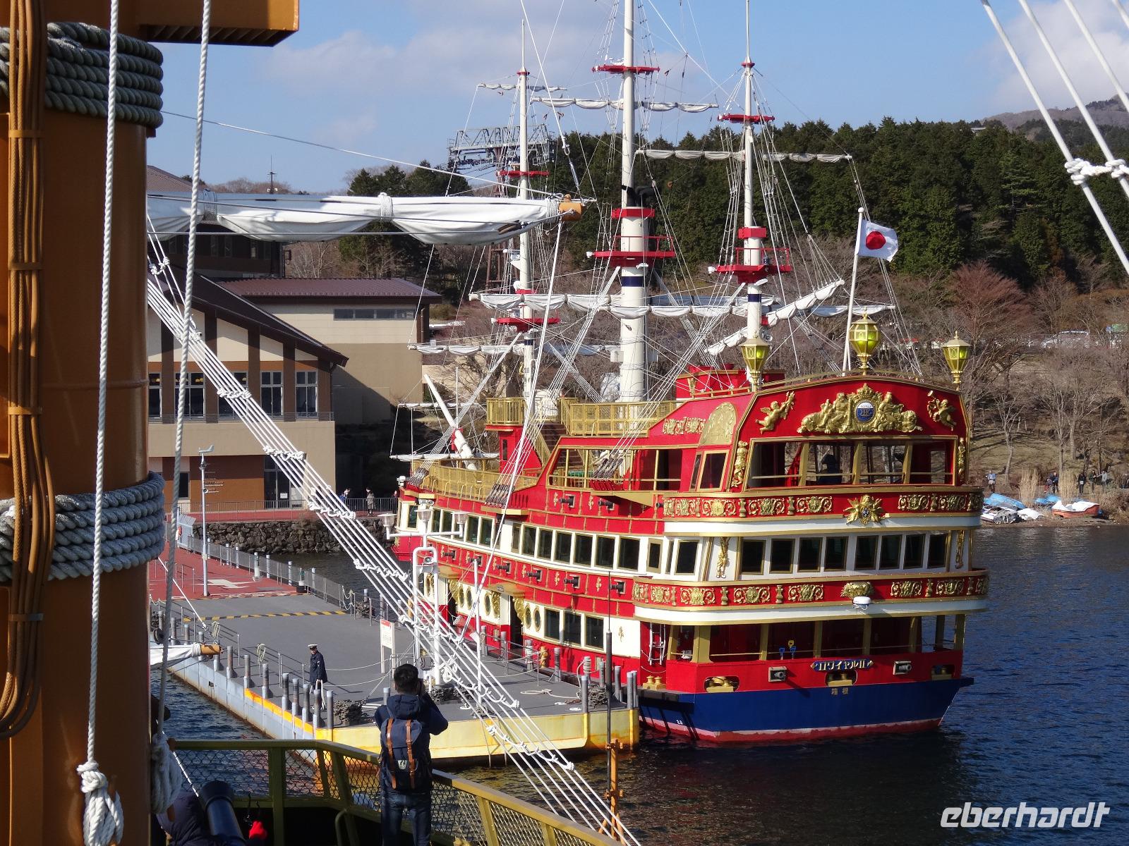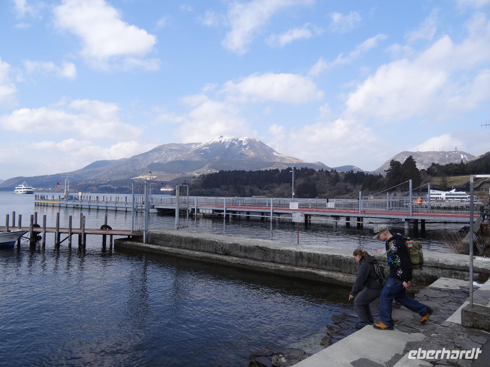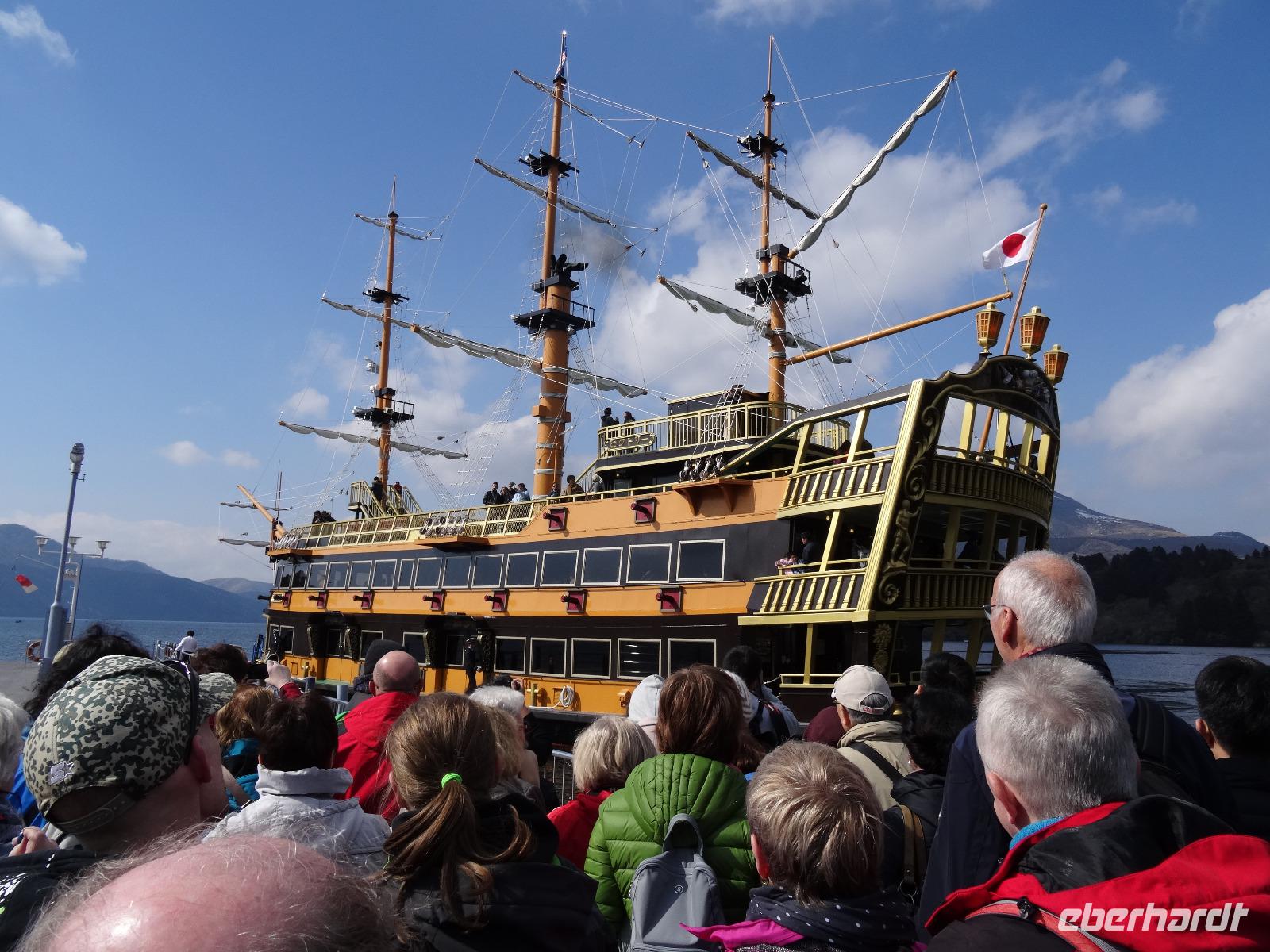 Wir nahmen Abschied von Tokio, einer Stadt, die uns beeindruckte, aber leider nicht lang genug beherbergte, um sie ins Herz zu schließen. Über Yokohama verließen wir die japanische Hauptstadt und fuhren in südlicher Richtung entlang der Tokio-Bucht nach Kamakura, wo wir anderthalb Stunden später eintrafen. Die Stadt ist bekannt für ihre Vielzahl an Tempeln und Bauten, welche teilweise auch zum Weltkulturerbe gehören. Wichtigstes Heiligtum ist sicherlich der "Große Buddha" von Kamakura, eine elf Meter hohe und neunzig Tonnen schwere Bronzestatue aus dem Jahre 1252. Wer wollte, konnte auch das Innere des Buddhas besichtigen, was sich aber nur bedingt lohnte. Dafür sahen wir hier die ersten Kirschblüten, wegen denen wir ja unter anderem hergekommen waren. In Tokio waren Sie noch nicht so weit in der Blüte. Ein kurzer Spaziergang führte uns anschließend zum Hasedera-Tempel, einer schönen Anlage mit Blick über Kamakura, deren wohl wichtigstes Heiligtum eine elfköpfige, über neun Meter Hohe Kannon-Buddha-Statue ist, die aus einem einzigen Stamm eines Kampferbaumes gefertigt wurde. Hier verbrachten wir eine reichliche Stunde, bevor wir wieder in unseren Bus stiegen und die ehemalige Shogunats-Hauptstadt verließen. Wir fuhren die Sagami-Bucht entlang nach Hakone, wo wir am frühen Nachmittag ankamen. Am nahegelegenen Ashi-See gingen wir an Bord eines von vier nachgebauten Piratenschiffen, welche Urlauber und Ausflügler über den malerisch gelegen See brachten. Bei gutem Wetter und mit etwas Glück kann man die Spitze des Fuji-San bei der Fahrt über den See sehen. Leider war es bei unserer Tour so wolkig und diesig, dass man ihn nur mit viel Fantasie und Vorstellungsvermögen erahnen konnte. Also setzten wir unsere Hoffnungen auf den kommenden Tag, der von Anfang an schönes Wetter versprach. Heute genossen wir einfach die Fahrt durch die Berglandschaft im Fuji-Hakone-Izu-Nationalpark. Wieder an Land, setzten wir unsere Fahrt nach Kawaguchiko fort. Wir erreichten am frühen Abend unser Hotel in Reichweite des Fuji und bezogen unsere großen und komfortablen Zimmer. Wer wollte, konnte vor dem Abendessen noch den Onsen, ein Thermalbad innerhalb des Hotels, besuchen. Dabei spielt die japanische Badezeremonie eine große Rolle, die vorangestellten Waschungen haben fast religiösen Charakter, dienen aber in Wahrheit nur der körperlichen Reinigung. Bekleidet mit einem Yukata, einem dünnen Baumwollkimono, betritt man den Onsen und entkleidet sich dann komplett, bevor die eigentliche Waschung beginnt. Diese führt man sitzend auf einem Höckerchen durch und Gründlichkeit ist dabei oberstes Gebot. Anschließend kann man ins Badebecken und das 40 Grad warme Wasser des Onsen genießen. Nur wenige Dinge im Leben sind so entspannend wie ein heißes Bad. Es regeneriert Körper und Seele und sorgt für das innere Gleichgewicht. Unser Abendessen fand dieses Mal im Restaurant des Hotels statt. Uns wurden typische japanische Speisen serviert, unter anderem Sashimi (eisgekühlter roher Fisch), Tempura (in Teig frittiertes Gemüse und Fisch), Chawamushi (Deftiger Eipudding mit Hummer und Hühnchen), Soba-Nudeln (auf Eis gekühlte Buchweizennudeln), gebratenen Fisch mit Ingwer und ein süßes Reisbonbon. Wieder war es für unsere Gaumen ein ungewohntes Geschmackserlebnis, aber gleichzeitig auch eine Ode an die Esskultur. Gerade die japanische Küche versteht es, dass Auge tatsächlich zum Mitesser machen zu können. Die Art der Darreichung, verteilt auf Schüsselchen, Schälchen, Döschen und andere kleine Gefäße lässt das Essen zur Zeremonie werden, zu einer Entdeckungsreise des Geschmackssinns.