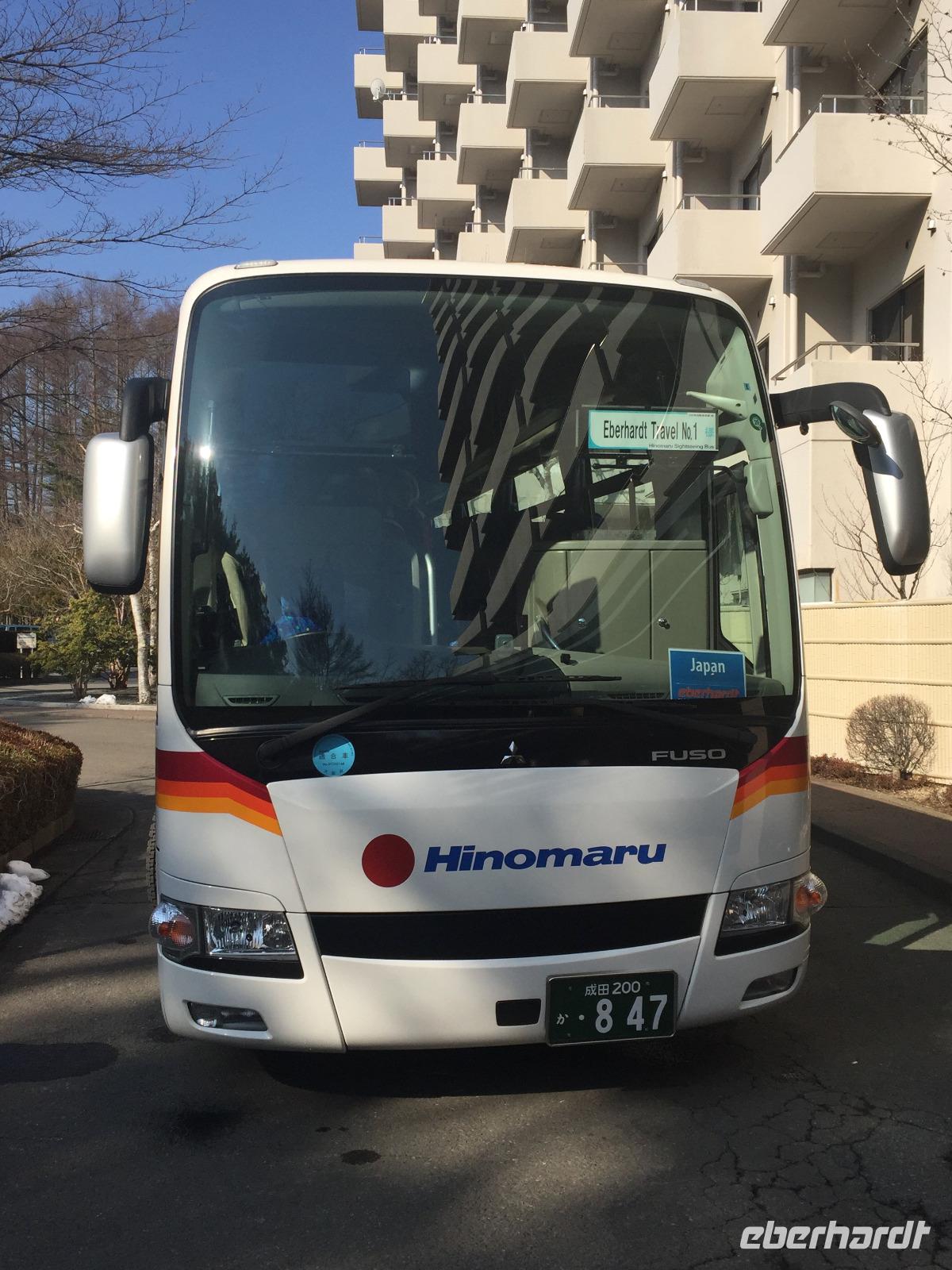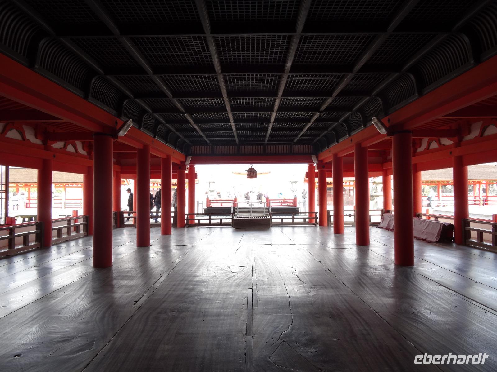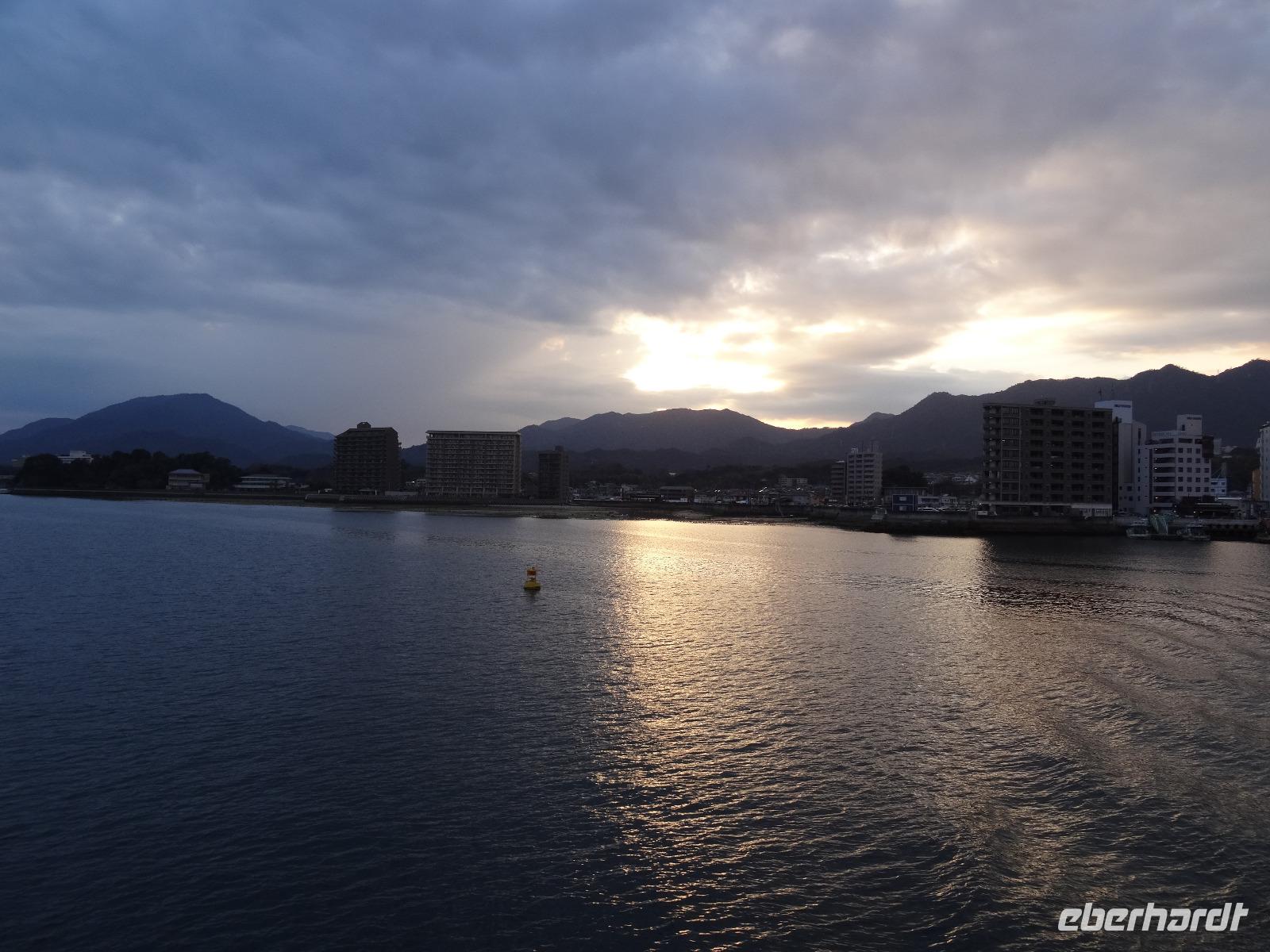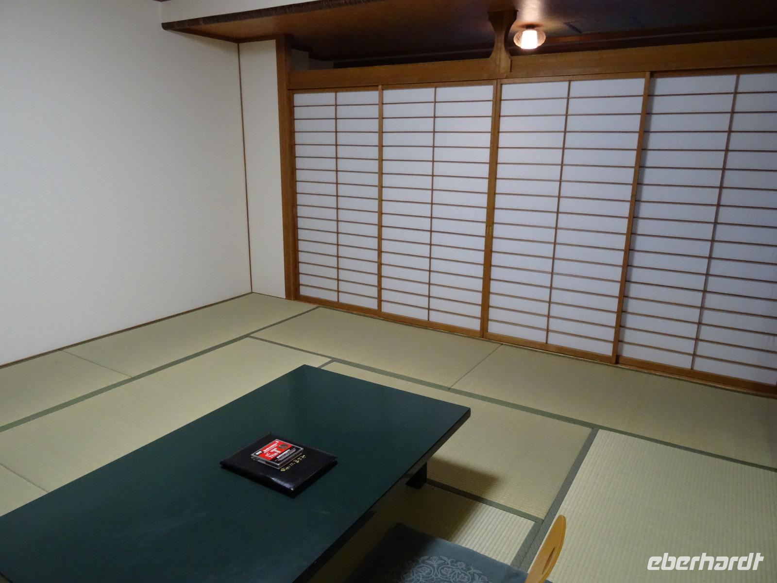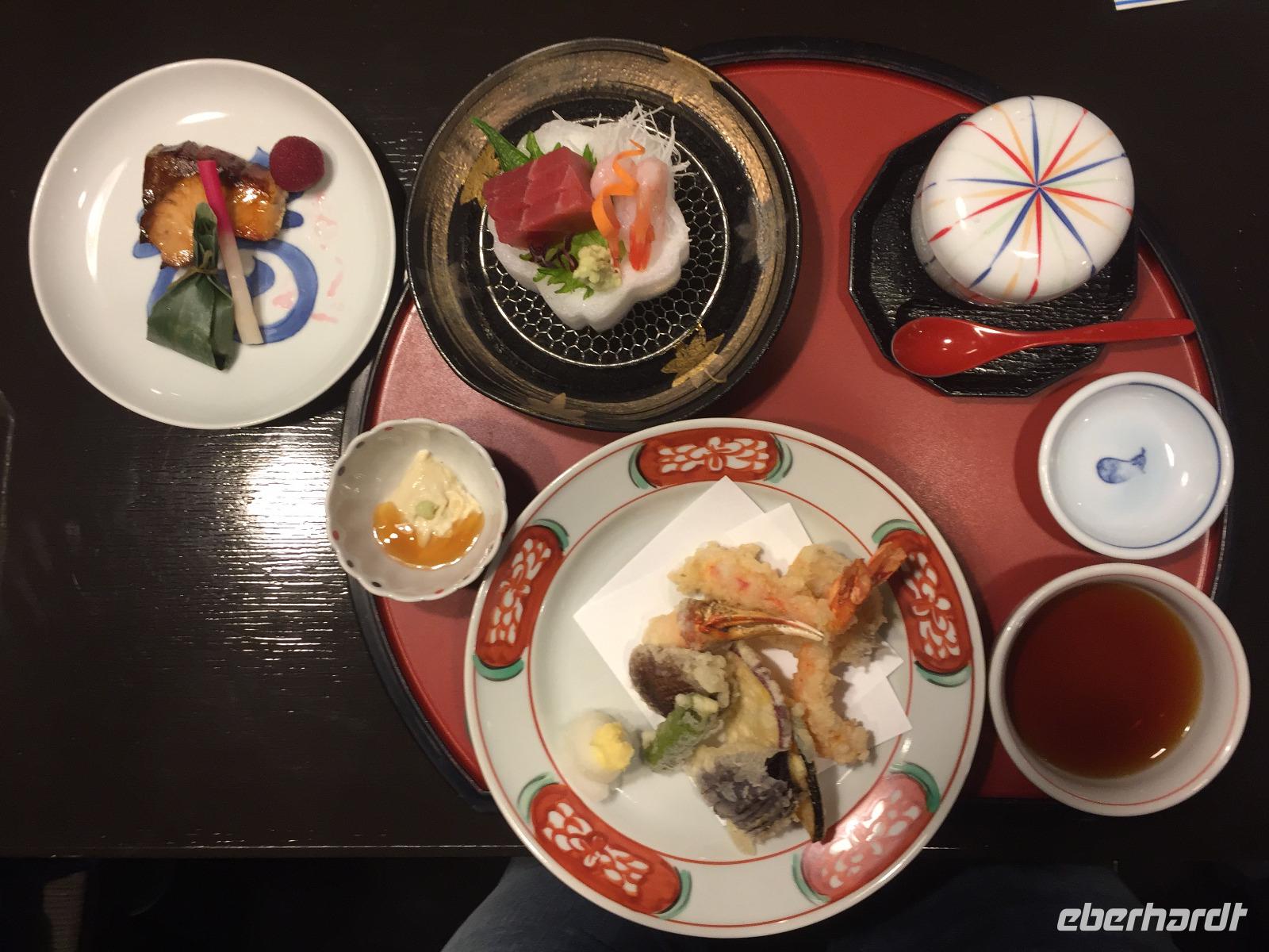 Der heutige Tag war ein Fest für Zugliebhaber, stand er doch ganz im Zeichen der Fortbewegung auf Schienen. Wir verließen am frühen Morgen die bergige Region um Takayama, wo in der Nacht neuer Schnee gefallen war und die umliegenden Hügelketten mit einem weißen Schleier bedeckte. Es war kalt, als wir um acht Uhr den Regionalzug nach Nagoya bestiegen und in knapp zweieinhalbstündiger Fahrt die Ausläufer der Japanischen Alpen hinter uns ließen. In Nagoya hatten wir eine reichliche halbe Stunde Aufenthalt, bevor es für uns weiterging. Wir nutzten die Zeit und bestaunten die ein- und ausfahrenden Hochgeschwindigkeitszüge Shinkansen, von denen wir schon viel gehört hatten und bald selbst in den Genuss des Mitfahrens kamen. Weltweit einzigartig und legendär ist die Pünktlichkeit der Züge des japanischen Eisenbahnsystems. Man konnte beinahe blind darauf vertrauen, dass sowohl Abfahrts- als auch Ankunftszeiten auf die Minute genau eingehalten wurden. Zumindest bei den Shinkansen, die darüber hinaus auf den Punkt genau an der dafür vorgesehenen Stelle am Bahnsteig hielten. Ein wunderbares System, welches die Lust am Bahnfahren wieder zum Vorschein bringt. Zumal die Wagen komfortabel ausgestattet sind und der Sitzabstand eine exzellente Beinfreiheit aufweist. Verbunden mit der enormen Geschwindigkeit und der damit einhergehenden kurzen Reisezeit ist das System fast allen sonstigen Fortbewegungsmitteln überlegen. Wenn die Strecke passt... Wir bestiegen den Shinkansen Hikari nach Himeji und genossen unsere erste Hochgeschwindigkeitsfahrt auf japanischen Boden. Anderthalb Stunden später stiegen wir in Himeji aus und besichtigten die schon vom Bahnhof aus weithin sichtbare „Burg des weißen Reihers", welche zum UNESCO-Weltkulturerbe zählt. Japans größte und schönste Burg wurde im 17. Jahrhundert zu ihrer heutigen Form ausgebaut und erstrahlt nach umfassender Restaurierung seit April 2015 wieder in ihrer ganzen Pracht. Mit uns zog es tausende Besucher zu der weißen Burg mit den geschwungenen Dächern, die ein wenig an einen landenden Silberreiher erinnert und so zu ihrem Namen kam. Am frühen Nachmittag bestiegen wir den Shinkansen nach Hiroshima, wo wir umstiegen und den Regionalzug nach Miyajima nahmen. Mit der Fähre ging es in knapp fünfzehnminütiger Fahrt zur gleichnamigen Insel, die dem Gebiet um Hiroshima vorgelagert ist. Auf der Insel angekommen, liefen wir zu unserer heutigen Unterkunft, dem Makoto Ryokan, einer traditionellen japanischen „Herberge". Nach einem herzlichem Empfang und kurzer Zimmerverteilung trafen wir uns alle in der Lobby, um ein besonderes Gruppenfoto zu schießen. Wir trugen alle den typischen Yukata, die baumwollene, leichtere und preiswertere Version des Kimono, welche einem Bademantel vergleichbar ist und einen angenehmen Tragekomfort bietet. Derartig gewandet nahmen wir auch unser Abendessen zu uns, welches aus einem vielgängigen Kaiseki-Mahl bestand. Ein buntes Potpourri hochwertig zubereiteter Speisen, welche dem europäischen Gaumen einen großen Raum für geschmackliche Entdeckungen bot. Nach dem Abendessen konnte man noch den hauseigenen Onsen besuchen oder einen Spaziergang zum Torii am Itsukushima-Schrein unternehmen, der des Nachts angestrahlt wird und ein wunderschönes Motiv bildet. Zur Nachtruhe betteten wir uns auf einen Futon, der während unseres Abendessens auf den Tatami-Matten ausgelegt wurde. Nicht jedermanns Sache, aber unabdingbar in einem Ryokan. Genauso wie die Toiletten-Pantoffel, die separat zu tragen waren, wenn man die besagte Örtlichkeit aufsuchen musste.