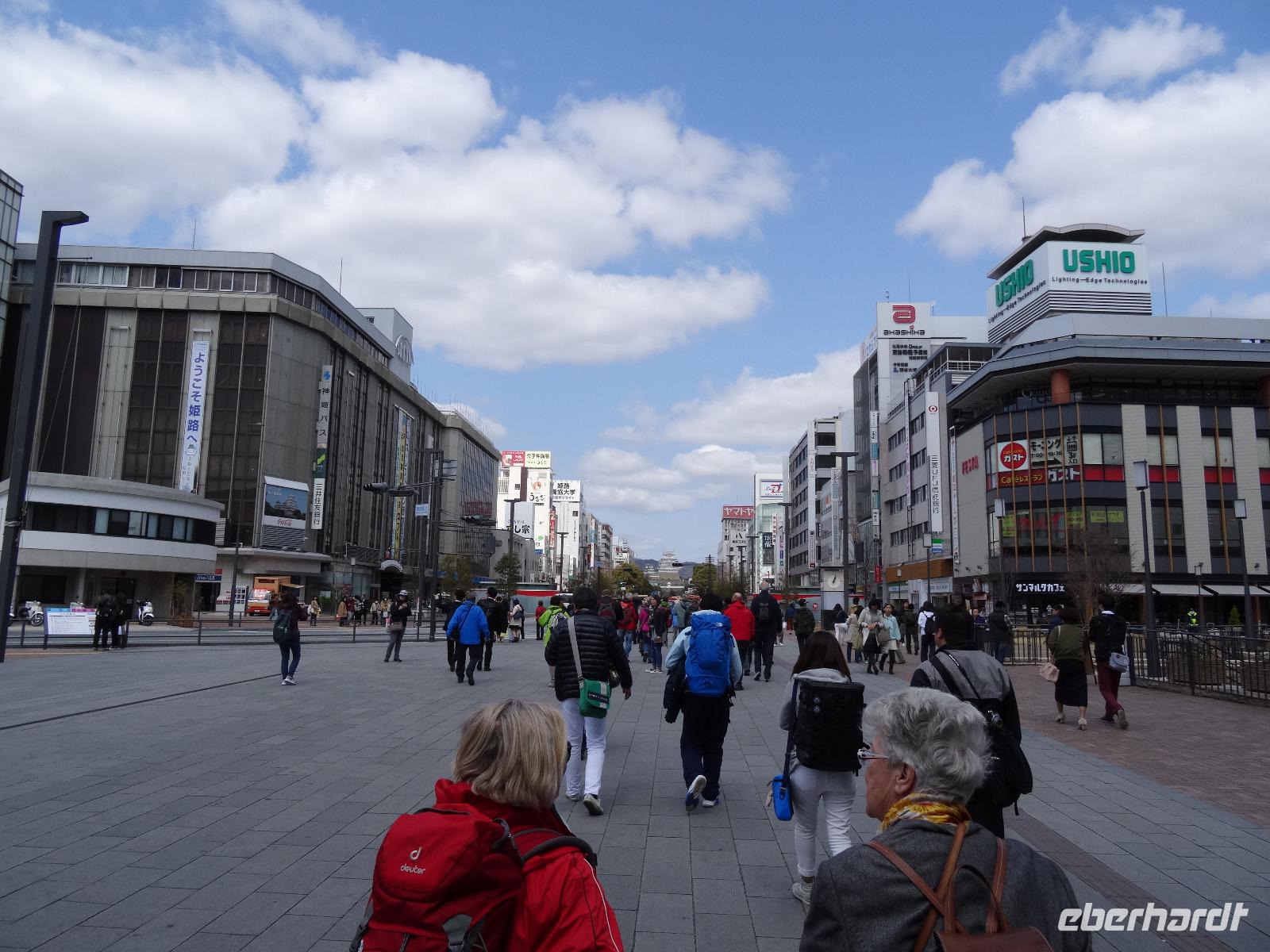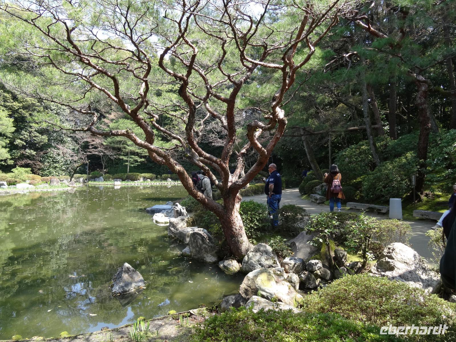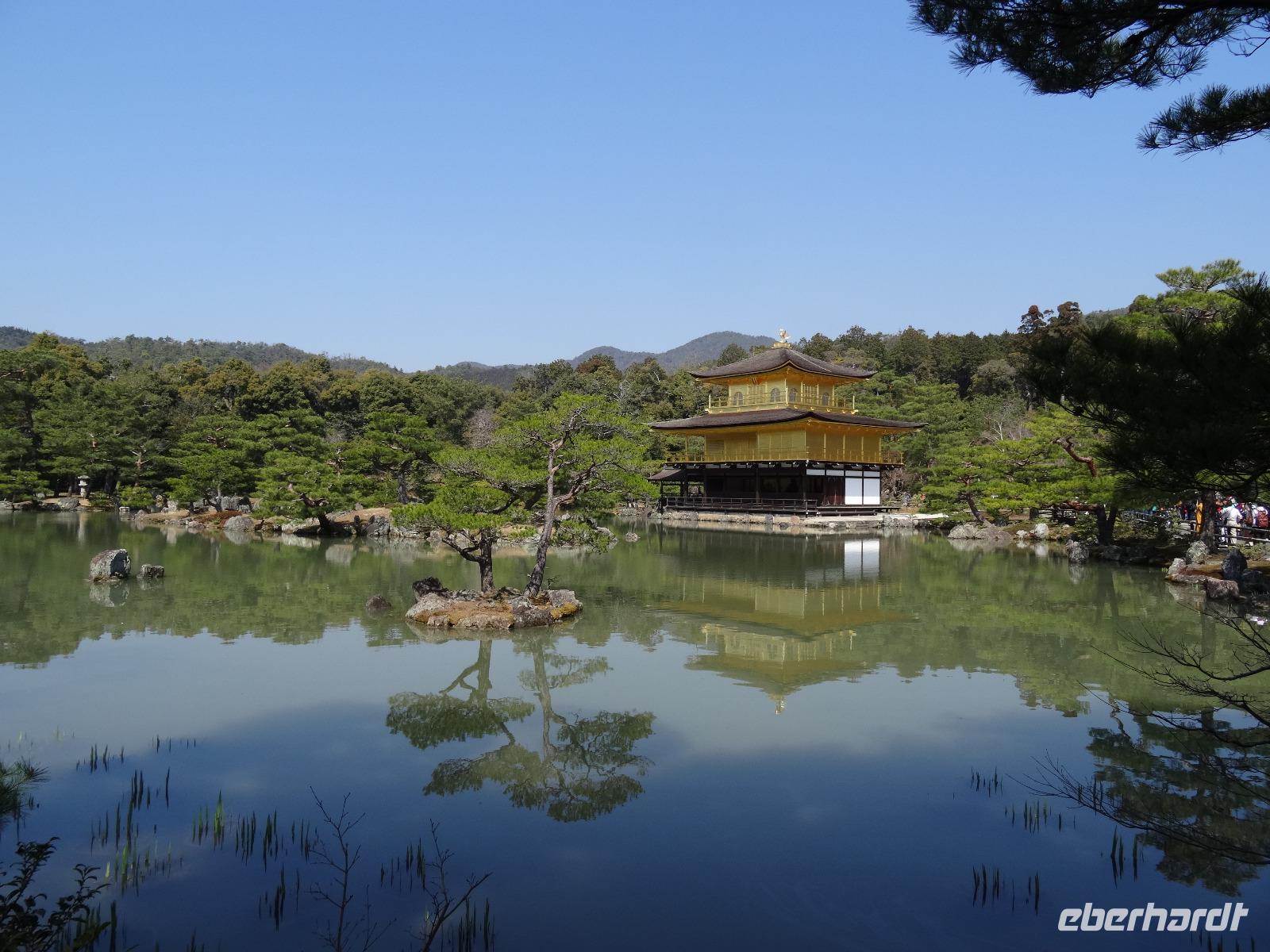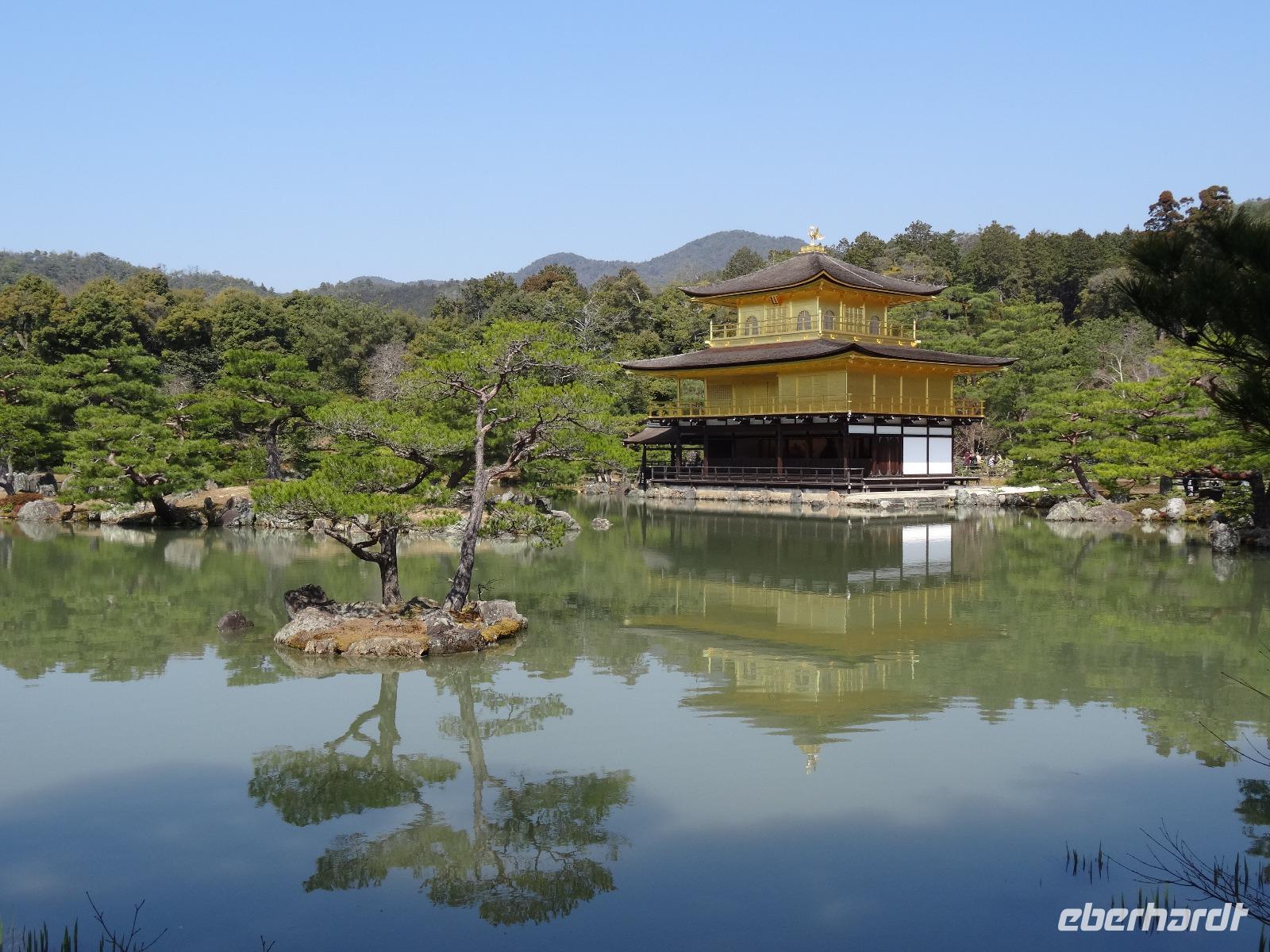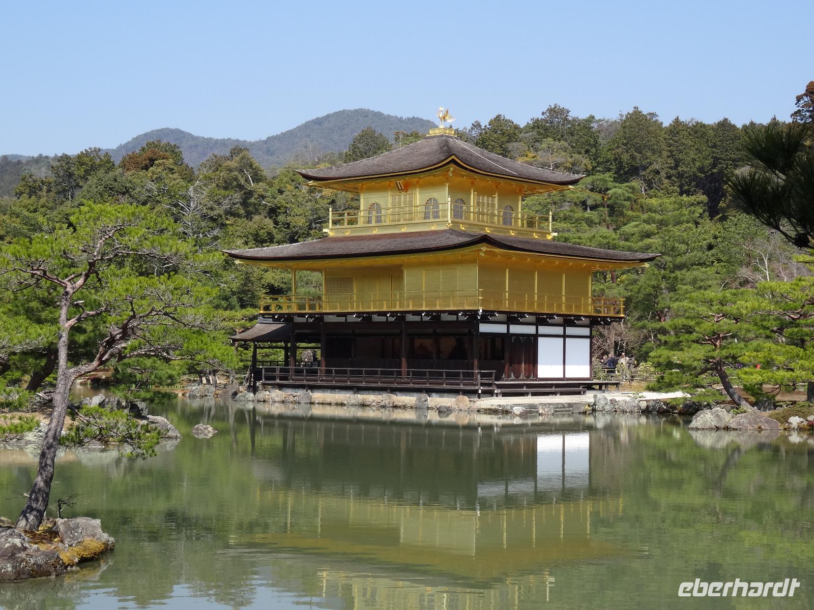Ein sonniger und angenehm warmer Tag erwartete uns nach der erholsamen ersten Nacht in Kyoto. Die ehemalige Kaiserresidenz hat auch heute noch größte geschichtliche Bedeutung und ist mit über 2000 Tempeln, Schreinen und Gartenanlagen das kulturelle Zentrum Japans. Mehr als ein Dutzend Tempel und Schreine wurden von der UNESCO zum Weltkulturerbe ernannt. Einer davon ist der Ryoan-ji Schrein im Nordwesten der Stadt, der mit seinem Zen-Garten unser erstes Tagesziel war. Die 30 mal 10 Meter große Fläche des Zen-Gartens, bestehend aus gerechtem Kies und fünf steinernen, bemoosten Inseln, ist die wohl berühmteste Anlage dieser Art in Japan. Wenn man genug Zeit mitbringt und sich nicht der spirituellen Wirkung entzieht, kann man hier innere Ruhe und Frieden finden. Sofern es nicht die vieltausendfache Besucherschaft geben würde, die ein solches Ansinnen bereits kurz nach Öffnung der Anlage zunichte machte. Beim Ausgang tranken wir noch einen Tee, welcher dem Geschmack und der Konsistenz nach eher an eine Brühe erinnerte, aber gesund und kalorienfrei sein sollte. Wir bestiegen wieder unseren Bus und fuhren ein kurzes Stück zum Kinkaku-ji Tempel, der eigentlich Rokuon-ji Tempel heißt, aufgrund der berühmten, blattgoldenen Reliquienhalle aber unter diesem Namen (Kinkaku - Goldener Pavillon) Geltung erlangte. Eine schier unendliche Zahl an Besuchern schob sich mit uns durch die Anlage, die wir nach einer knappen Stunde wieder verließen. Nächstes Ziel war der Heian-Schrein, 1100 Jahre nach der Gründung Kyotos zu Ehren des ersten und letzten japanischen Kaisers erbaut, die von Kyoto aus herrschten. Durch das zweitgrößte Torii Japans gelangte man zu einer wahrhaft majestätischen Anlage, die eine etwas kleinere Version des ehemaligen Kaiserpalastes darstellt. Wir spazierten durch die angrenzende Teich- und Gartenlandschaft und genossen das landschaftlich schöne Ensemble. Zur Mittagszeit begaben wir uns zu einem Spaziergang auf den Philosophenweg, der seinen Namen dem Philosophen Nishida verdankt, der hier regelmäßig meditierend spazieren ging. Der Weg wird unter anderem von Kirschbäumen gesäumt, die allerdings zu unserer Zeit noch nicht in voller Blüte standen. Vielleicht konnten wir deshalb relativ entspannt die knapp zwei Kilometer bis zum Nanzen-ji Tempel zurücklegen, ohne tausenden Mitläufern auf die Füße und in die Hacken zu treten. Nachteile beinhalten auch manchmal Vorteile... Der Nanzen-ji Tempel beeindruckte uns vor allem wegen seines traditionellen Hojo-Stein-Gartens und dem imposanten San-Mon-Tor, von dessen Plattform man einen guten Blick auf die nähere Umgebung hatte. Von hier aus bewegten wir uns mit Taxen zu unserem letzten Programmpunkt am heutigen Tag. Im Miyagawa-cho Kaburenjo-Theater erlebten wir eine Aufführung der berühmten Kyo Odori, der alljährlich im Frühjahr stattfindenden Kirschblüten-Tänze, vorgetragen von Geikos und Maikos, in Kyoto die Bezeichnung einer Geisha bzw. der Auszubildenden. War das Schauspiel vom Rhythmus, der Darstellung und den farbenprächtigen Kimonos auch eine Augenweide, so war es gleichzeitig für europäische Ohren eine Herausforderung, im scheinbaren Gleichklang der musikalischen Laute Unterschiede zu erkennen. Gleichwohl war es ein tolles Erlebnis, welches wir sicher nicht vergessen werden. Den Abend ließen wir wieder bei einem sehr guten japanischen Essen ausklingen und freuten uns auf die Entdeckungen des morgigen, (vor)letzten Tages unserer Japanreise.