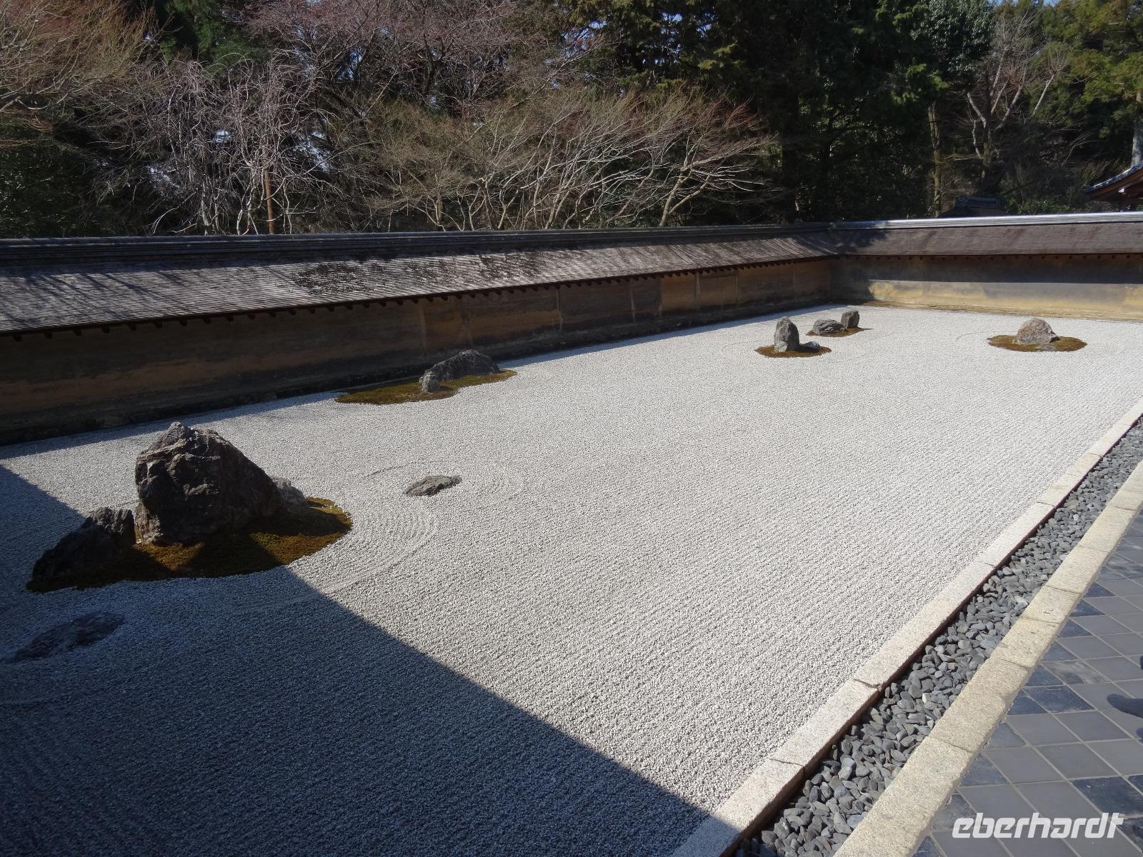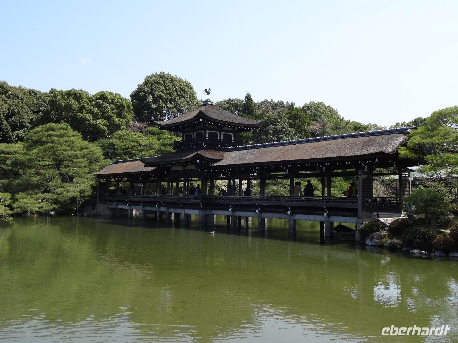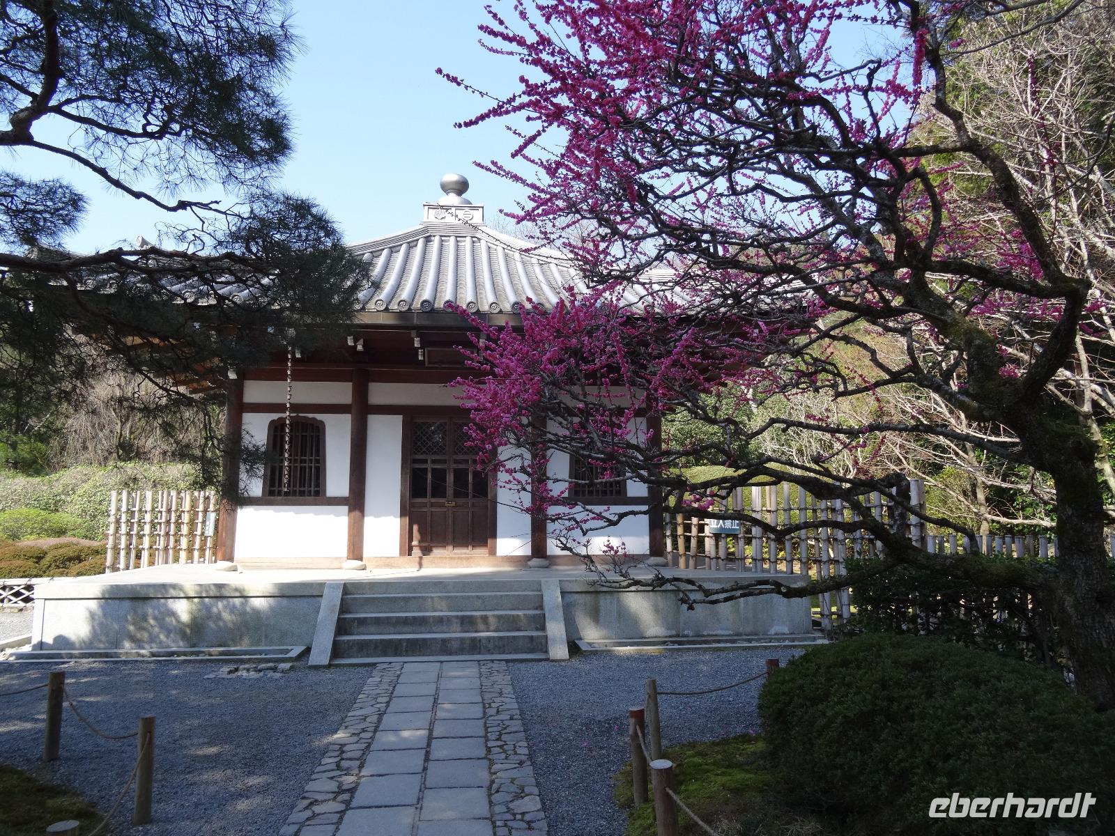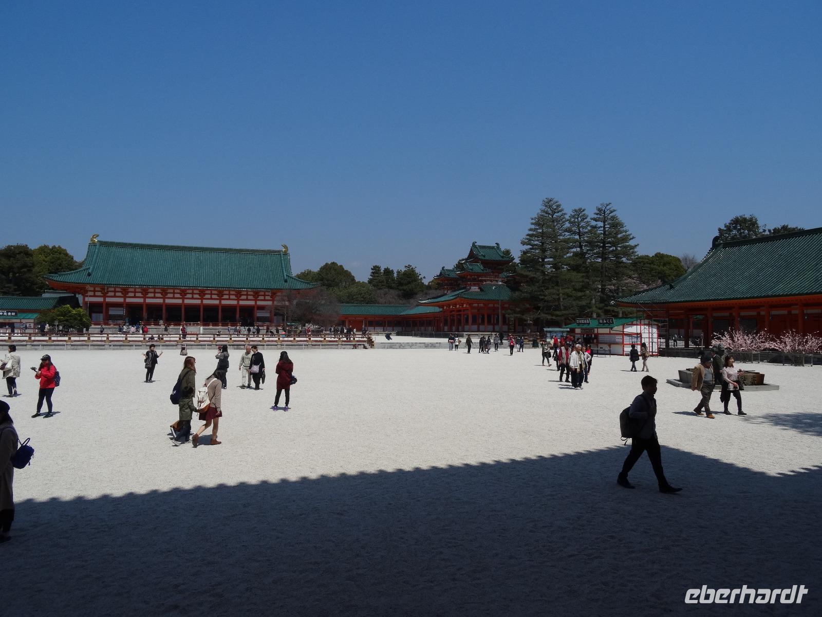 Ein sonniger und angenehm warmer Tag erwartete uns nach der erholsamen ersten Nacht in Kyoto. Die ehemalige Kaiserresidenz hat auch heute noch größte geschichtliche Bedeutung und ist mit über 2000 Tempeln, Schreinen und Gartenanlagen das kulturelle Zentrum Japans. Mehr als ein Dutzend Tempel und Schreine wurden von der UNESCO zum Weltkulturerbe ernannt. Einer davon ist der Ryoan-ji Schrein im Nordwesten der Stadt, der mit seinem Zen-Garten unser erstes Tagesziel war. Die 30 mal 10 Meter große Fläche des Zen-Gartens, bestehend aus gerechtem Kies und fünf steinernen, bemoosten Inseln, ist die wohl berühmteste Anlage dieser Art in Japan. Wenn man genug Zeit mitbringt und sich nicht der spirituellen Wirkung entzieht, kann man hier innere Ruhe und Frieden finden. Sofern es nicht die vieltausendfache Besucherschaft geben würde, die ein solches Ansinnen bereits kurz nach Öffnung der Anlage zunichte machte. Beim Ausgang tranken wir noch einen Tee, welcher dem Geschmack und der Konsistenz nach eher an eine Brühe erinnerte, aber gesund und kalorienfrei sein sollte. Wir bestiegen wieder unseren Bus und fuhren ein kurzes Stück zum Kinkaku-ji Tempel, der eigentlich Rokuon-ji Tempel heißt, aufgrund der berühmten, blattgoldenen Reliquienhalle aber unter diesem Namen (Kinkaku - Goldener Pavillon) Geltung erlangte. Eine schier unendliche Zahl an Besuchern schob sich mit uns durch die Anlage, die wir nach einer knappen Stunde wieder verließen. Nächstes Ziel war der Heian-Schrein, 1100 Jahre nach der Gründung Kyotos zu Ehren des ersten und letzten japanischen Kaisers erbaut, die von Kyoto aus herrschten. Durch das zweitgrößte Torii Japans gelangte man zu einer wahrhaft majestätischen Anlage, die eine etwas kleinere Version des ehemaligen Kaiserpalastes darstellt. Wir spazierten durch die angrenzende Teich- und Gartenlandschaft und genossen das landschaftlich schöne Ensemble. Zur Mittagszeit begaben wir uns zu einem Spaziergang auf den Philosophenweg, der seinen Namen dem Philosophen Nishida verdankt, der hier regelmäßig meditierend spazieren ging. Der Weg wird unter anderem von Kirschbäumen gesäumt, die allerdings zu unserer Zeit noch nicht in voller Blüte standen. Vielleicht konnten wir deshalb relativ entspannt die knapp zwei Kilometer bis zum Nanzen-ji Tempel zurücklegen, ohne tausenden Mitläufern auf die Füße und in die Hacken zu treten. Nachteile beinhalten auch manchmal Vorteile... Der Nanzen-ji Tempel beeindruckte uns vor allem wegen seines traditionellen Hojo-Stein-Gartens und dem imposanten San-Mon-Tor, von dessen Plattform man einen guten Blick auf die nähere Umgebung hatte. Von hier aus bewegten wir uns mit Taxen zu unserem letzten Programmpunkt am heutigen Tag. Im Miyagawa-cho Kaburenjo-Theater erlebten wir eine Aufführung der berühmten Kyo Odori, der alljährlich im Frühjahr stattfindenden Kirschblüten-Tänze, vorgetragen von Geikos und Maikos, in Kyoto die Bezeichnung einer Geisha bzw. der Auszubildenden. War das Schauspiel vom Rhythmus, der Darstellung und den farbenprächtigen Kimonos auch eine Augenweide, so war es gleichzeitig für europäische Ohren eine Herausforderung, im scheinbaren Gleichklang der musikalischen Laute Unterschiede zu erkennen. Gleichwohl war es ein tolles Erlebnis, welches wir sicher nicht vergessen werden. Den Abend ließen wir wieder bei einem sehr guten japanischen Essen ausklingen und freuten uns auf die Entdeckungen des morgigen, (vor)letzten Tages unserer Japanreise.