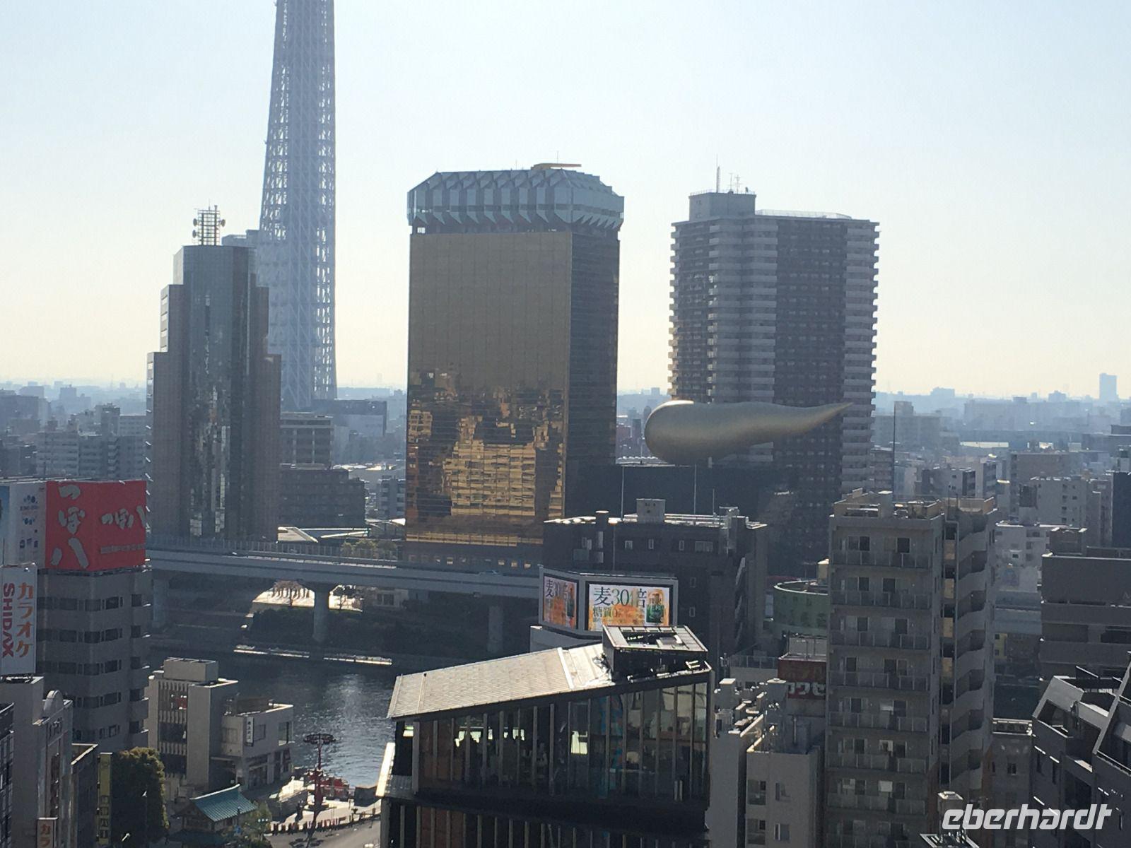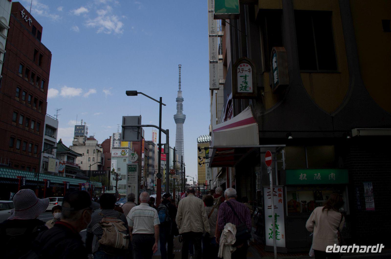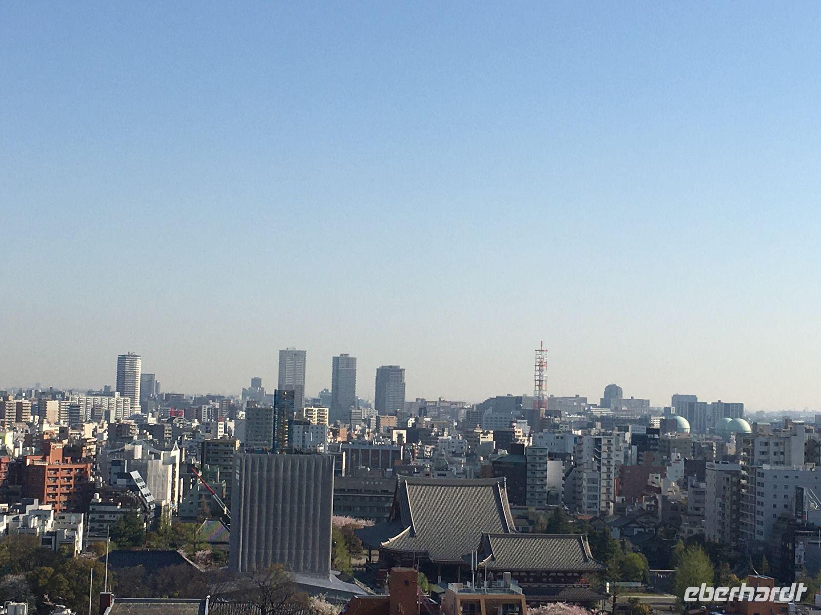 Pünktlich landen wir gegen 12.15 Uhr und mit sieben Stunden Zeitverschiebung zu Deutschland am internationalen Flughafen "Tokyo-Haneda". Die (Über-)Pünktlichkeit in Japan dürfen wir während unserer kompletten Reise genießen. Zurück in Deutschland werden wir dies womöglich am meisten vermissen, spätestens beim Rückflug von Frankfurt/Main nach Dresden, dazu aber später mehr! Die Passkontrolle und Kofferannahme verlaufen ohne Schwierigkeiten, obwohl wir alle Fingerabdrücke nehmen lassen müssen. In der Eingangshalle des Flughafens begrüßt uns gegen 12.30 Uhr freundlich unsere örtliche Reiseleiterin Chisako Steiger. Einige Gäste tauschen am Flughafen ihre Euros in japanische YEN um, auch wenn der Kurs mit 1 EUR zu etwa 116 YEN dieses Mal wohl ein wenig schlechter als in Deutschland sein soll. Es ist rund 20 Grad warm, sonnig und wir werden mit einem "Herzlich willkommen!" empfangen, auf Japanisch "Youkoso Irasshai Mashita"! Der internationale Flughafen liegt außerhalb von Tokyo in Haneda. Zunächst werden wir gebeten, uns anzuschnallen, da dies in Japan Pflicht ist. Auf unserer Fahrt von circa 60 Minuten und rund 25 Kilometern zum 4-Sterne-Hotel "The Gate Hotel" in Kaminarimon direkt im Zentrum von Tokyo und in der Nähe vom Tokyo Skytree erhalten wir einen interessanten ersten Eindruck dieser Millionenstadt und erfahren von Chisako spannende Informationen zu Land und Leuten. Der Linksverkehr wird für uns zunächst fremd sein, aber wir gewöhnen uns sicher schnell daran. Dies haben sich die Japaner von den Engländern abgeschaut und beibehalten. Wir fahren unter der Einschienenbahnstrecke Tokyo Monorai hindurch, welche die Innenstadt Tokyos mit dem Flughafen verbindet. Sie wurde 1964 zur ersten Olympiade errichtet. Die Olympischen Sommerspiele 2020 werden wieder in Tokyo stattfinden, so dass sich die Stadt bereits in ersten Umbaumaßnahmen befindet. Chisako sagt uns, dass das Jahr 1868 ein wichtiges Jahr für Japan war, da sich Japan in diesem Jahr nach Jahrhunderten der Isolation modernisiert und von westlichen Staaten wie USA, England, Frankreich und Deutschland "inspiriert" hat. Japan besitzt eine der längsten regierenden Dynastien der Welt. Chisako berichtet uns, dass dieses Land immer noch von derselben Kaiserfamilie wie vor rund 1.300 Jahren regiert wird. Dann erreichen wir auch schon das. Der Check-In verläuft reibungslos. Bevor wir unsere Zimmer beziehen, unterschreiben wir noch unseren persönlichen "Japan Rail Pass". Durch Japan werden wir unter anderem mit dem Zug reisen, wofür wir den sogenannten "Japan Rail Pass" verwenden werden. Um diesen Fahrausweis zu beantragen, ist dieser zu unterschreiben und zusammen mit dem Reisepass vorzulegen. Den Pass können wir am nächsten Tag an der Rezeption wieder abholen. Anschließend beziehen wir unsere Zimmer, die kleinen Plastikflaschen Wasser sind kostenfrei. Unser Hotel liegt im Stadtteil Asakusa, welches als Vergnügungsviertel für seine Shows und Theater berühmt ist. Nach einer kurzen Auffrischung im Hotelzimmer trifft sich die Gruppe um 15.00 Uhr in der Lobby bei der Rezeption in der 13.Etage des Hotels mit tollem Ausblick auf den Skytree im Stadtteil Oshiage, um gemeinsam auf die Reise mit alkoholhaltiger Schokolade "anzustoßen". Zudem lernen wir unsere erste japanische Redewendung, die Begrüßungsformel "Kon-nichi-wa!", was mit "Guten Tag!" übersetzt wird. Dann laufen wir rund 300 Meter zur Station Asakusa. Um 15.42 Uhr fahren wir drei Minuten mit der Metro Tobu Skytree Line von Asakusa Station nach Tokyo Skytree Station. Der anschließende Fußweg zum 2012 eröffneten Fernsehturm Tokyo Skytree des Architekten Nikken Sekkei beträgt rund 240 Meter. Die in der traditionellen japanischen Farbe "Aijiro" gehaltene Konstruktion besitzt einen äußeren Stahlrahmen. Der sich im Inneren befindende zylinderförmige Schaft aus Stahlbeton soll zugleich der Schwingungsminderung bei Erdbeben und der Stabilisierung der Hauptstruktur dienen. Nach einer kurzen Wartezeit von rund 15 Minuten fahren wir hinauf zum mit 634 Metern höchsten freistehenden Funk- und Fernsehturm der Welt und auch zum zweithöchsten Gebäude der Welt nach dem Burj Khalifa in Dubai. Die Auffahrt zur ersten Plattform in einer Höhe von 350 Metern dauert in Japans schnellsten "Tembo Shuttle" für bis zu 40 Personen nur 50 Sekunden. Der Fahrstuhl kann eine Höchstgeschwindigkeit von bis zu 600 Meter pro Minute erreichen. An der Decke werden unterschiedliche Motive je nach Jahreszeit dargestellt. Hier können wir neben einer großartigen Aussicht auf Tokyo auch das Wandschirm-Gemälde "EDO HITOMEZU BYOBU" bestaunen, das Tokyo Raum-Zeit-Navigationssystem via Touchscreen anwenden oder vom hitzebeständigen, gehärteten Glasboden nach unten schauen. Wir sehen unter anderem den Fluss Sumida, den Tokyo Tower, den Tempel Senso-ji, unterschiedliche Brücken wie beispielsweise Kototoi, Sakura und Umaya sowie viele weitere Sehenswürdigkeiten. Zudem besteht die Möglichkeit zur Tembo-Galerie in einer Höhe von 445 bis 450 Metern und zum mit 451,2 Meter höchsten Punkt, den Sorakara Point, zu fahren. Der Aufschlag beträgt rund 1.000 YEN pro Person. Gegen 17.15 Uhr laufen wir wieder zur Metrostation Tokyo Skytree, fahren mit der Tobu Skytree Line nach Asakusa Station und spazieren zusammen zum Hotel zurück. Um 18.50 Uhr treffen wir uns abermals in der Hotellobby, um gemeinsam zum rund 10 Gehminuten entfernten landestypischen Restaurant zu laufen. Bereits in diesem Restaurant empfiehlt sich die Mitnahme von "Tempelsocken", welche wir am besten jederzeit mit uns führen. Wir werden zu einem privaten Zimmer geführt, dann heißt es auch schon das erste Mal für uns "Bitte Schuhe ausziehen!". Chisako erklärt uns, dass es unhöflich ist, einerseits einen Fuß auf Stein und andererseits einen Schuh auf Holz zu setzen. Die ersten Versuche sind ein wenig holprig, aber es liegen ja noch elf spannende Tage zum Üben vor uns! Dann wartet auch schon die nächste Überrasch