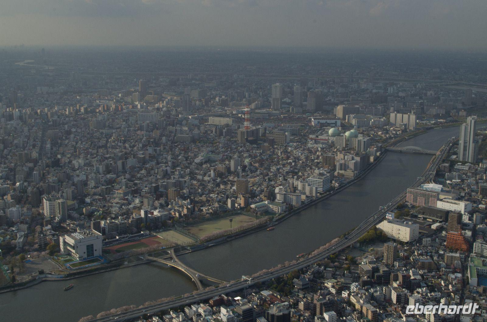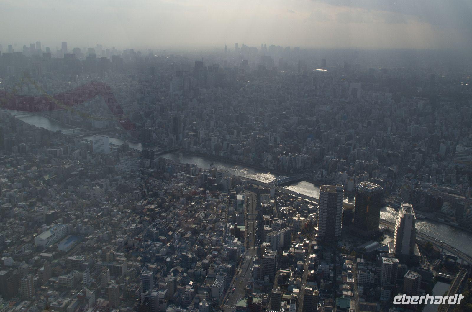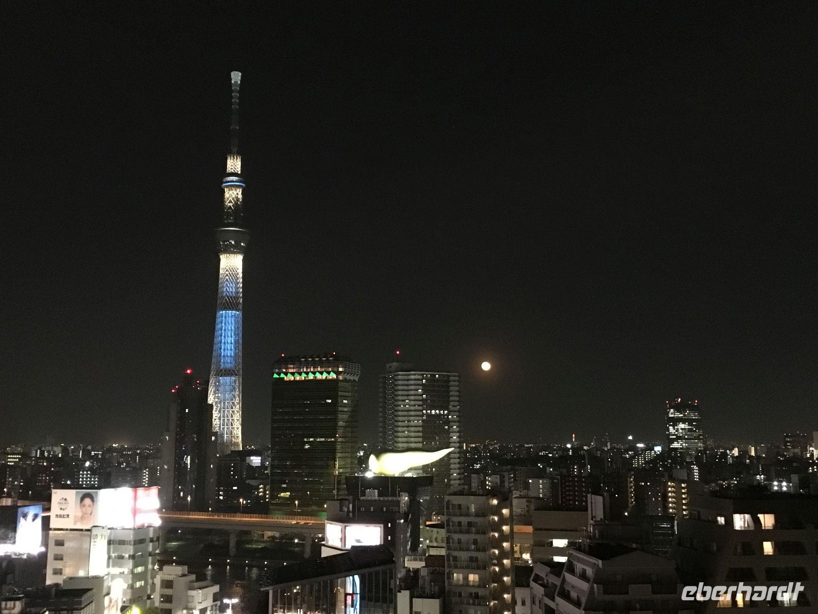 Pünktlich landen wir gegen 12.15 Uhr und mit sieben Stunden Zeitverschiebung zu Deutschland am internationalen Flughafen "Tokyo-Haneda". Die (Über-)Pünktlichkeit in Japan dürfen wir während unserer kompletten Reise genießen. Zurück in Deutschland werden wir dies womöglich am meisten vermissen, spätestens beim Rückflug von Frankfurt/Main nach Dresden, dazu aber später mehr! Die Passkontrolle und Kofferannahme verlaufen ohne Schwierigkeiten, obwohl wir alle Fingerabdrücke nehmen lassen müssen. In der Eingangshalle des Flughafens begrüßt uns gegen 12.30 Uhr freundlich unsere örtliche Reiseleiterin Chisako Steiger. Einige Gäste tauschen am Flughafen ihre Euros in japanische YEN um, auch wenn der Kurs mit 1 EUR zu etwa 116 YEN dieses Mal wohl ein wenig schlechter als in Deutschland sein soll. Es ist rund 20 Grad warm, sonnig und wir werden mit einem "Herzlich willkommen!" empfangen, auf Japanisch "Youkoso Irasshai Mashita"! Der internationale Flughafen liegt außerhalb von Tokyo in Haneda. Zunächst werden wir gebeten, uns anzuschnallen, da dies in Japan Pflicht ist. Auf unserer Fahrt von circa 60 Minuten und rund 25 Kilometern zum 4-Sterne-Hotel "The Gate Hotel" in Kaminarimon direkt im Zentrum von Tokyo und in der Nähe vom Tokyo Skytree erhalten wir einen interessanten ersten Eindruck dieser Millionenstadt und erfahren von Chisako spannende Informationen zu Land und Leuten. Der Linksverkehr wird für uns zunächst fremd sein, aber wir gewöhnen uns sicher schnell daran. Dies haben sich die Japaner von den Engländern abgeschaut und beibehalten. Wir fahren unter der Einschienenbahnstrecke Tokyo Monorai hindurch, welche die Innenstadt Tokyos mit dem Flughafen verbindet. Sie wurde 1964 zur ersten Olympiade errichtet. Die Olympischen Sommerspiele 2020 werden wieder in Tokyo stattfinden, so dass sich die Stadt bereits in ersten Umbaumaßnahmen befindet. Chisako sagt uns, dass das Jahr 1868 ein wichtiges Jahr für Japan war, da sich Japan in diesem Jahr nach Jahrhunderten der Isolation modernisiert und von westlichen Staaten wie USA, England, Frankreich und Deutschland "inspiriert" hat. Japan besitzt eine der längsten regierenden Dynastien der Welt. Chisako berichtet uns, dass dieses Land immer noch von derselben Kaiserfamilie wie vor rund 1.300 Jahren regiert wird. Dann erreichen wir auch schon das. Der Check-In verläuft reibungslos. Bevor wir unsere Zimmer beziehen, unterschreiben wir noch unseren persönlichen "Japan Rail Pass". Durch Japan werden wir unter anderem mit dem Zug reisen, wofür wir den sogenannten "Japan Rail Pass" verwenden werden. Um diesen Fahrausweis zu beantragen, ist dieser zu unterschreiben und zusammen mit dem Reisepass vorzulegen. Den Pass können wir am nächsten Tag an der Rezeption wieder abholen. Anschließend beziehen wir unsere Zimmer, die kleinen Plastikflaschen Wasser sind kostenfrei. Unser Hotel liegt im Stadtteil Asakusa, welches als Vergnügungsviertel für seine Shows und Theater berühmt ist. Nach einer kurzen Auffrischung im Hotelzimmer trifft sich die Gruppe um 15.00 Uhr in der Lobby bei der Rezeption in der 13.Etage des Hotels mit tollem Ausblick auf den Skytree im Stadtteil Oshiage, um gemeinsam auf die Reise mit alkoholhaltiger Schokolade "anzustoßen". Zudem lernen wir unsere erste japanische Redewendung, die Begrüßungsformel "Kon-nichi-wa!", was mit "Guten Tag!" übersetzt wird. Dann laufen wir rund 300 Meter zur Station Asakusa. Um 15.42 Uhr fahren wir drei Minuten mit der Metro Tobu Skytree Line von Asakusa Station nach Tokyo Skytree Station. Der anschließende Fußweg zum 2012 eröffneten Fernsehturm Tokyo Skytree des Architekten Nikken Sekkei beträgt rund 240 Meter. Die in der traditionellen japanischen Farbe "Aijiro" gehaltene Konstruktion besitzt einen äußeren Stahlrahmen. Der sich im Inneren befindende zylinderförmige Schaft aus Stahlbeton soll zugleich der Schwingungsminderung bei Erdbeben und der Stabilisierung der Hauptstruktur dienen. Nach einer kurzen Wartezeit von rund 15 Minuten fahren wir hinauf zum mit 634 Metern höchsten freistehenden Funk- und Fernsehturm der Welt und auch zum zweithöchsten Gebäude der Welt nach dem Burj Khalifa in Dubai. Die Auffahrt zur ersten Plattform in einer Höhe von 350 Metern dauert in Japans schnellsten "Tembo Shuttle" für bis zu 40 Personen nur 50 Sekunden. Der Fahrstuhl kann eine Höchstgeschwindigkeit von bis zu 600 Meter pro Minute erreichen. An der Decke werden unterschiedliche Motive je nach Jahreszeit dargestellt. Hier können wir neben einer großartigen Aussicht auf Tokyo auch das Wandschirm-Gemälde "EDO HITOMEZU BYOBU" bestaunen, das Tokyo Raum-Zeit-Navigationssystem via Touchscreen anwenden oder vom hitzebeständigen, gehärteten Glasboden nach unten schauen. Wir sehen unter anderem den Fluss Sumida, den Tokyo Tower, den Tempel Senso-ji, unterschiedliche Brücken wie beispielsweise Kototoi, Sakura und Umaya sowie viele weitere Sehenswürdigkeiten. Zudem besteht die Möglichkeit zur Tembo-Galerie in einer Höhe von 445 bis 450 Metern und zum mit 451,2 Meter höchsten Punkt, den Sorakara Point, zu fahren. Der Aufschlag beträgt rund 1.000 YEN pro Person. Gegen 17.15 Uhr laufen wir wieder zur Metrostation Tokyo Skytree, fahren mit der Tobu Skytree Line nach Asakusa Station und spazieren zusammen zum Hotel zurück. Um 18.50 Uhr treffen wir uns abermals in der Hotellobby, um gemeinsam zum rund 10 Gehminuten entfernten landestypischen Restaurant zu laufen. Bereits in diesem Restaurant empfiehlt sich die Mitnahme von "Tempelsocken", welche wir am besten jederzeit mit uns führen. Wir werden zu einem privaten Zimmer geführt, dann heißt es auch schon das erste Mal für uns "Bitte Schuhe ausziehen!". Chisako erklärt uns, dass es unhöflich ist, einerseits einen Fuß auf Stein und andererseits einen Schuh auf Holz zu setzen. Die ersten Versuche sind ein wenig holprig, aber es liegen ja noch elf spannende Tage zum Üben vor uns! Dann wartet auch schon die nächste Überrasch
