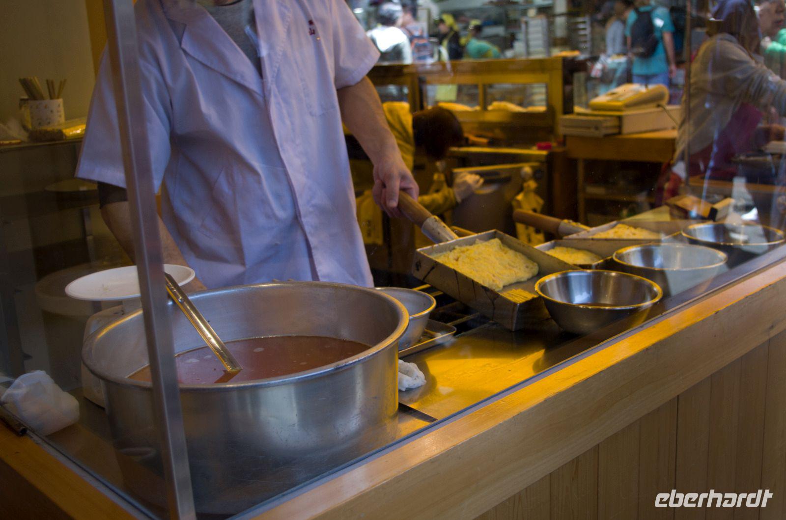 An unserem ersten Morgen in Japan werden wir mit warmen Sonnenstrahlen begrüßt. Das Frühstücksbuffet mit japanischen und europäischen Elementen ab 06.30 Uhr nehmen die Gäste individuell ein. Wir geben unsere Frühstückscoupons ab und werden zum Tisch begleitet. Wir erhalten eine Frühstücks-Menükarte, wo wir unter anderem verschiedene Eivariationen oder French Toast bestellen können. Das Frühstück findet im R-Restaurant & Bar in der 13. Etage neben der Rezeption statt, bei leckerem Essen genießen wir den fantastischen Ausblick bei traumhaftem Wetter! Um 08.00 Uhr treffen wir uns mit unserer Reiseleiterin und beginnen die Stadtrundfahrt durch Tokyo. Bis 13.00 Uhr steht uns der Reisebus zur Verfügung, am Nachmittag werden wir mit den öffentlichen Verkehrsmitteln unterwegs sein. Auf unserer Fahrt erfahren wir von Chisako, dass mit bis zu 84 Prozent der Shintoismus, kurz Shinto, und mit über 70 Prozent der Buddhismus die beiden bedeutendsten Religionen Japans sind. Sie koexistieren friedlich nebeneinander, mittlerweile sind sie aber auch nicht immer leicht zu unterscheiden. Japaner entscheiden sich meistens nicht für eine der beiden Religionen, je nach Lebenssituation glauben sie mehr an die eine statt an die andere Religion. Während unserer Reise werden wir eine Vielzahl an Torii-Toren sehen. Sie sind in traditioneller roter Farbe gestrichen und stellen die Trennung der heiligen Schreine zur irdischen Welt dar. Der erste Tagesprogrammpunkt führt uns um 09.00 Uhr zum 1920 errichteten Meiji-Schrein, einem schintoistisches Heiligtum und Gedenkstätte für Kaiser Meiji. Bevor wir den Schrein besichtigen, erlernen wir von Chisako das traditionelle Reinigungsritual und probieren es zugleich selbst aus. Anschließend fahren wir weiter zum bekannten Tsukiji-Fischmarkt in Tokyo. Wir erfahren durch Chisako, dass in den Fischerhallen keine Führung erlaubt ist und wir besonders aufpassen sollen, da die Verkäufer mit ihren kleinen Autos und Mopeds oftmals rasant durch die Hallen fahren. Dies spüren wir auch am eigenen Leib, hier heißt es wirklich "Augen auf!", wobei es besser ist, immer vor und hinter uns zu schauen. Beim Spaziergang mit Chisako über den Fischmarkt zeigt sie uns neben unterschiedlichen Fischarten auch diverse Nusssorten und typisch japanische Köstlichkeiten. Die meisten Gäste sind wagemutig und probieren diese ihnen unbekannten Speisen. Dann fahren wir weiter nach Asakusa zum ältesten buddhistischen Tempel Tokyos, dem Senso-ji in Asakusa. Hier verlassen wir den Bus und setzen den restlichen Tag zu Fuß und mit öffentlichen Verkehrsmitteln fort. Um 12.30 Uhr besichtigen wir diesen heiligen Tempel und lassen uns gemeinsam unter einem blühenden Kirschbaum fotografieren. Eine Stunde später spazieren wir individuell zum Hotel zurück, welches idealerweise nur 15 Gehminuten vom Tempel entfernt ist. Wir laufen die bekannte rund 260 Meter lange Nakamise-Straße entlang, deren kleine Souvenirläden durchaus zum Einkaufen einladen, auch wenn sich hier eine große Menschenmenge angesammelt hat. Wie schon so oft sehen wir hier Souvenirs in Form einer winkenden Katze, welche eine bestimmte Bedeutung hat. Die japanische Winkekatze "Maneki-neko" ist eine Geld herbeiwinkende Katze und somit ein Symbol für Reichtum. Einige Gäste nutzen die Zeit zum Kauf erster Souvenirs oder für einen Spaziergang im zum Tempel dazugehörigen Garten. Um 16.00 Uhr findet der zweite Teil unseres heutigen Programms statt. Wir treffen uns abermals in der Hotellobby, laufen zur uns bereits bekannten Station Asakusa und fahren um 16.14 Uhr rund 17 Minuten mit der Metro Ginza Line zur Ginza Station, wo wir nach einer kurzen Erklärung durch Chisako die Feinkostabteilung im Warenhaus "Mitsukoshi" und "Matsuya" bestaunen. Anschließend bummeln wir individuell auf der berühmten "Einkaufsstraße" in Ginza entlang. Bereits beim Rundgang am Morgen und auch jetzt fallen uns zwei Tatsachen auf. Einerseits sehen wir viele Japaner, welche einen Mundschutz tragen. Es besteht oftmals die Annahme, dass sie sich mit dem Mundschutz aus Angst vor einer ansteckenden Krankheit schützen. Dieser Eindruck täuscht allerdings und Grund ist vielmehr umgekehrt. Der Mundschutz soll im Sommer eher ein Schutz bei Allergien sein und zudem als höfliche Geste gesehen werden. Die Japaner tragen ihn, um Mitmenschen gerade eben nicht mit einem grippalen Infekt anzustecken. Andererseits bemerken wir auch die fehlenden Papierkörbe. Bei der außerordentlichen Sauberkeit dieser Großstadt ist diese Tatsache umso auffälliger. Auf die Frage nach den fehlenden Mülleimern und den dennoch so sauberen Städten antwortet uns Chisako, dass die Japaner ihren Müll mit nach Hause nehmen und dann eigenständig wegwerfen, so dass kein Müll auf der Straße landet. Als Schutzmaßnahme gibt es kaum bis gar keine Mülleimer in Japan, da diese in der Vergangenheit wohl als Versteck für Bomben verwendet wurden. Um 18.00 Uhr spazieren wir zusammen rund 20 bis 30 Minuten zum Restaurant. Dort sitzen wir wie am Tag zuvor an in den Boden eingebauten Tischen und die Schuhe sind selbstverständlich vorher auszuziehen. Heute erhalten wir einen weiteren Einblick in die kulinarische Küche Japans, in dem wir japanisches Sushi verköstigen. Traditionell besteht Sushi erkalteten gesäuerten Reis und weiteren Komponenten wie beispielsweise roher oder geräucherter Fisch, Gemüse, Ei oder Meeresfrüchte. Es werden mundgerechte Portionen zubereitet und oftmals mit einem kleinen Nori-Band versehen. Nori ist getrockneter und gerösteter Seetang. Es sei zu erwähnen, dass "echtes" japanisches Sushi wenig mit dem Sushi zu tun hat, welches uns vielmals in Sushi-Restaurants in Deutschland angeboten wird. Für diejenigen Gäste, welche keinen (rohen) Fisch essen möchte, bestellt Chisako eine vegetarische Variante. Sushi ist nicht unbedingt jedermanns Geschmack, aber wir alle haben diese japanische Köstlichkeit probiert. Zum Sushi wird Soja-Sauce und japanischer